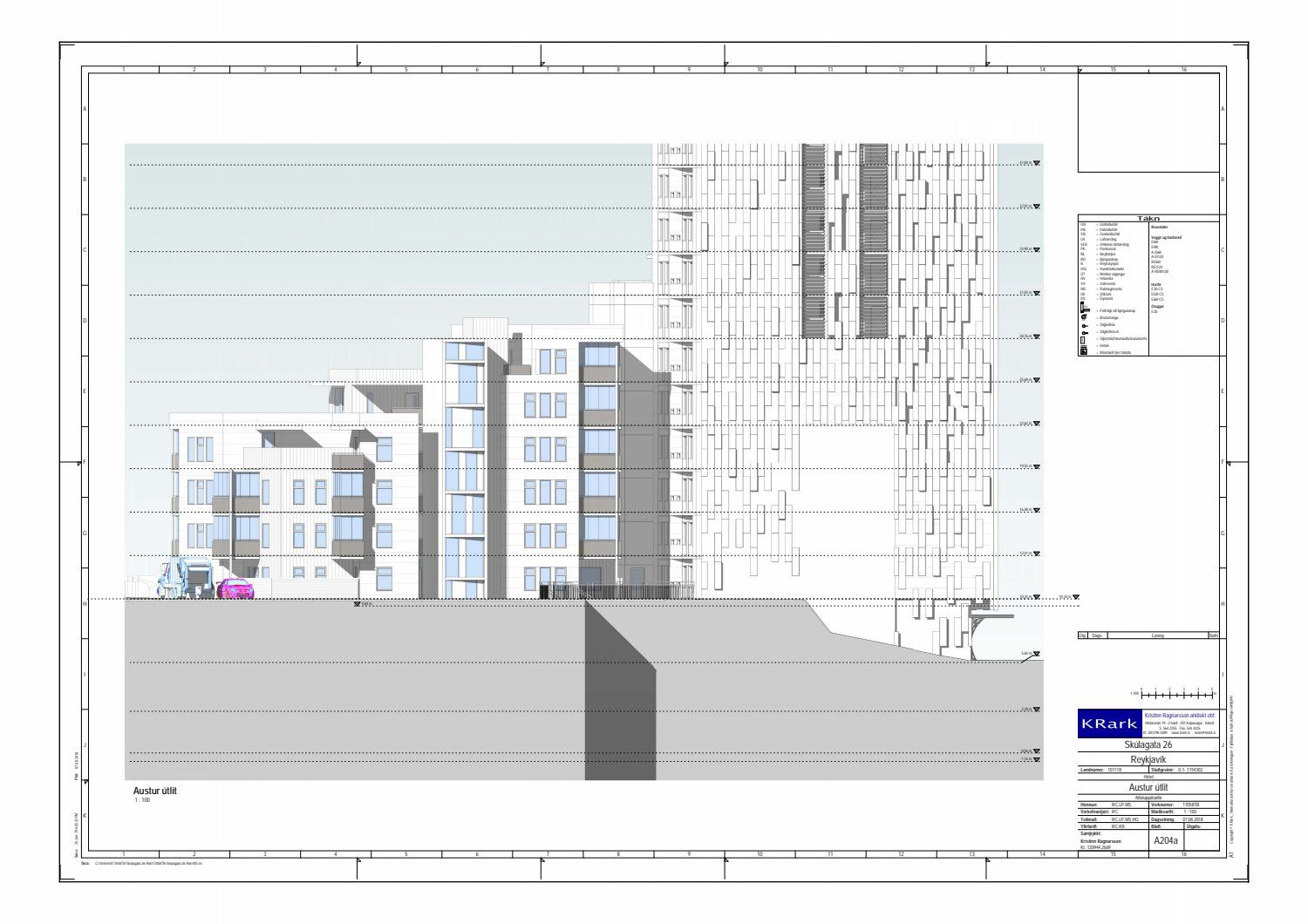 Skipulags- og samgönguráð bókar:“Skipulags- og samgönguráð leggur mikla áherslu á vandaða hönnun og metnað við byggingu við Skúlagötu 26, líkt fram kemur í gildandi deiliskipulagi. Gönguleið um lóðina þarf að vera skýr og vel hönnuð. Jarðhæðir þurfa að tryggja gott mannlíf og gerð er krafa um vandaða lóðarhönnun. Bygging þess mun verða hluti af sjónlínu borgarinnar til framtíðar og því er gerð krafa um vandað kennileiti með byggingarlist í hæsta gæðaflokki. Þétting byggðar á að leiða til meiri gæða í borgarumhverfinu. Huga þarf að heildarmynd verksins þar sem bygging, umhverfi og frágangur mynda heildstætt verk. Teikningum er vísað til fagrýnihóps byggingarfulltrúa."