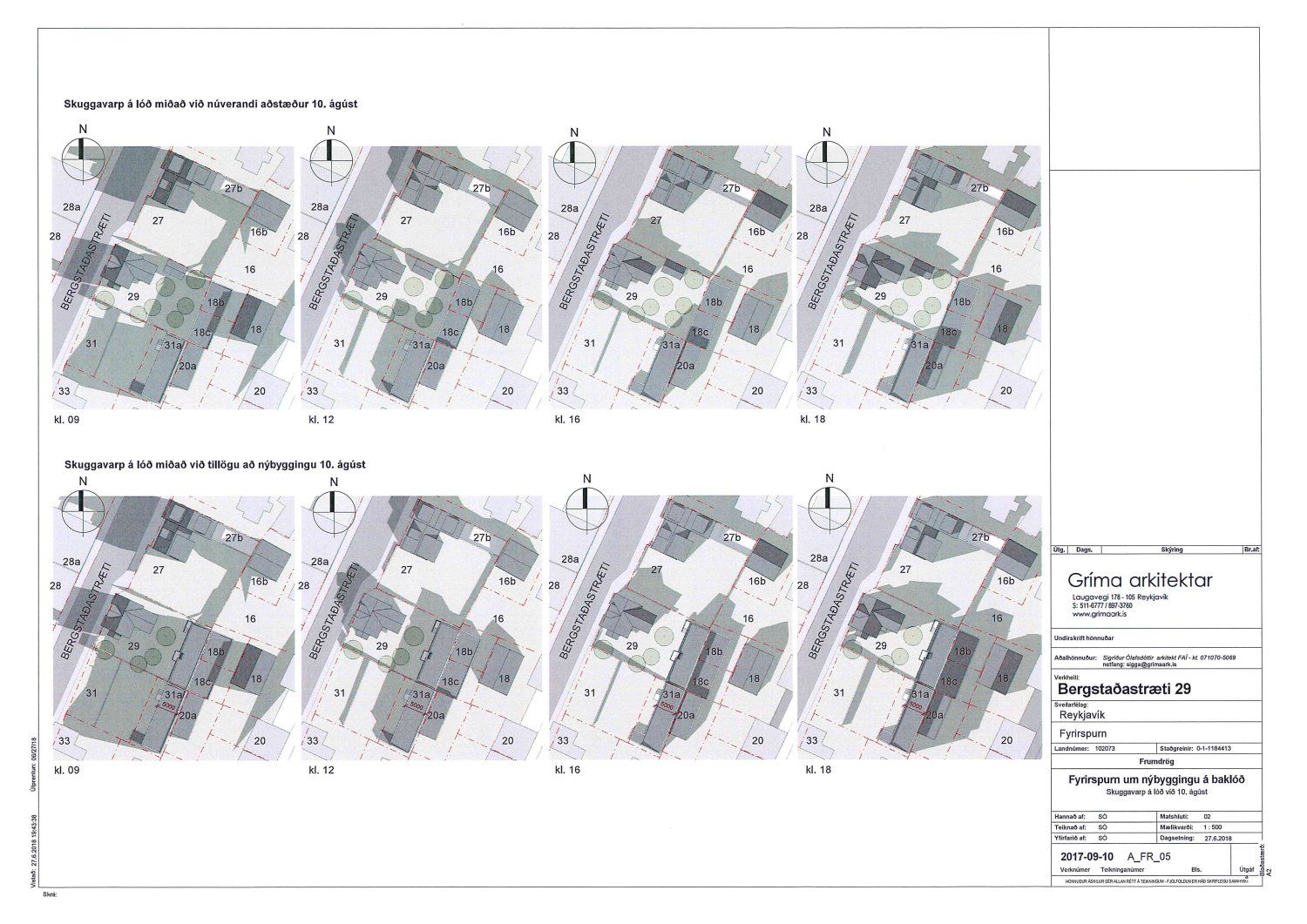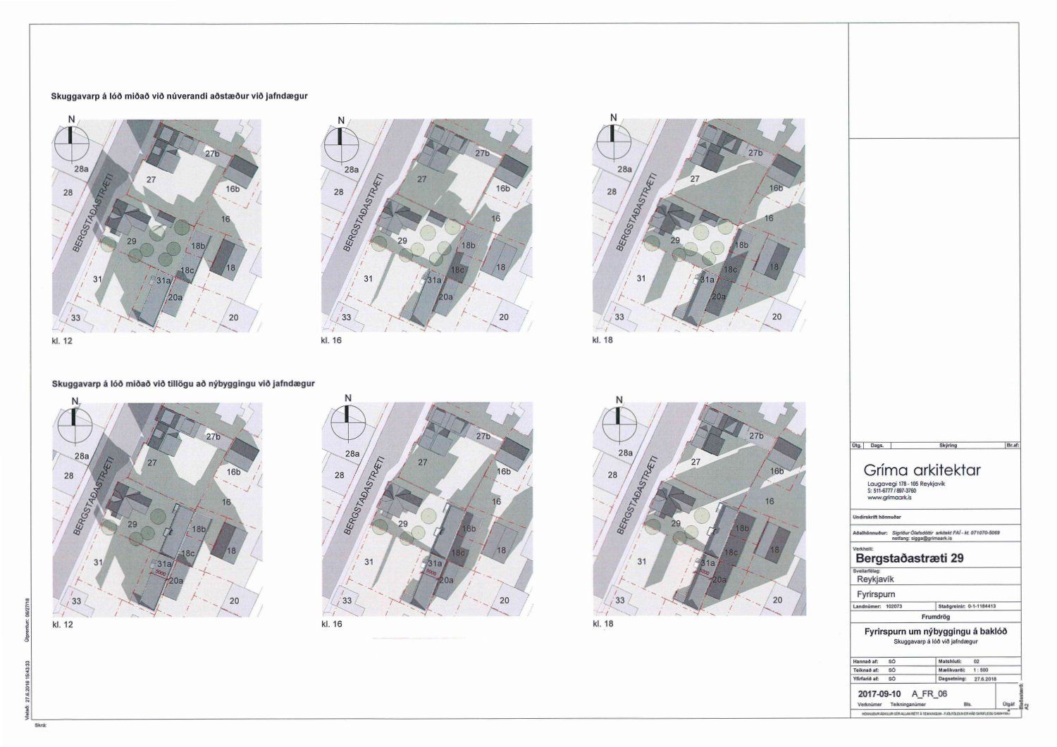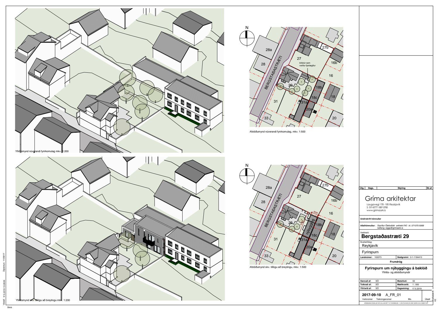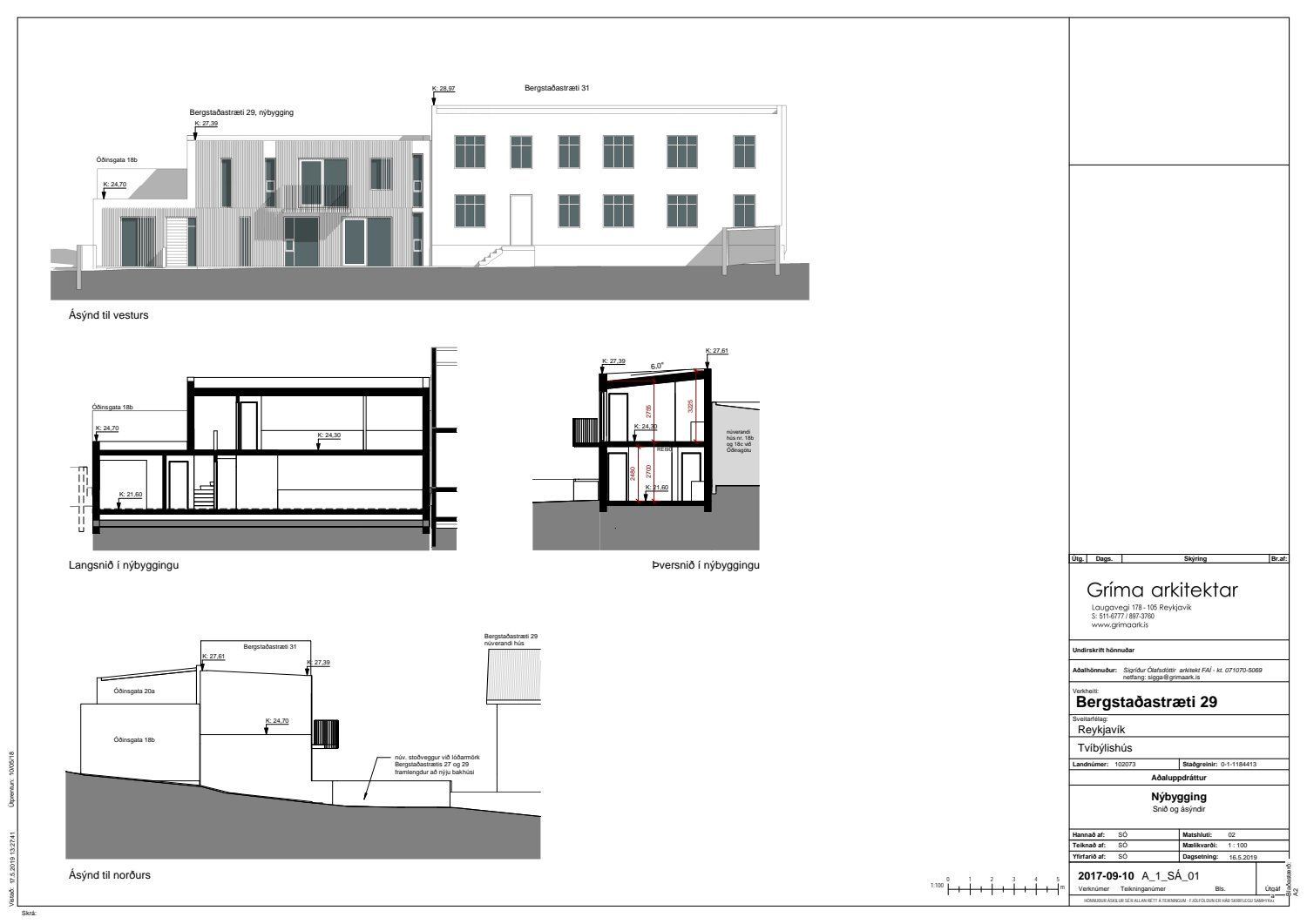 Að lokinni grenndarkynningu er lagt fram að nýju erindi frá afgreiðslufundi byggingarfulltrúa frá 23. október 2018 þar sem sótt er um leyfi til byggja mhl. 02 sem er tveggja hæða steinsteypt íbúðarhús með kjallara á lóð nr. 29 við Bergstaðastræti. Erindi var grenndarkynnt frá 5. nóvember 2018 til og með 3. desember 2018. Eftirtaldir aðilar sendu athugasemdir: Húseigendafélagið f.h. Telmu Hrund Jóhannesdóttur dags. 29. nóvember 2018, Brynja Aðalsteinsdóttir dags. 30. nóvember 2018, Berglind Sigurðardóttir f.h. eigenda að Bergstaðastræti 31A og Helga Berglind Atladóttir og Bjarni Már Bjarnason dags. 1. desember 2018, Sigurður Atli Atlason dags. 2. desember 2018 og Halldóra Jónsdóttir, Sigurður Páll Árnason, Ísold Jakobsdóttir og Benedikt Óttar Snæbjörnsson dags. 3. desember 2018. Einnig er lagður fram uppdráttur/sniðmyndir GRÍMA-arkitekta dags. 21. desember 2018 og umsögn Minjastofnunar Íslands dags. 11. janúar 2019. Jafnframt eru lagðir fram lagfærðir uppdættir GRÍMA-arkitekta ehf. dags. 16. maí 2019. Erindinu var vísað til umsagnar verkefnisstjóra á embættisafgreiðslufundi skipulagsfulltrúa 7. desember 2018 og er nú lagt fram að nýju.