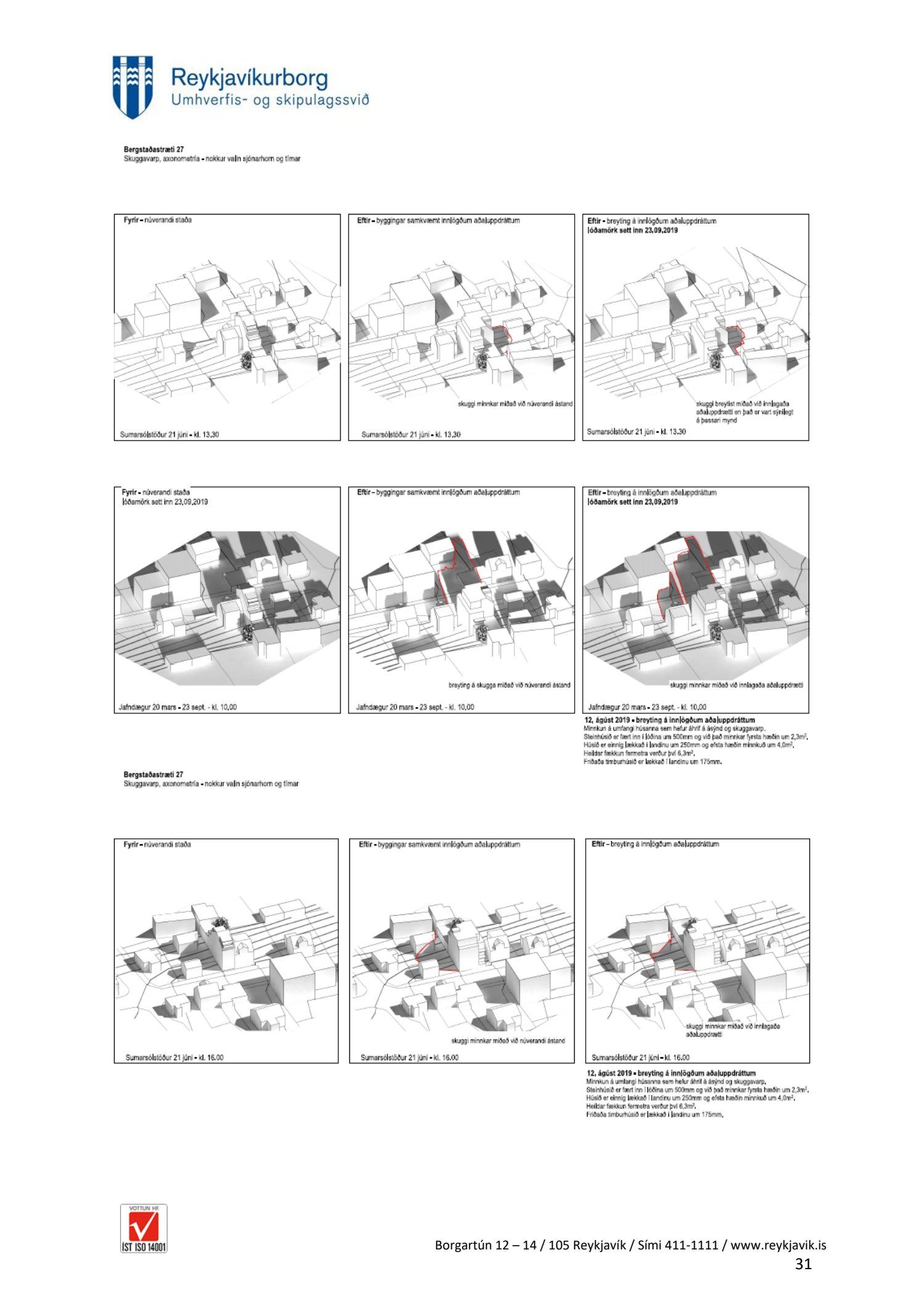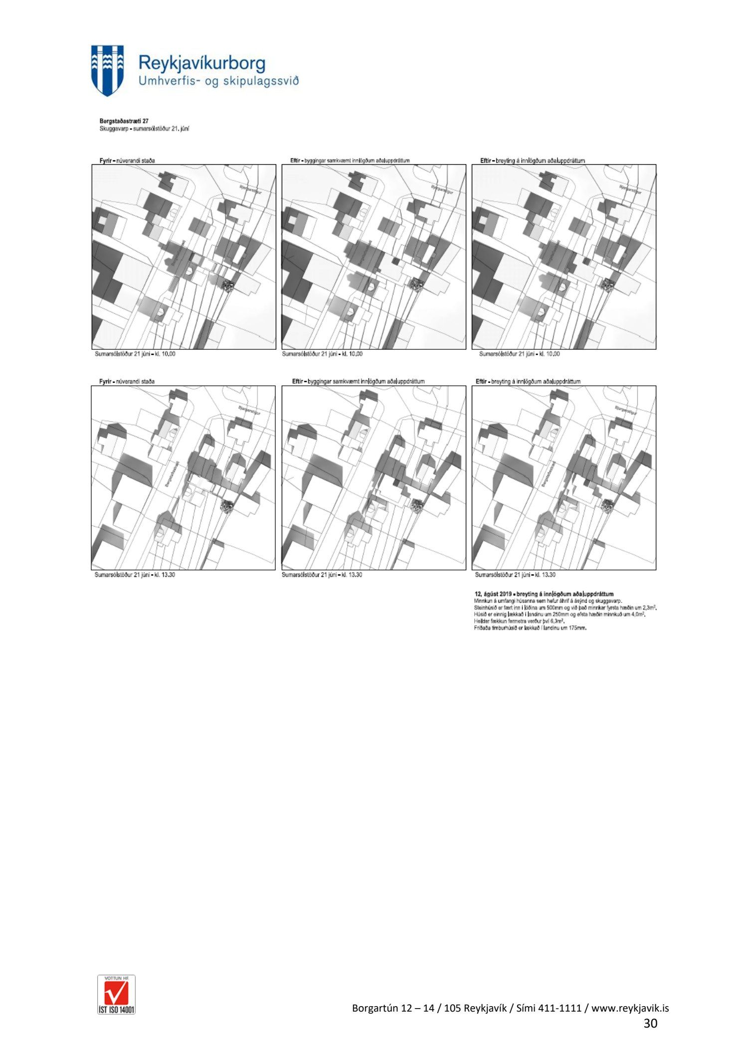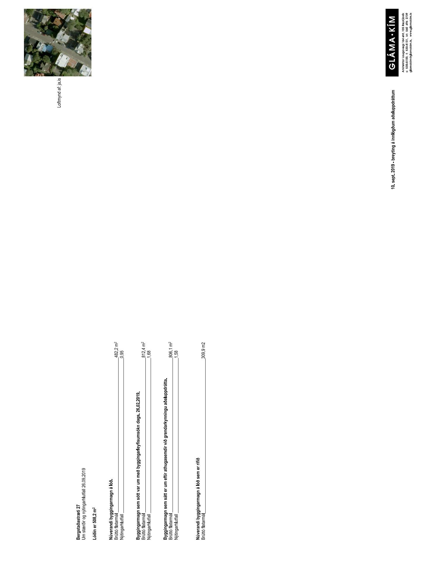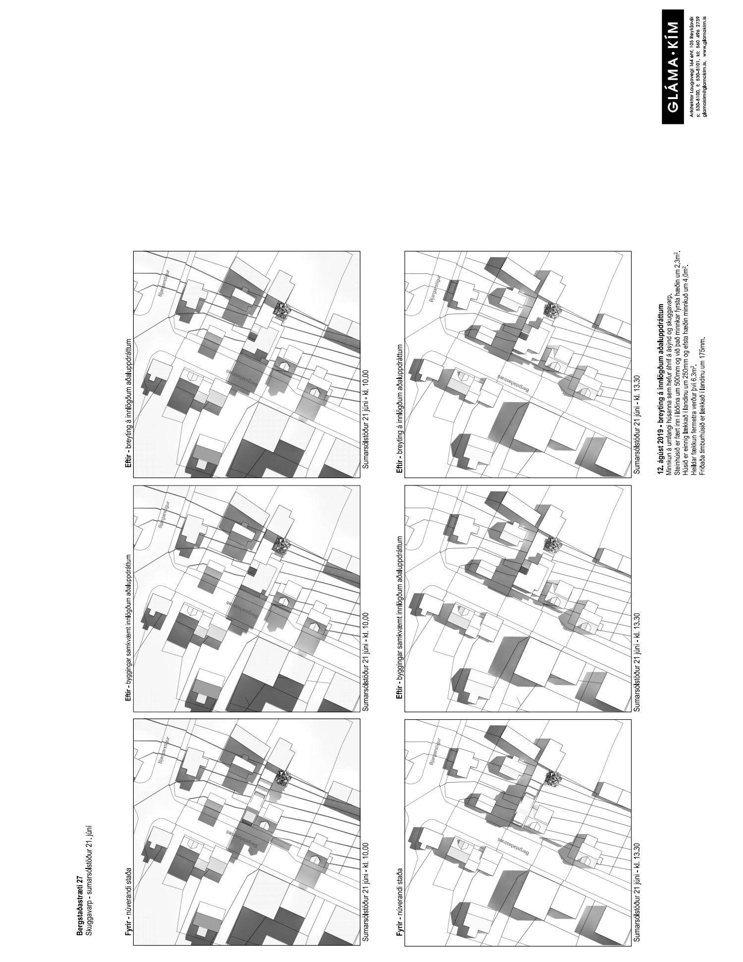 Jafnframt eru lagðir fram uppfærðir aðaluppdrættir ásamt uppfærðum skuggavarpsuppdráttum Glámu-Kím dags. 10. september 2019, viðbótargögn (framhliðar/götumyndir) dags. 25. september 2019 og uppfærðar götumyndir ódags.