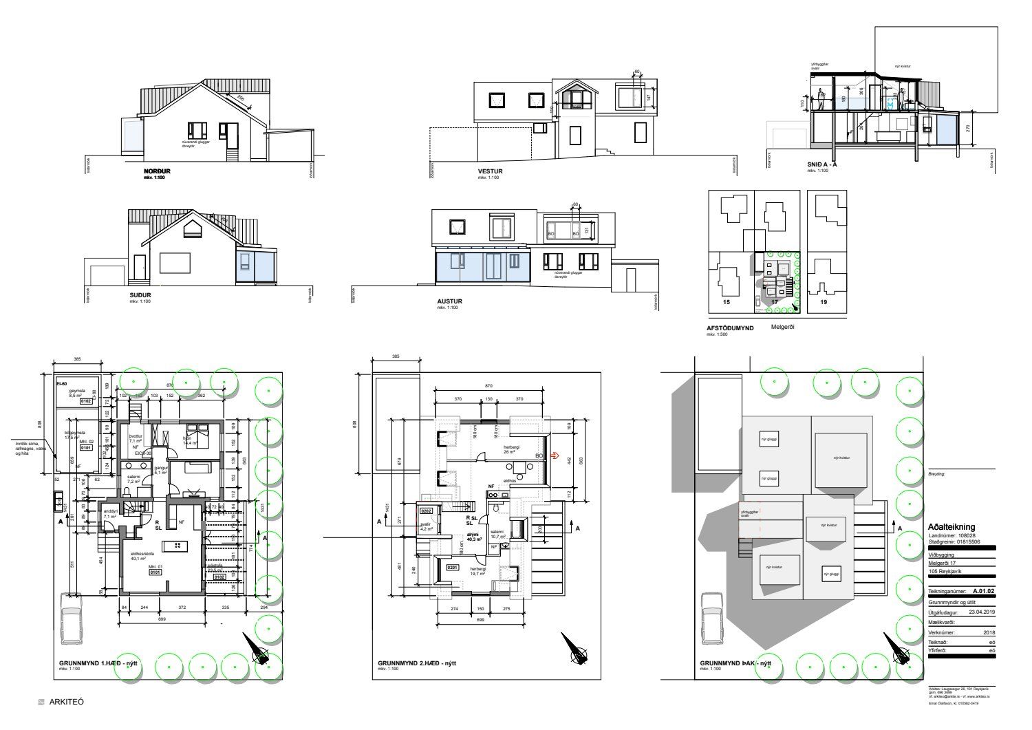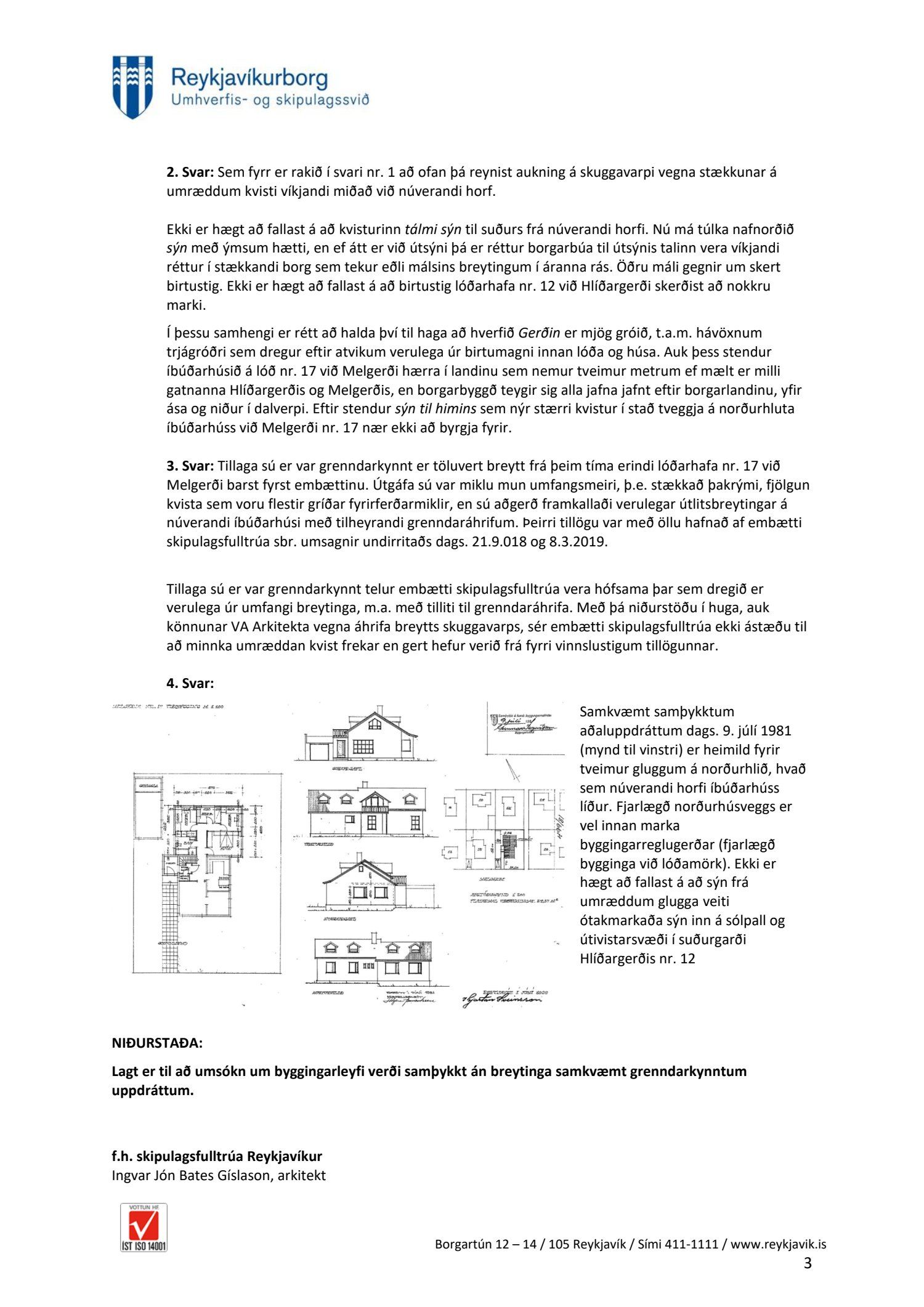 Að lokinni grenndarkynningu er lagt fram að nýju erindi frá afgreiðslufundi byggingarfulltrúa frá 14. maí 2019 þar sem sótt er um leyfi til að byggja sólstofu við austurhlið og til að rífa kvisti og byggja nýja, koma fyrir þakgluggum, gera yfirbyggðar svalir á vesturhlið og breyta innra skipulagi efri hæðar ásamt því að gerð er grein fyrir áður gerðum bílskúr á lóð einbýlishúss á lóð nr. 17 við Melgerði, samkvæmt uppdr. Arkiteo ehf. dags. 23. apríl 2019. Erindi var grenndarkynnt frá 12. júní 2019 til og með 10. júlí 2019. Eftirtaldir aðilar sendu athugasemdir: Sigurður Guðjónsson og Edda Thors dags. 8. júlí 2019. Einnig er lögð fram umsögn skipulagsfulltrúa dags. 16. ágúst 2019. Umsögn skipulagsfulltrúa dags. 12. júlí 2019 samþykkt. Vísað til fullnaðarafgreiðslu byggingarfulltrúa.