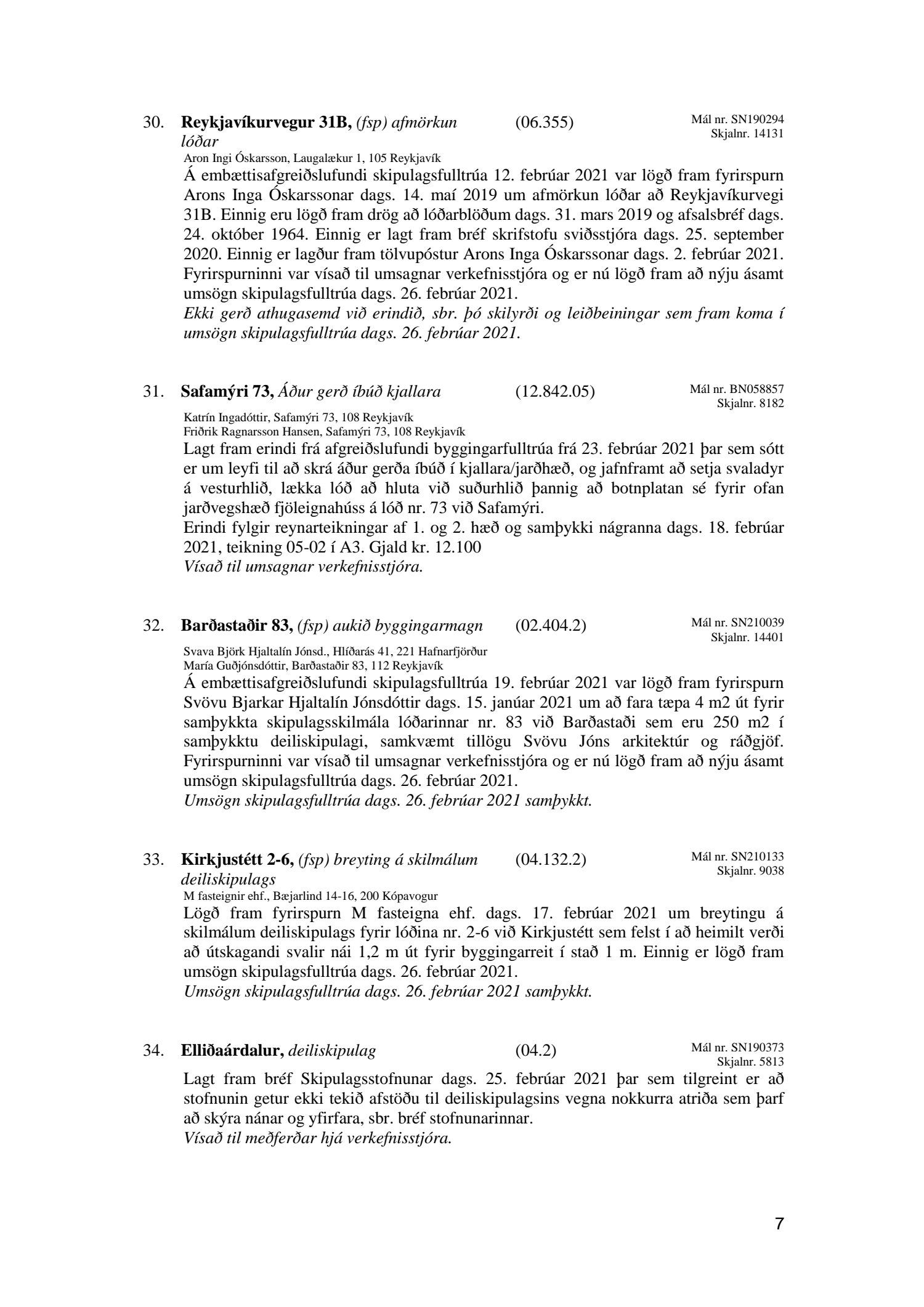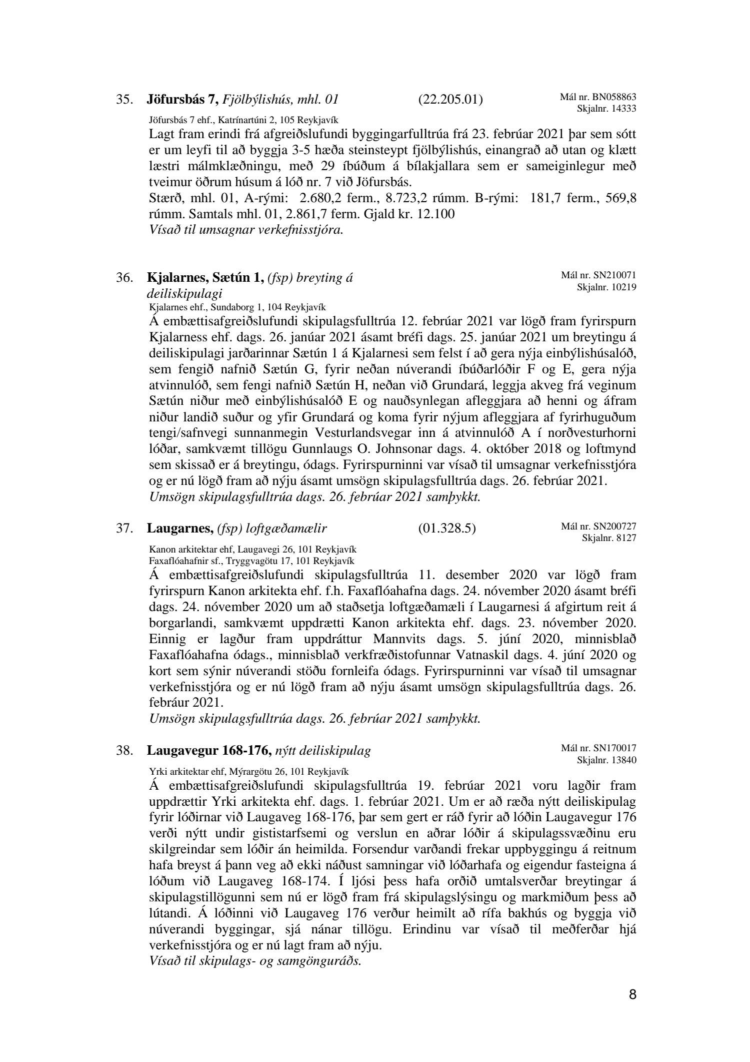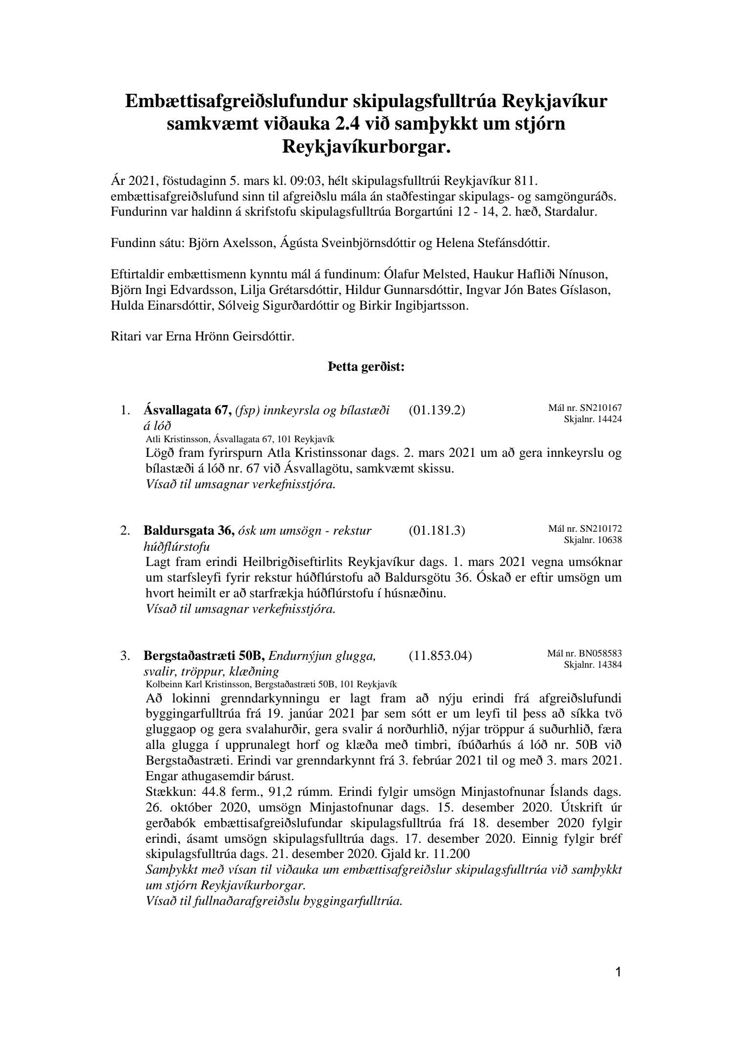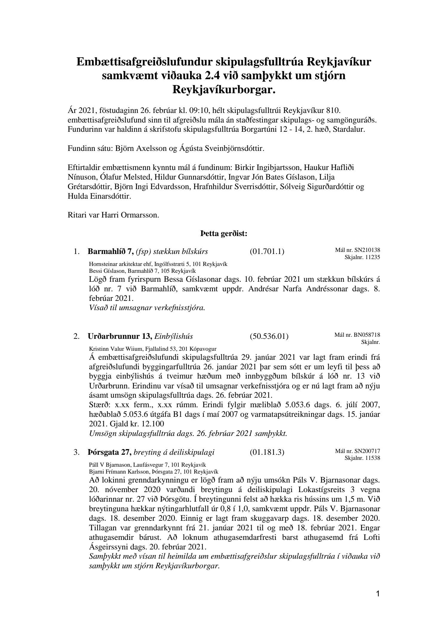 Afgreiðslufundir skipulagsfulltrúa Reykjavíkur, fundargerð