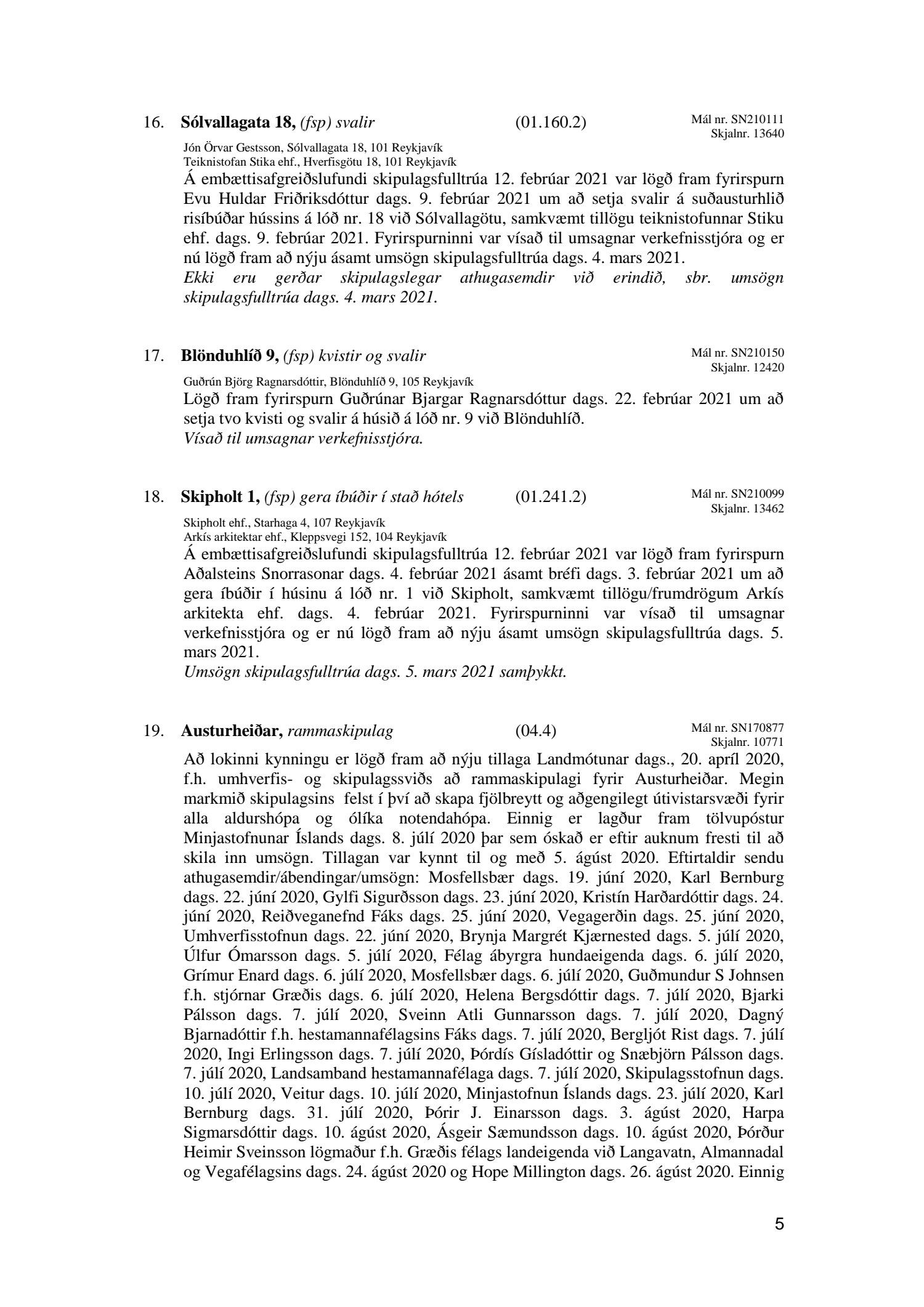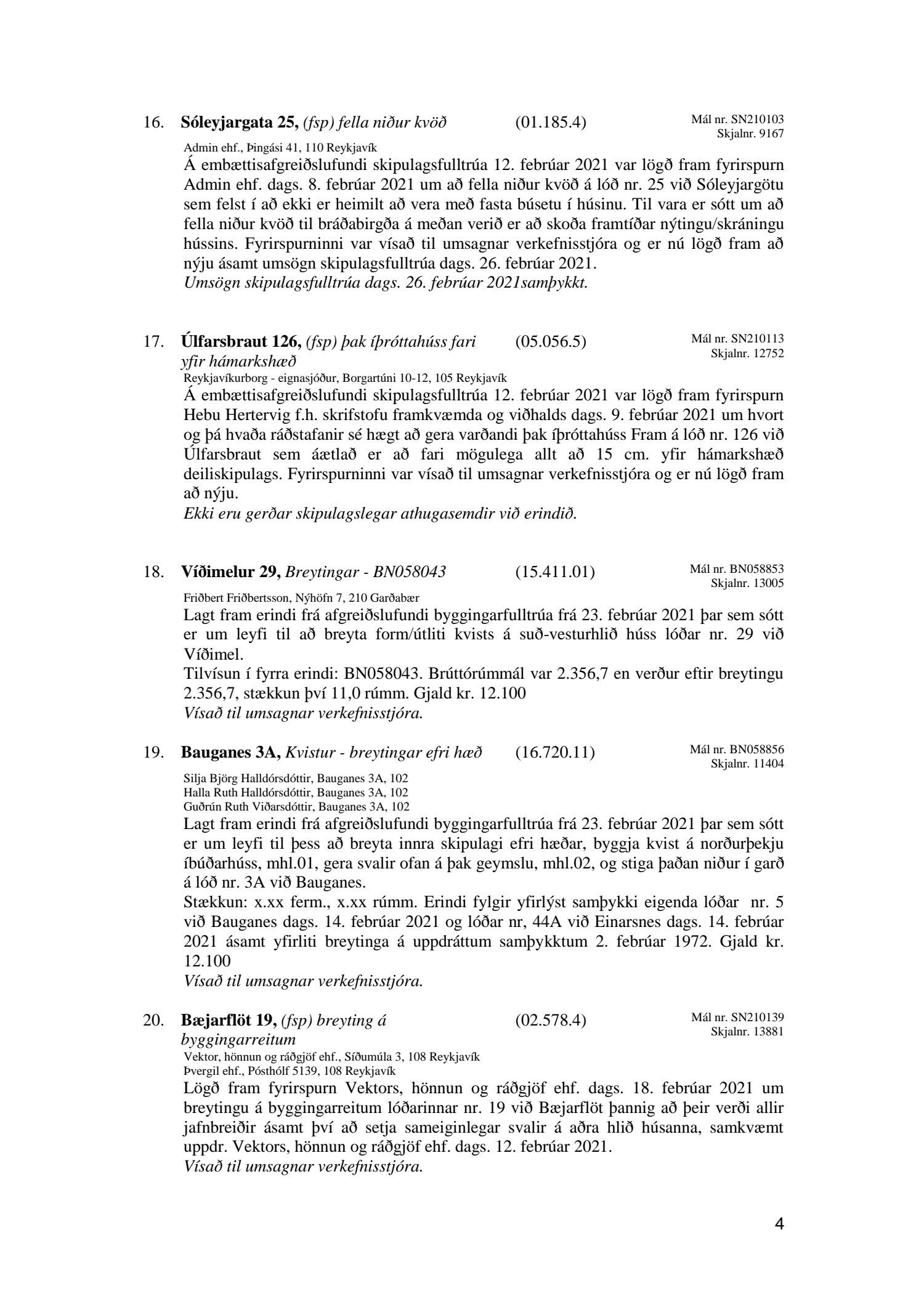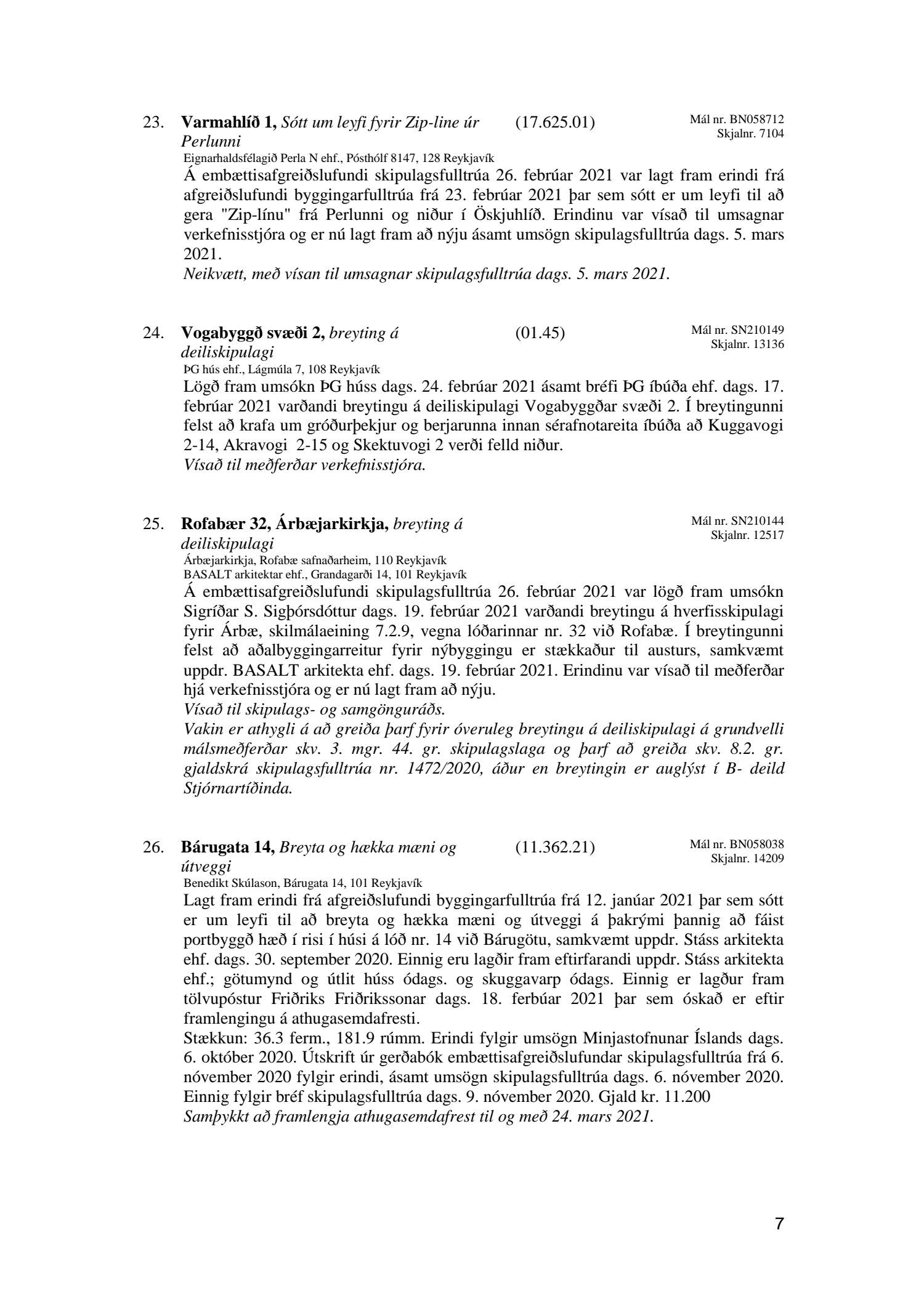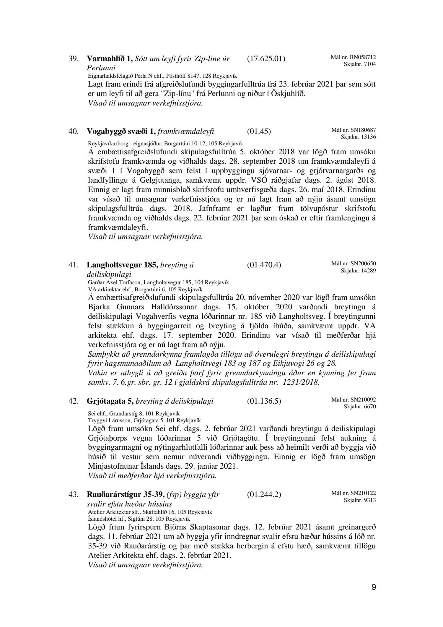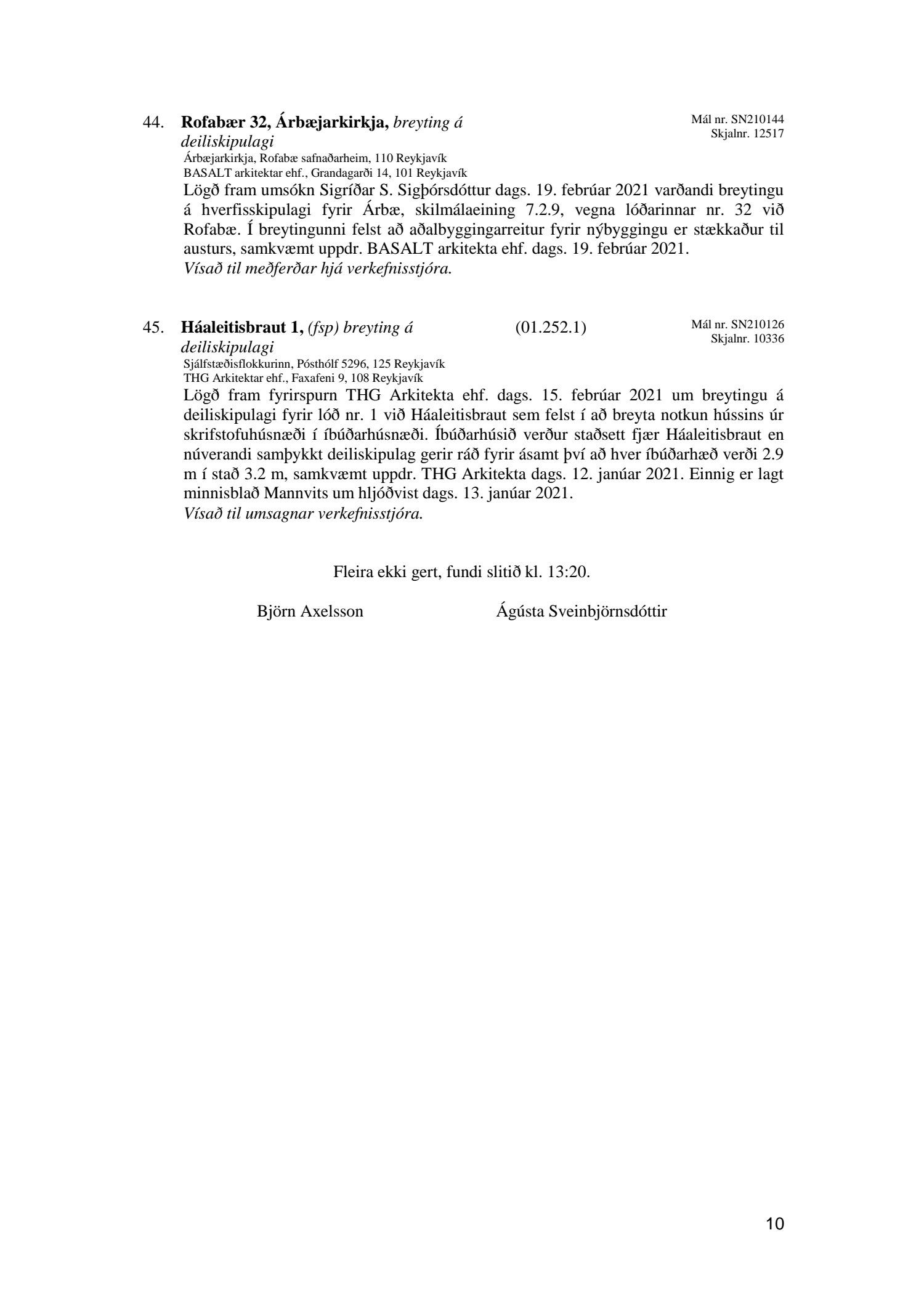 Afgreiðslufundir skipulagsfulltrúa Reykjavíkur, fundargerð