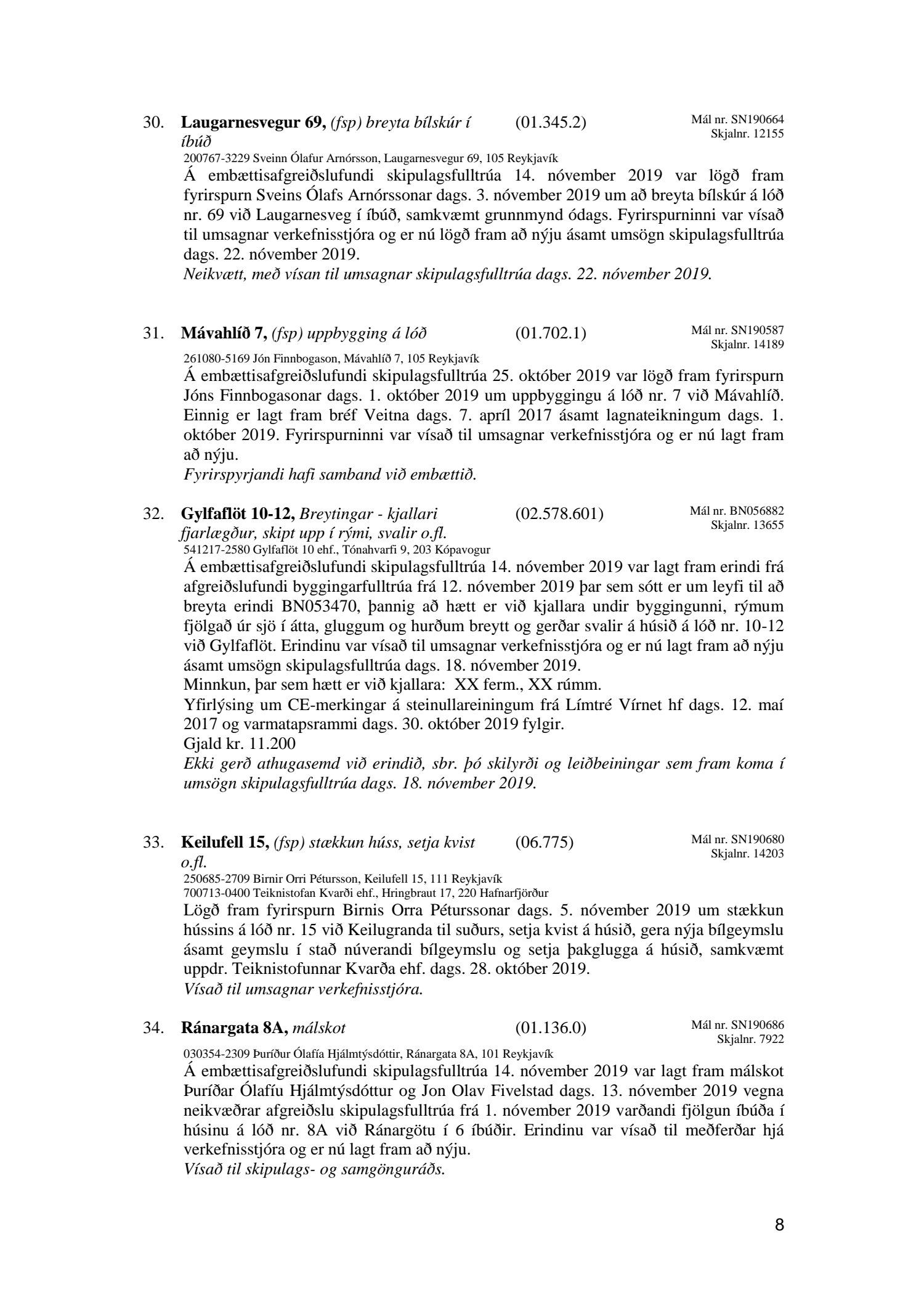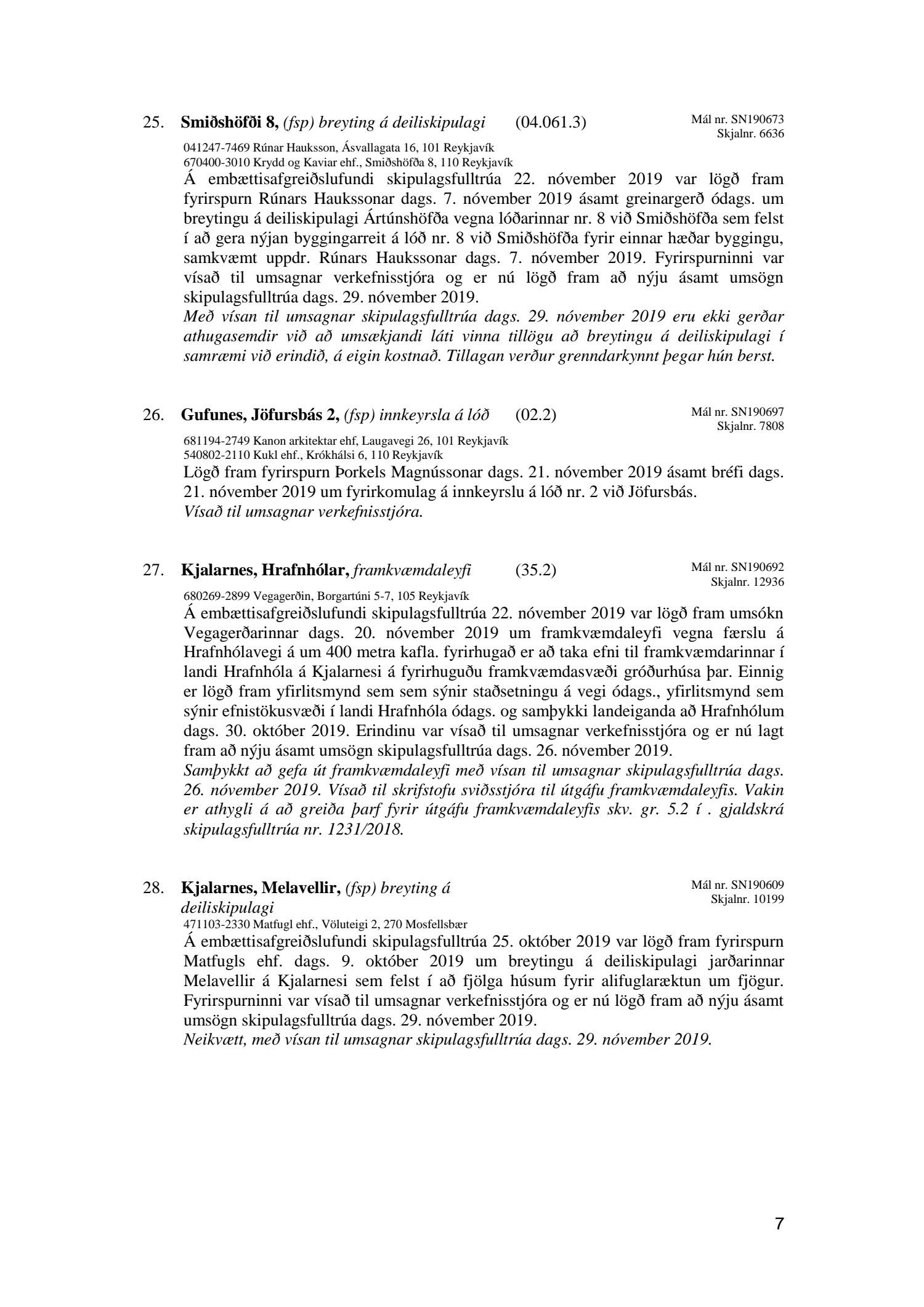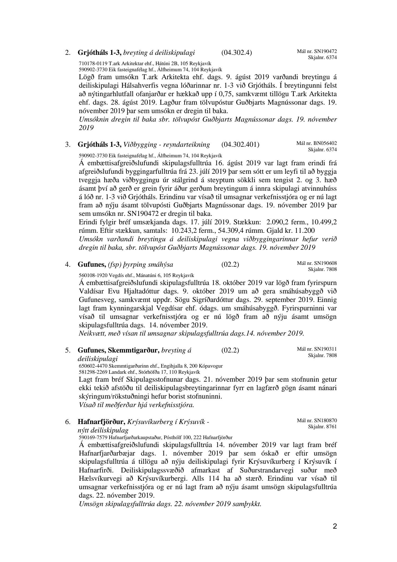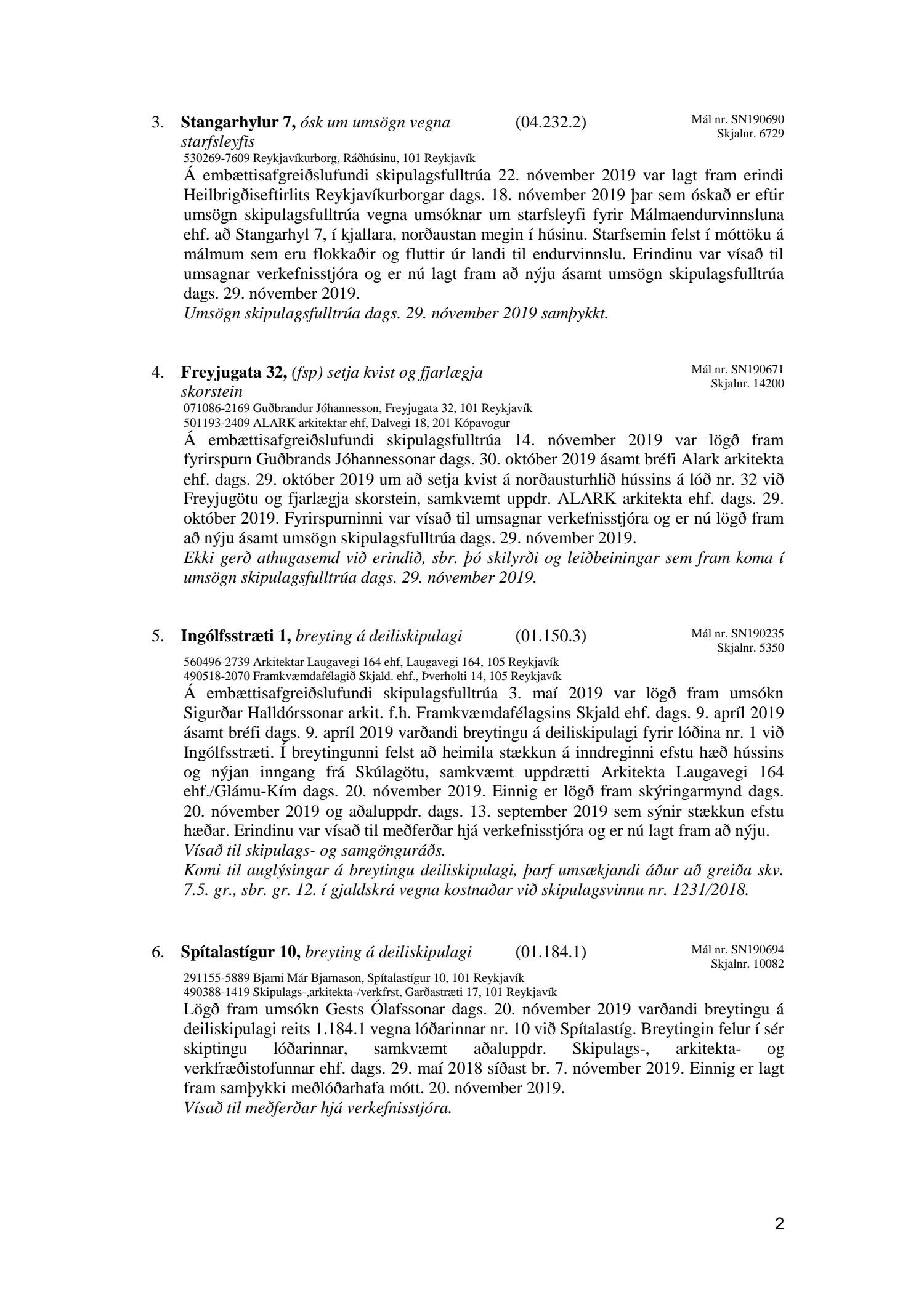 Afgreiðslufundir skipulagsfulltrúa Reykjavíkur, fundargerð