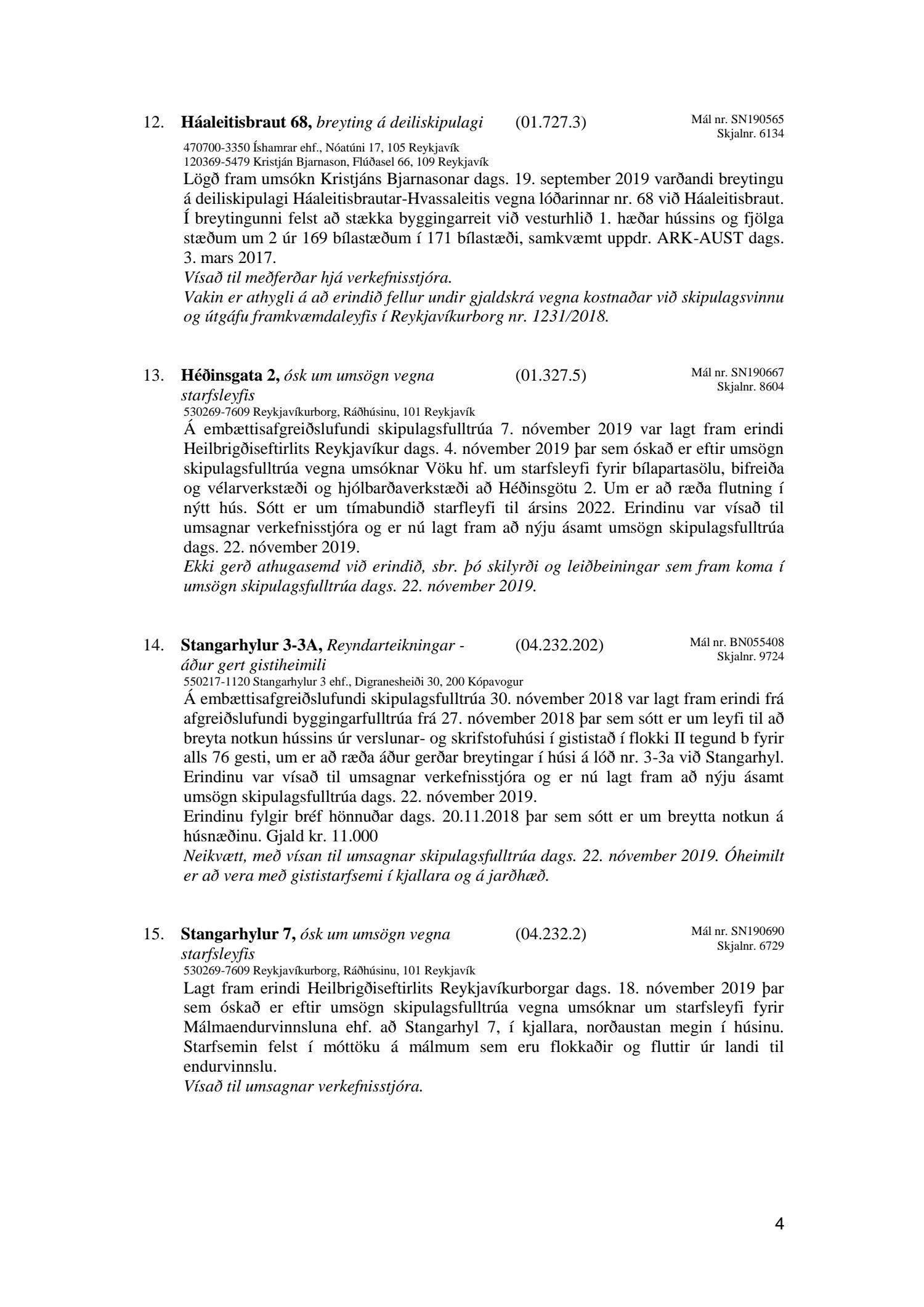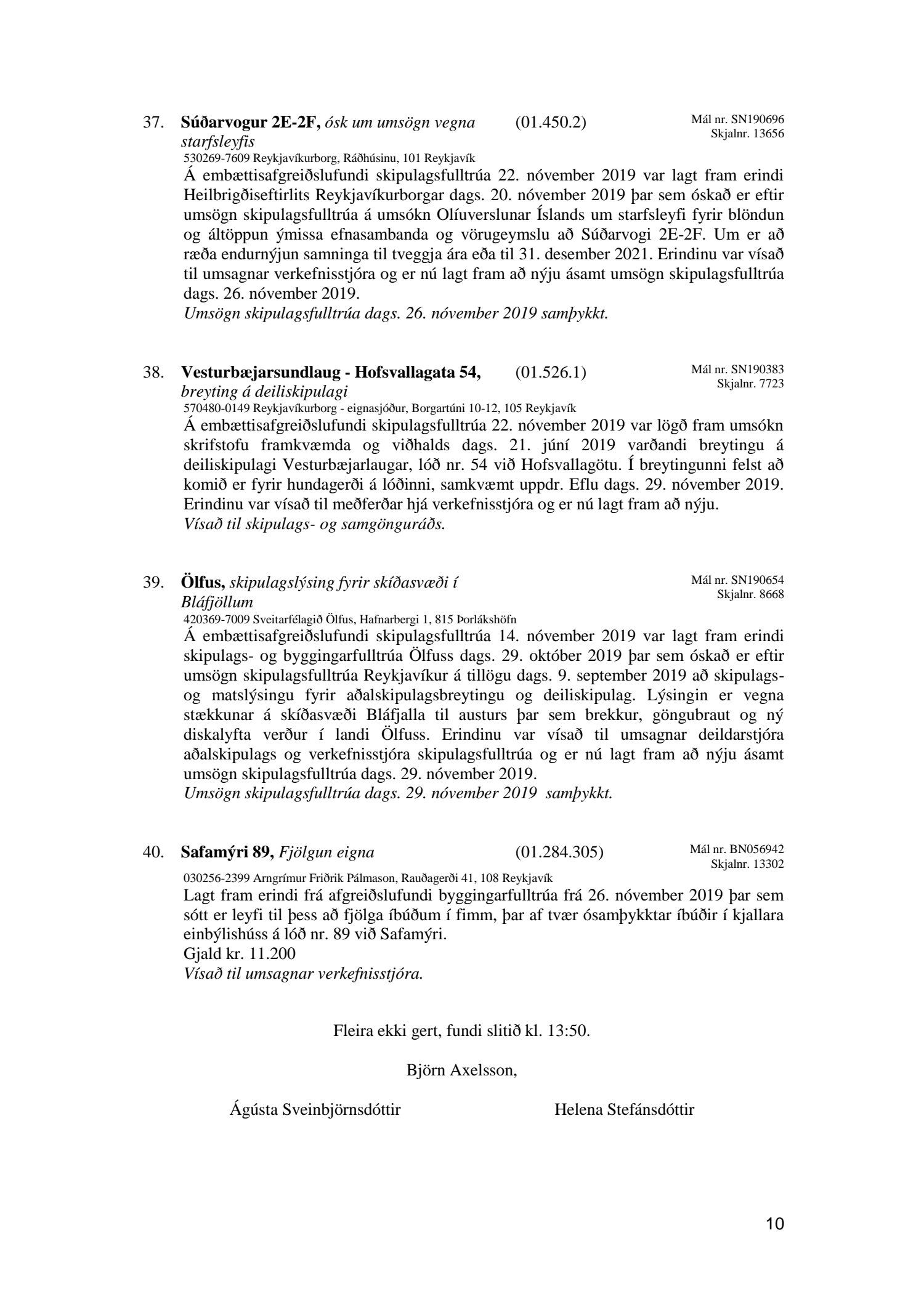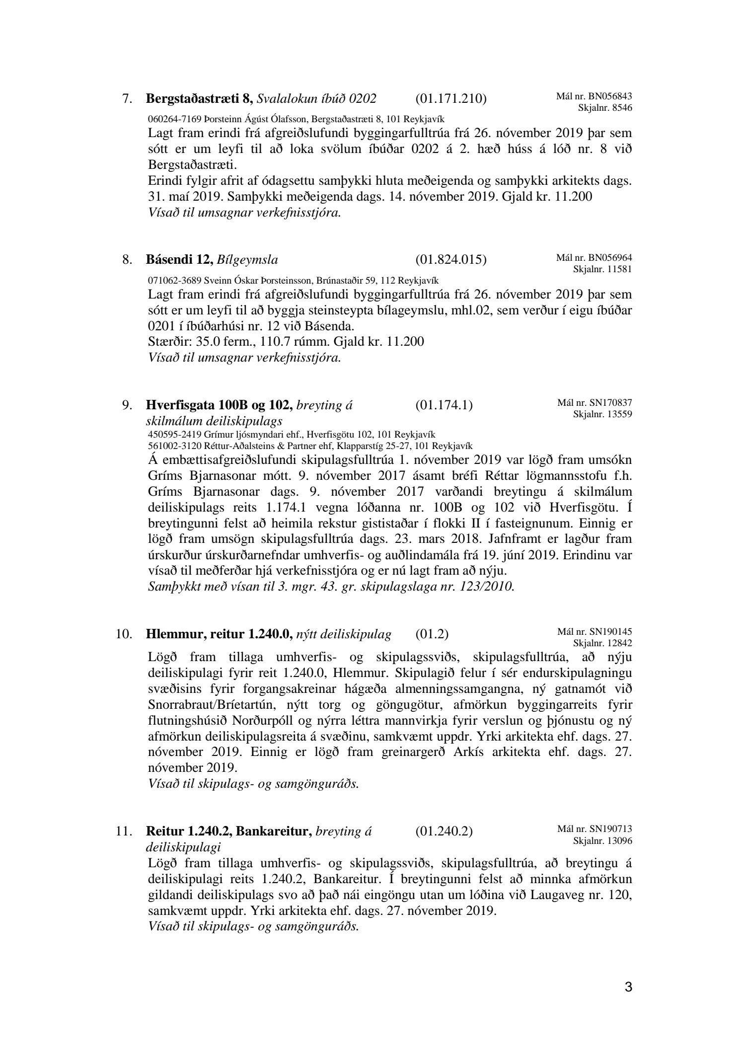 Afgreiðslufundir skipulagsfulltrúa Reykjavíkur, fundargerð