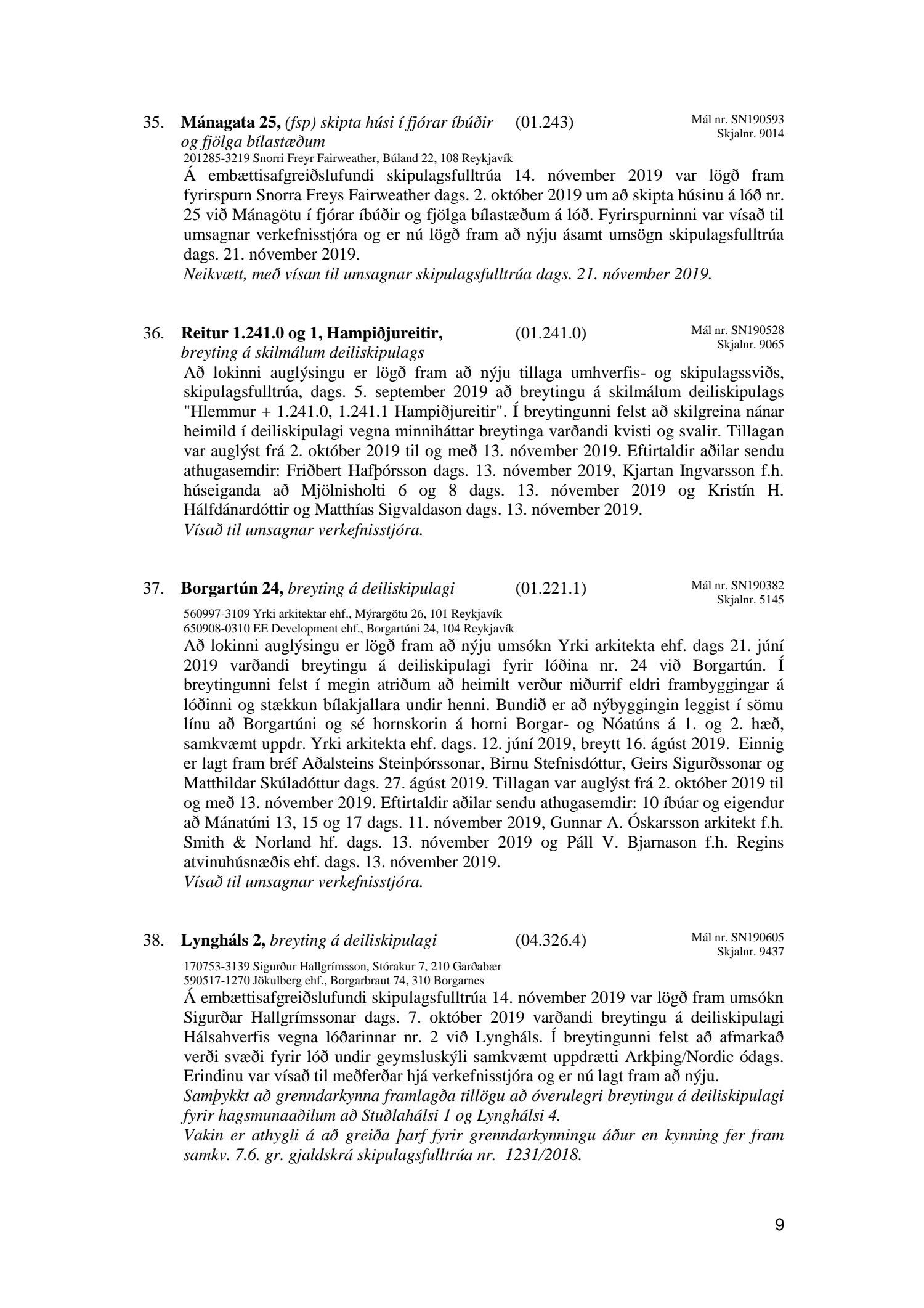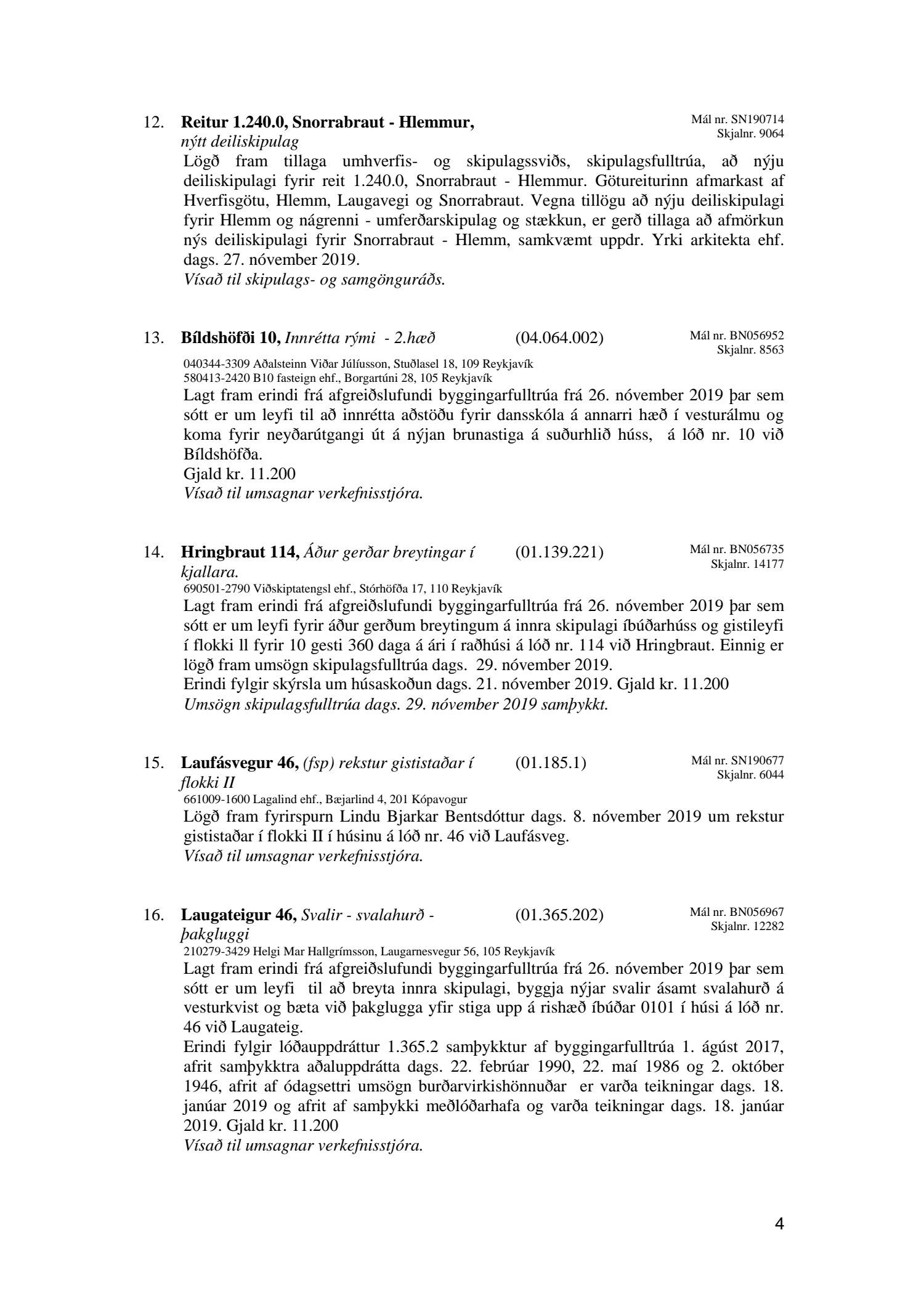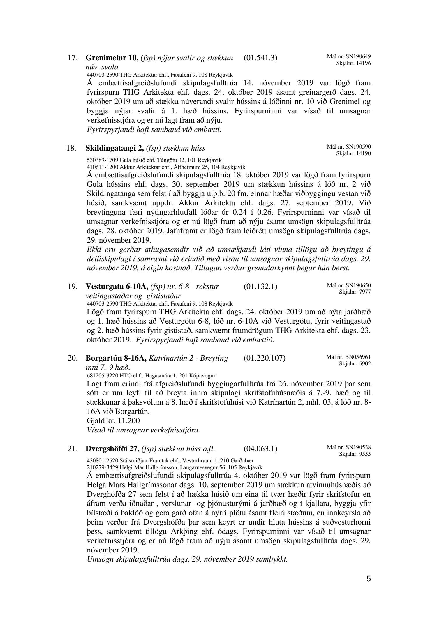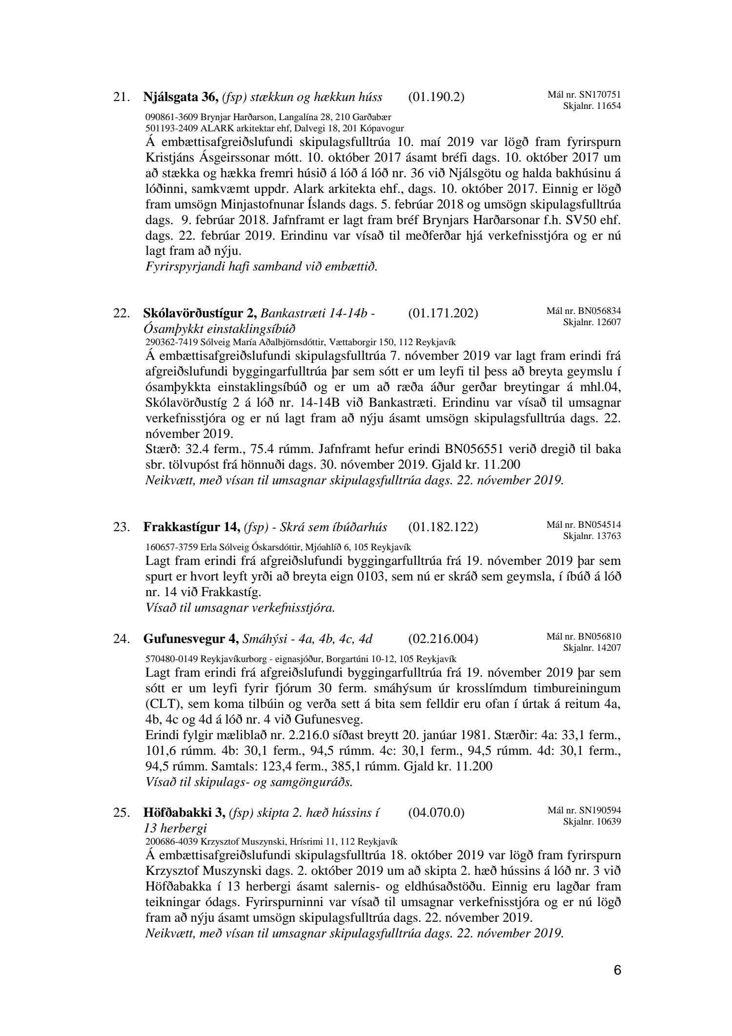 Afgreiðslufundir skipulagsfulltrúa Reykjavíkur, fundargerð