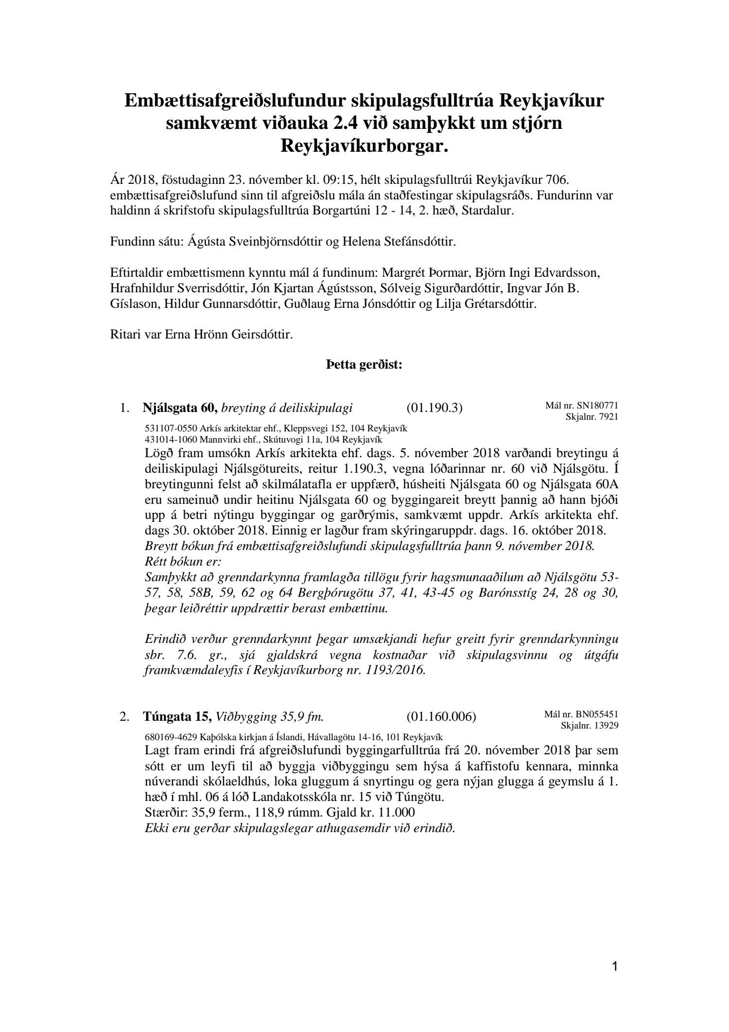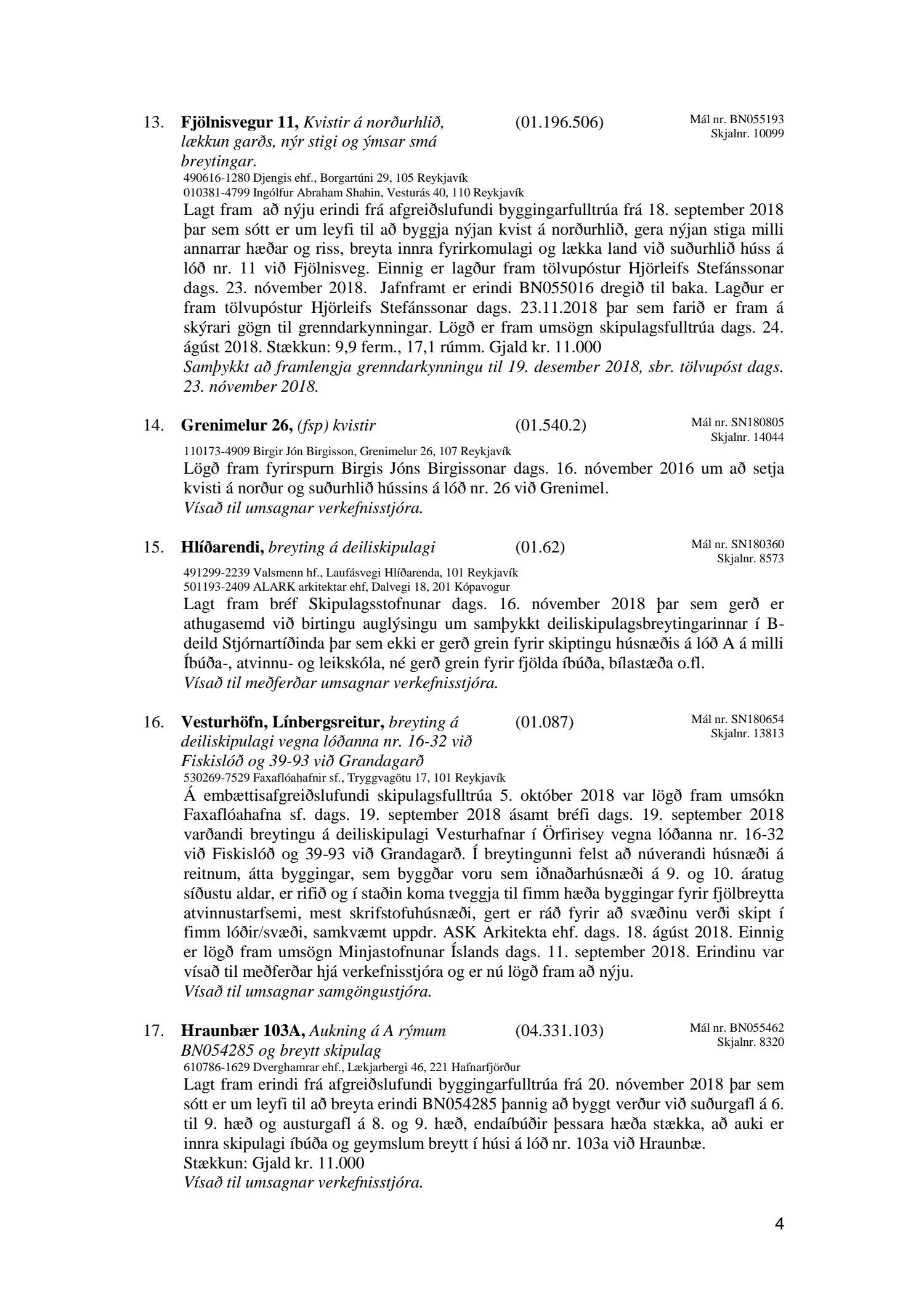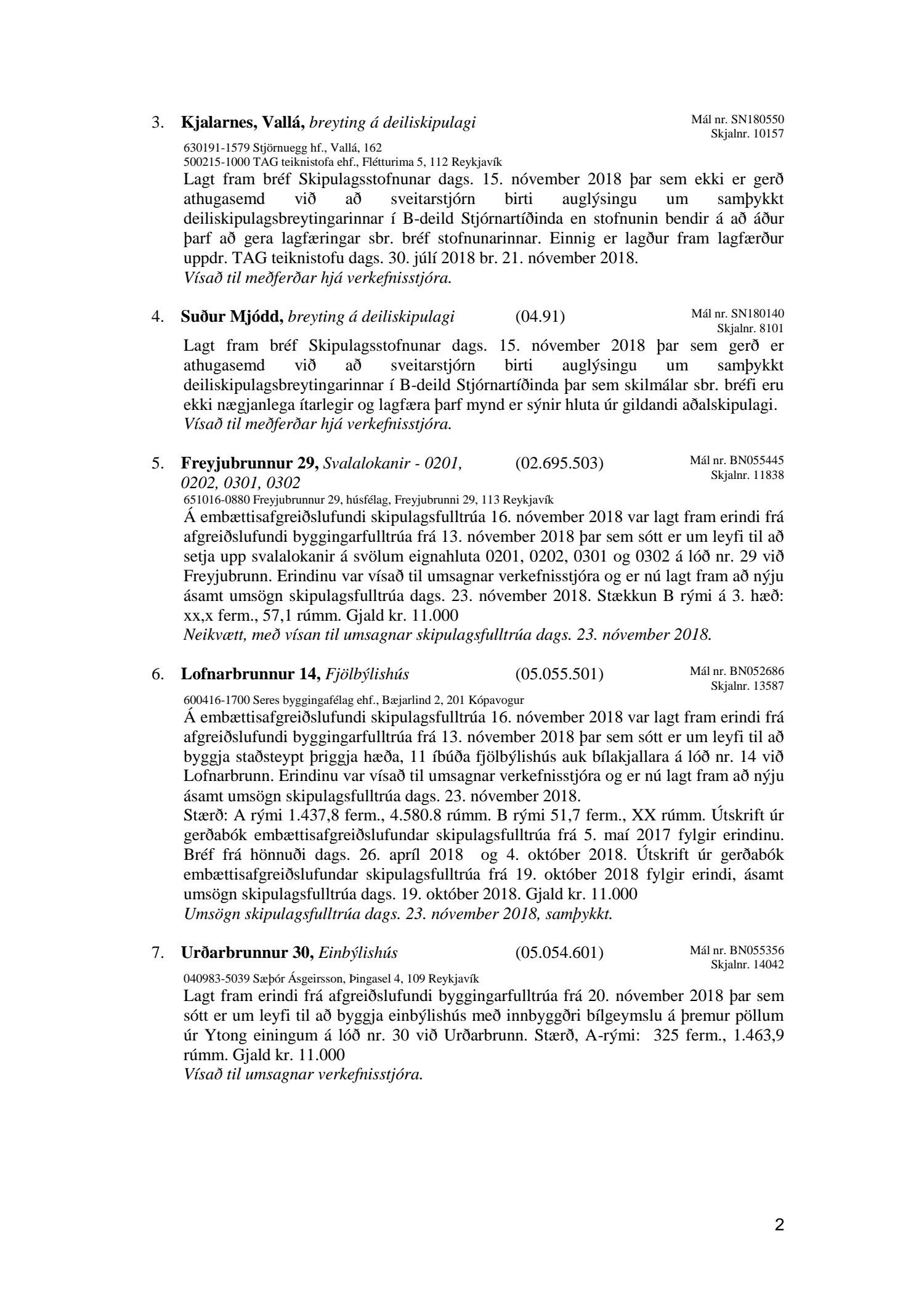 Afgreiðslufundir skipulagsfulltrúa 23. nóvember 2018