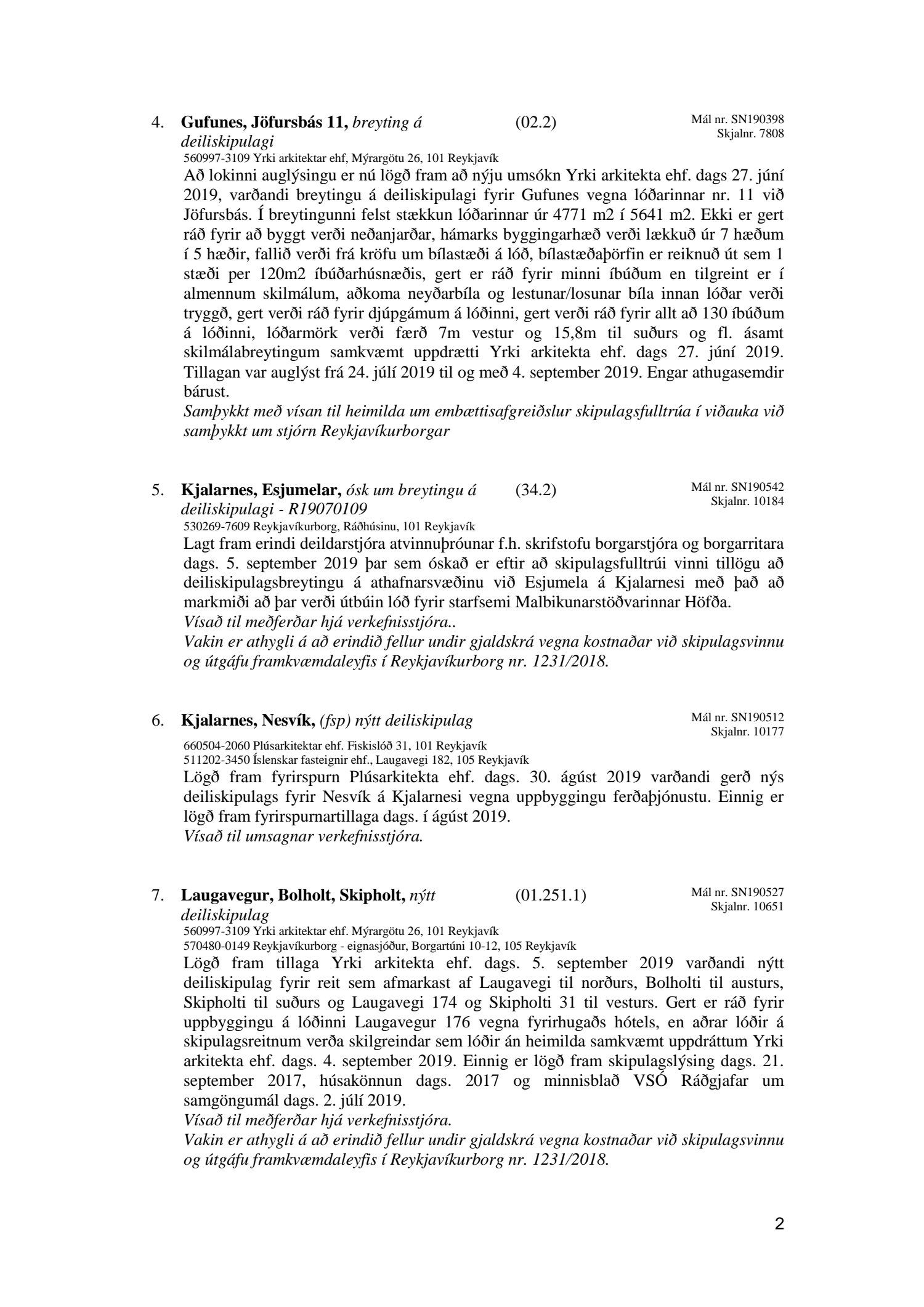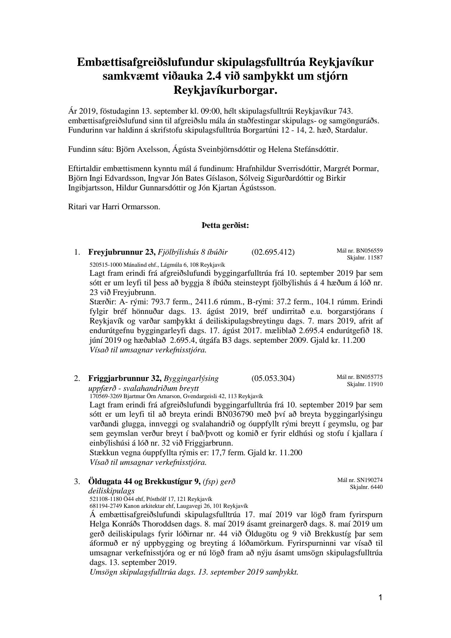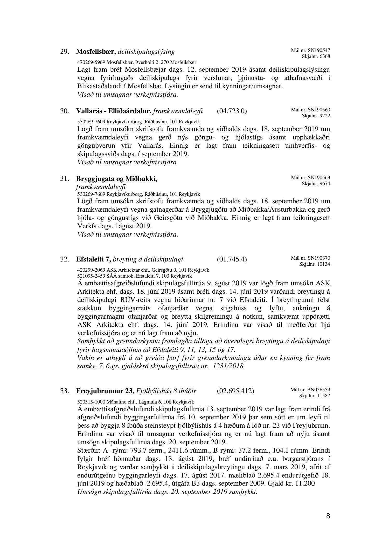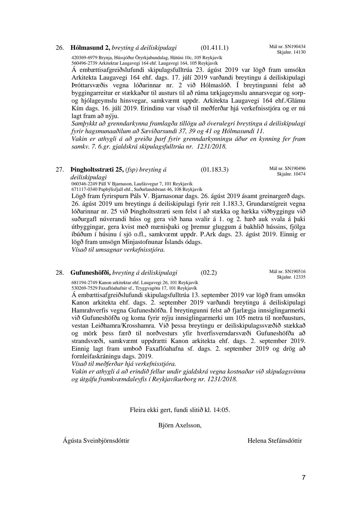 Afgreiðslufundir skipulagsfulltrúa Reykjavíkur, fundargerð