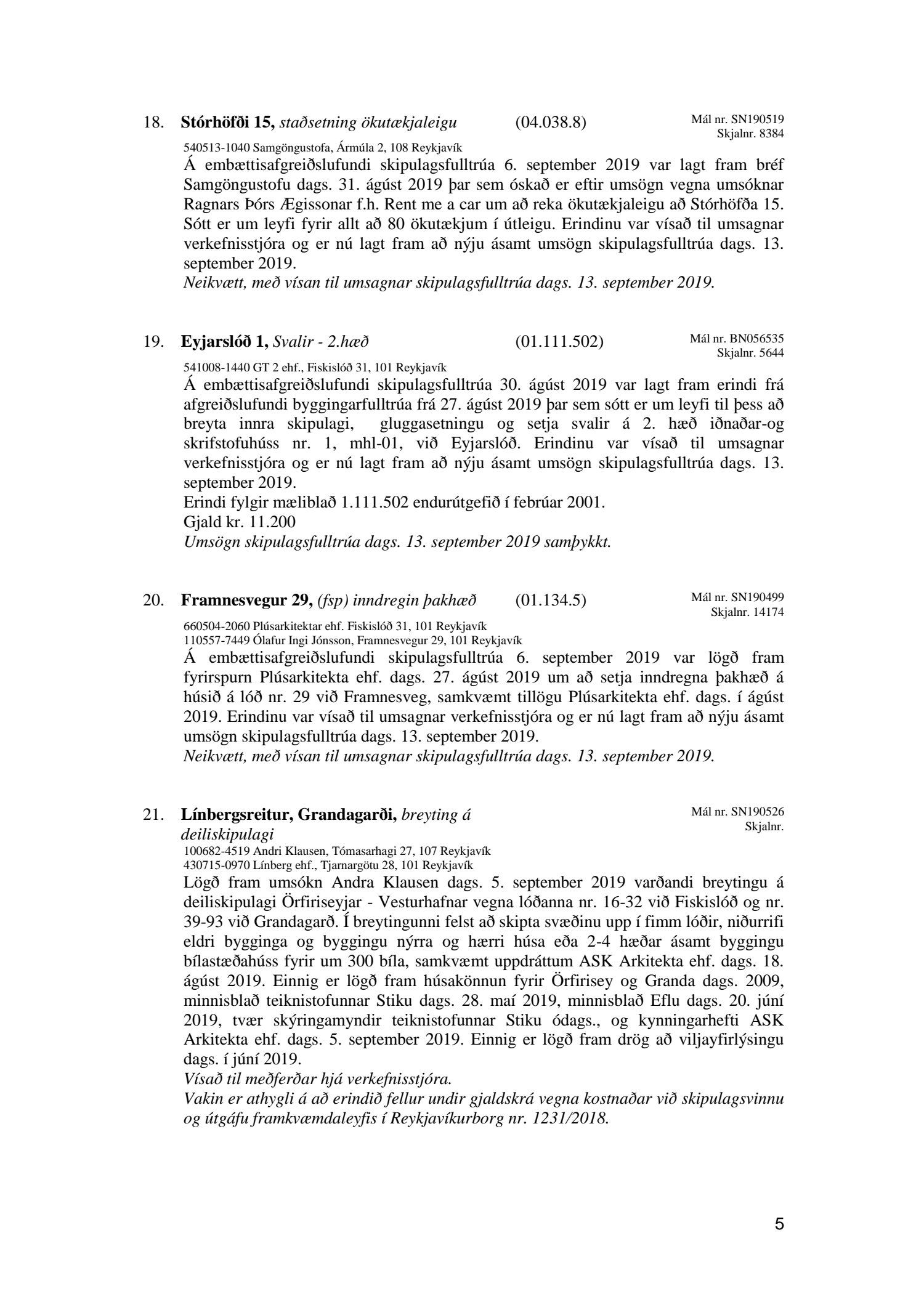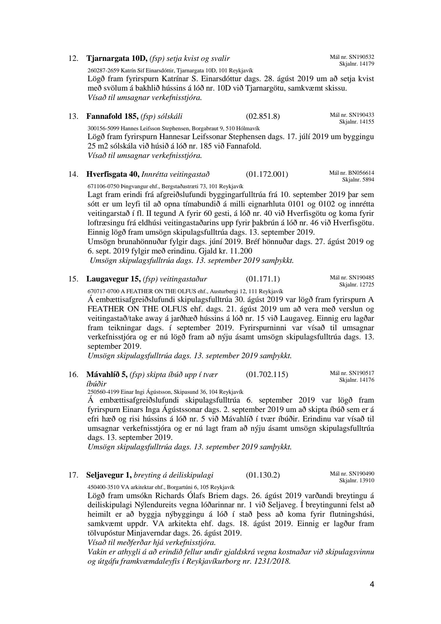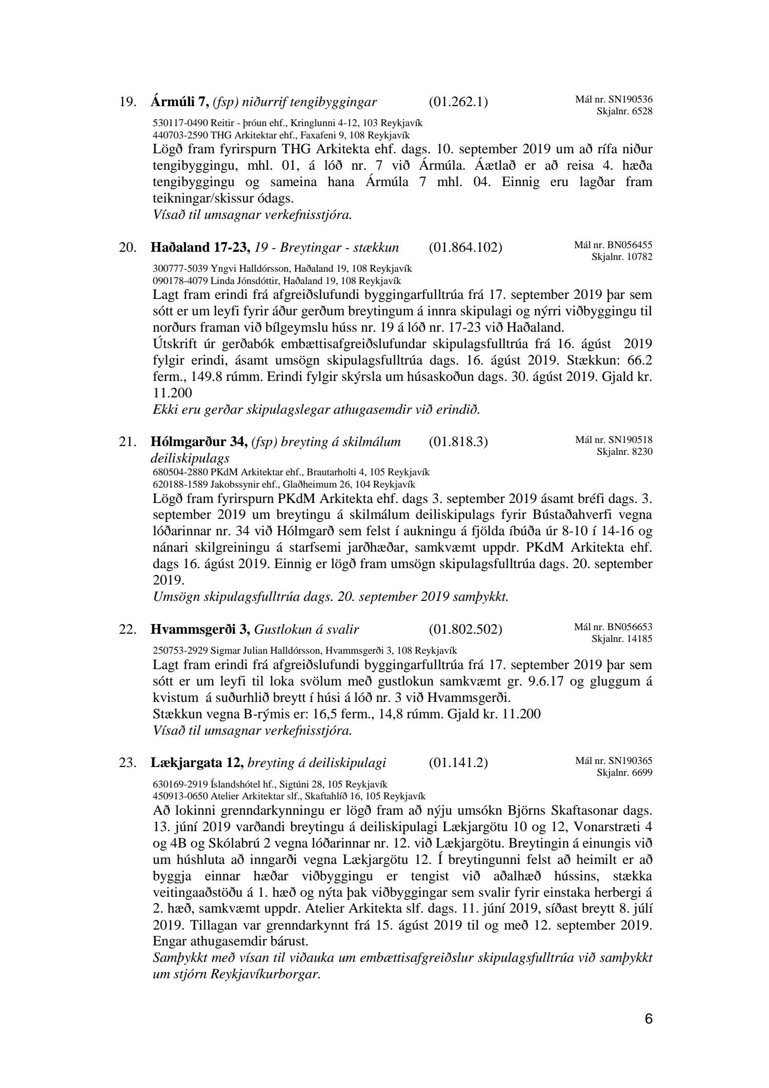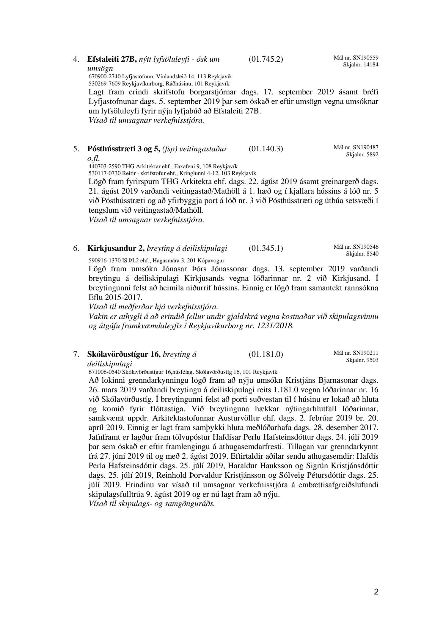 Afgreiðslufundir skipulagsfulltrúa Reykjavíkur, fundargerð