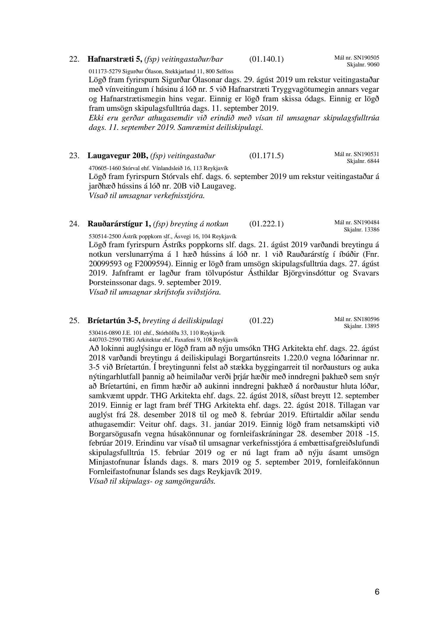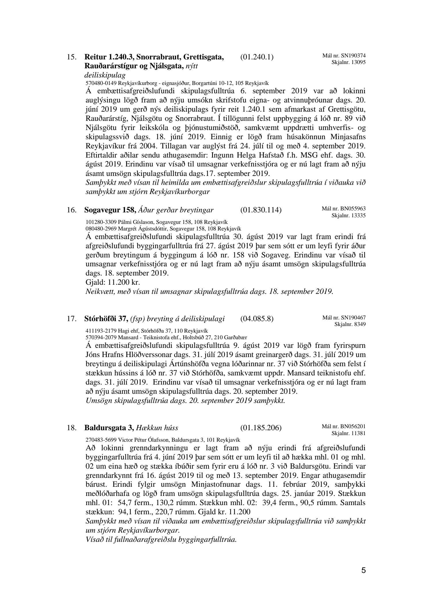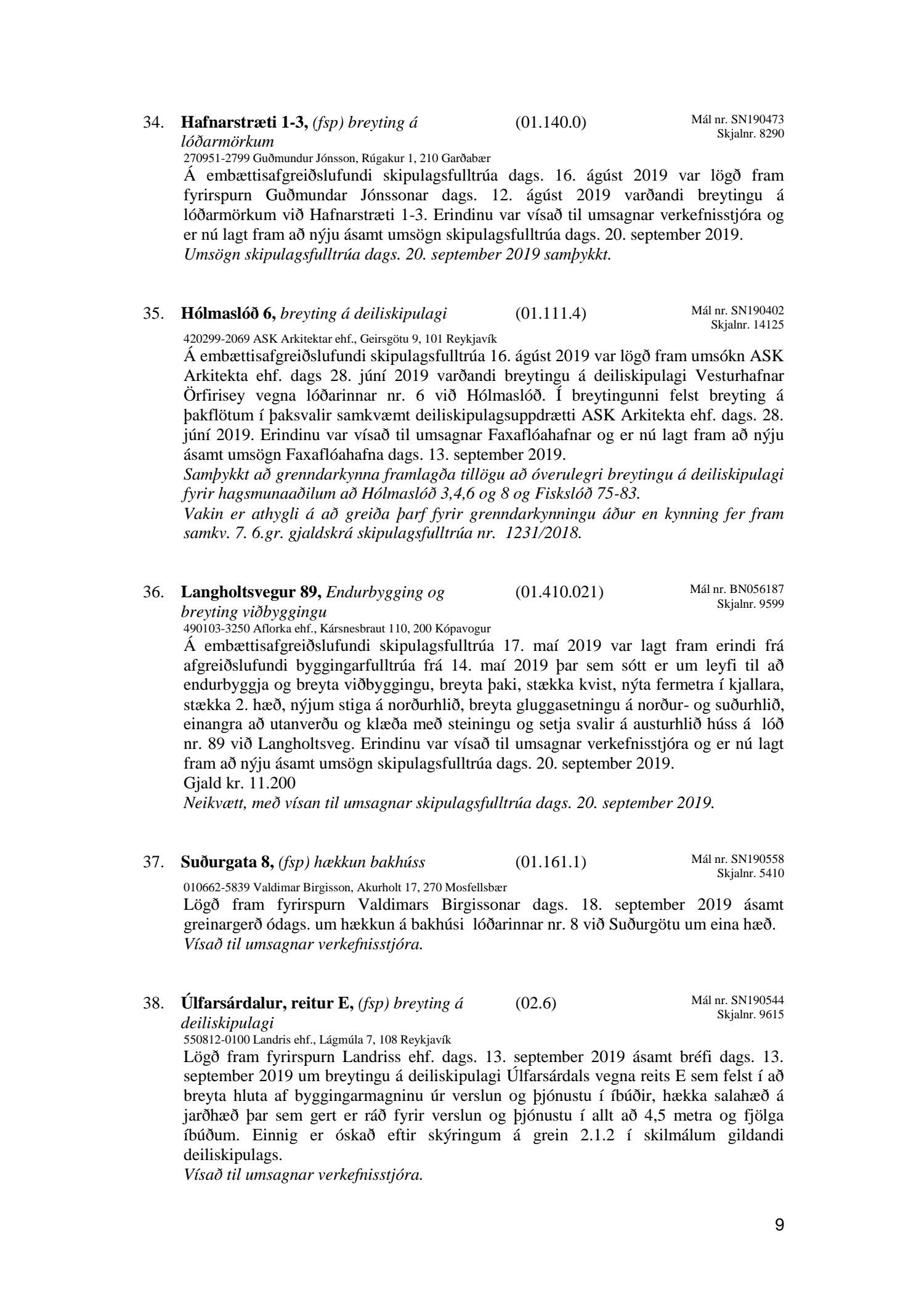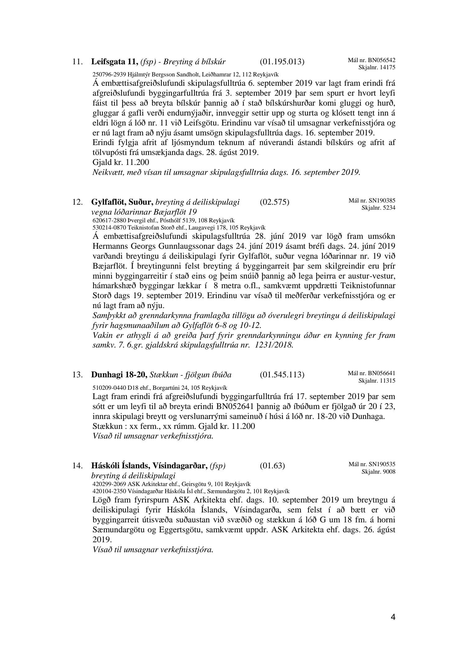 Afgreiðslufundir skipulagsfulltrúa Reykjavíkur, fundargerð