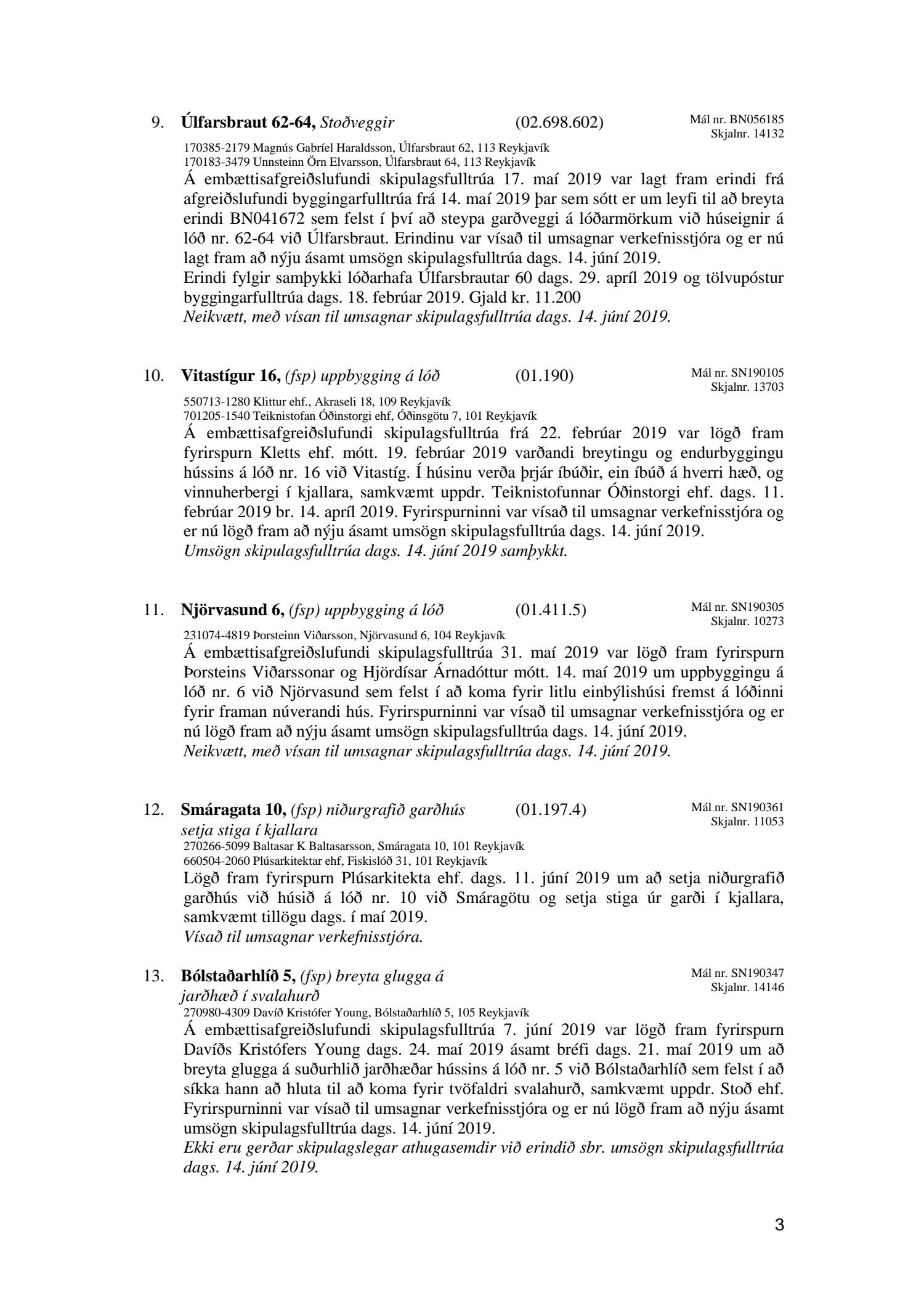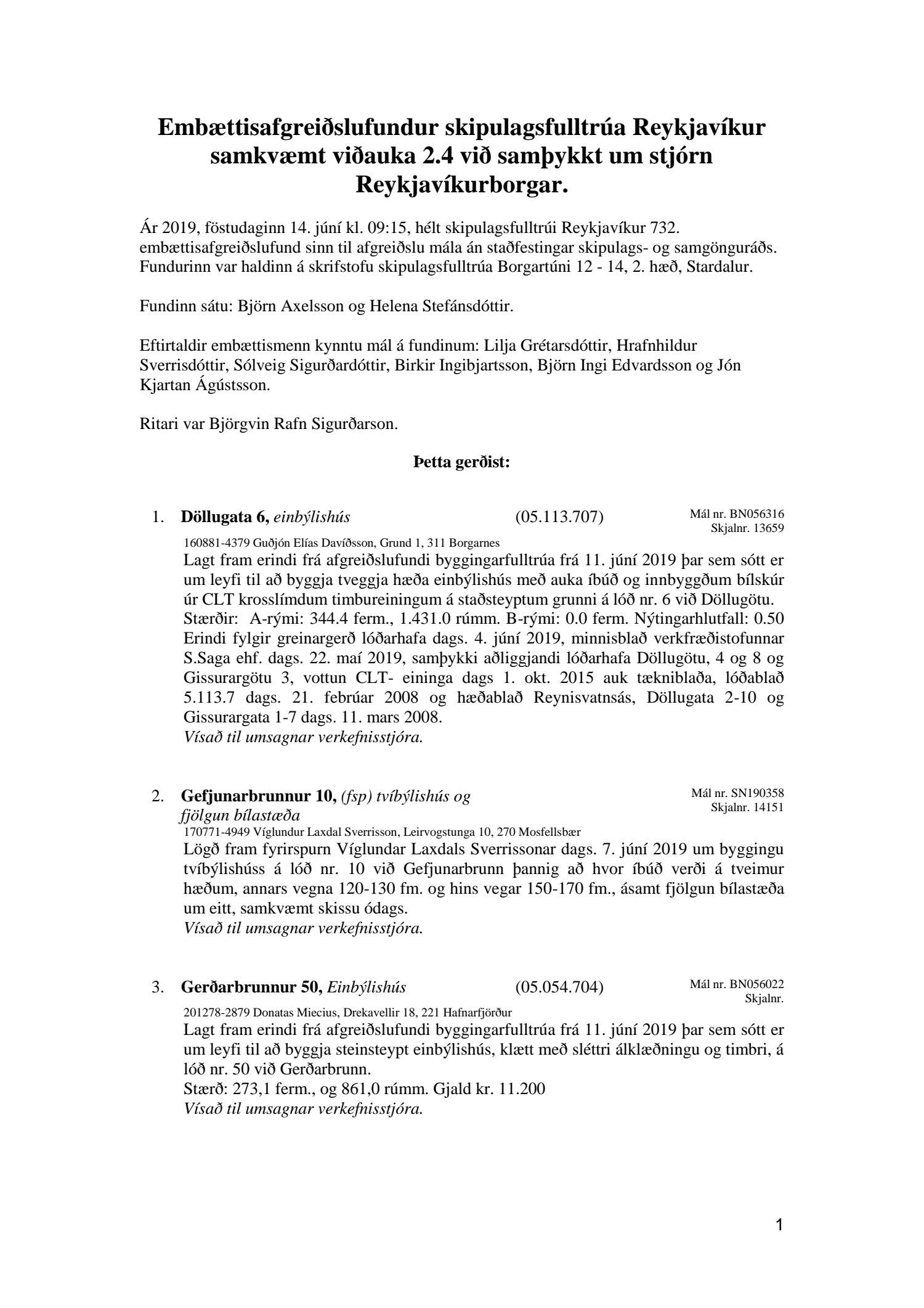 Afgreiðslufundur skipulagsfulltrúa 28. júní 2019
