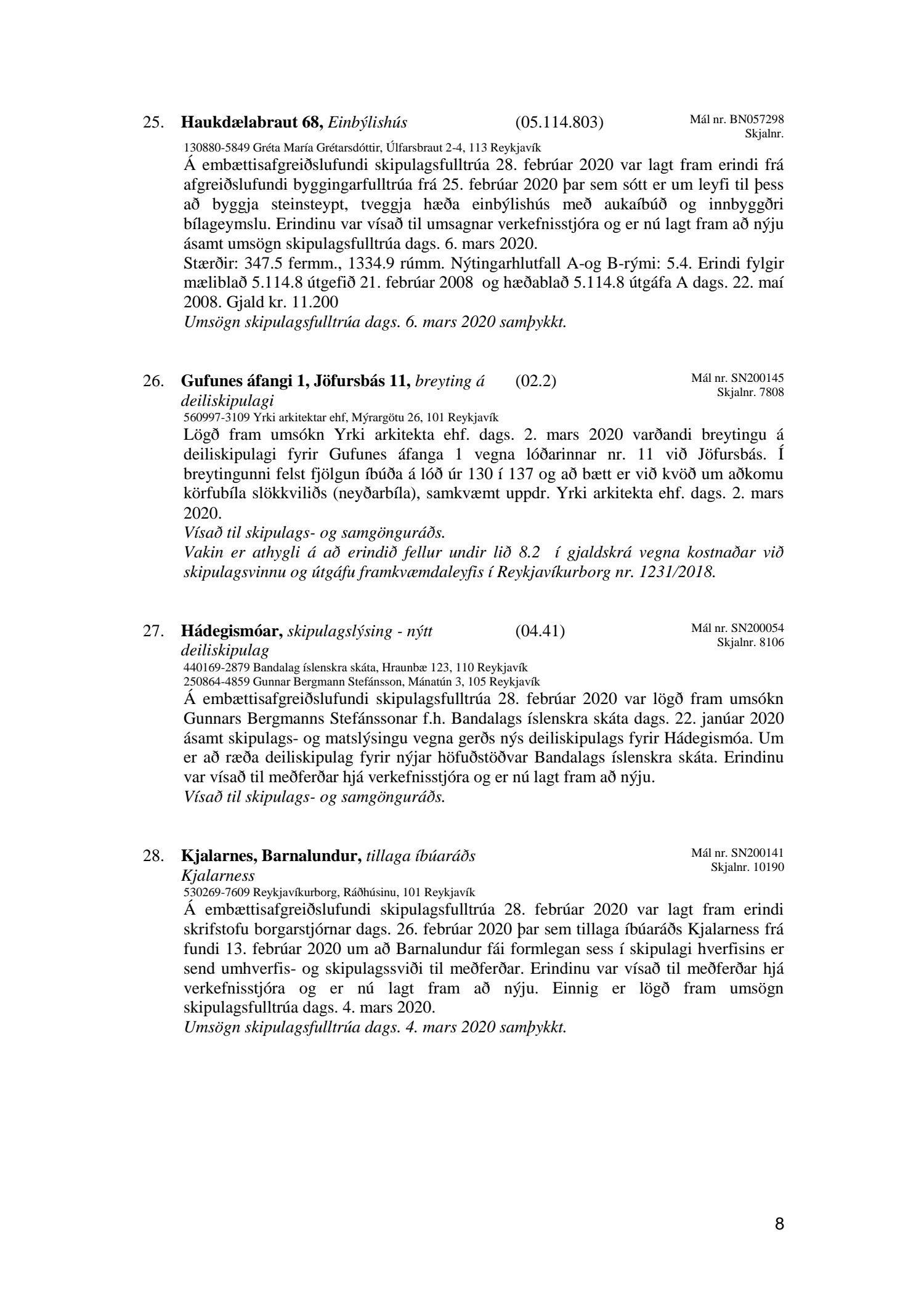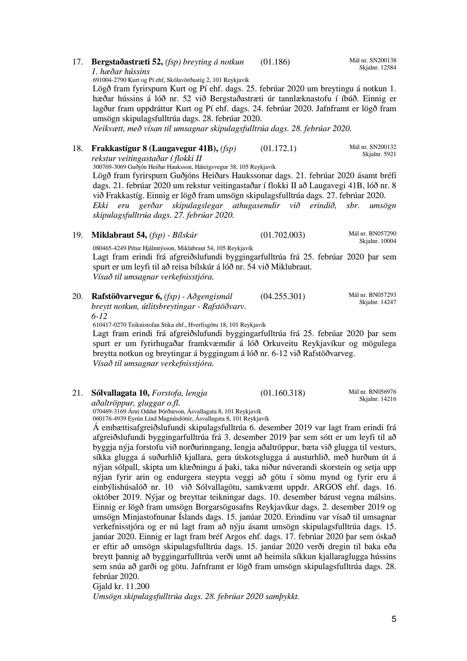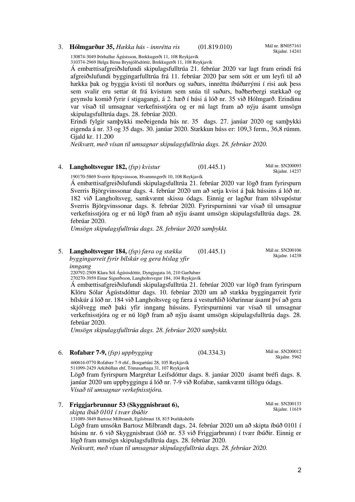 Afgreiðslufundur skipulagsfulltrúa Reykjavíkur 28. febrúar 2020