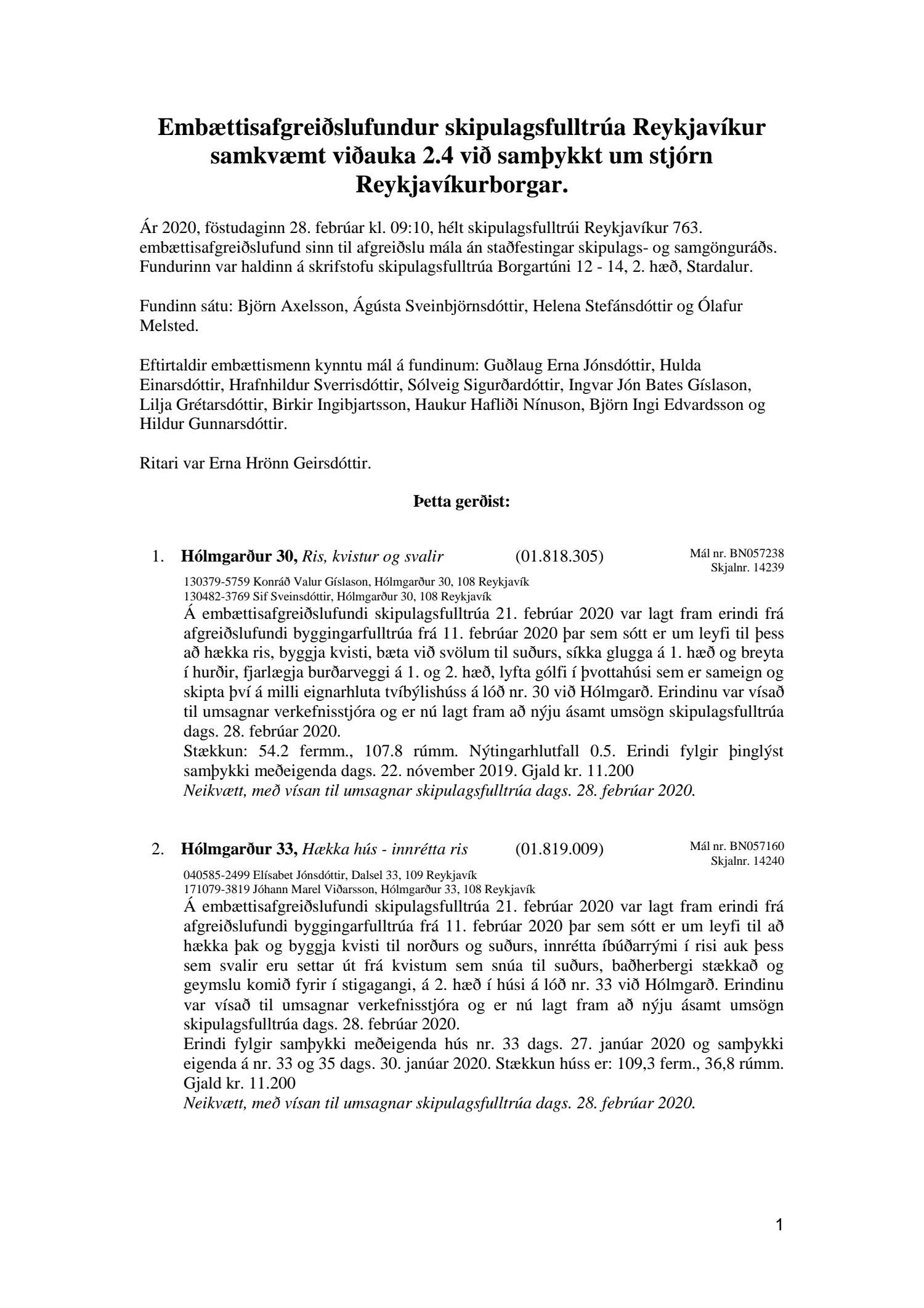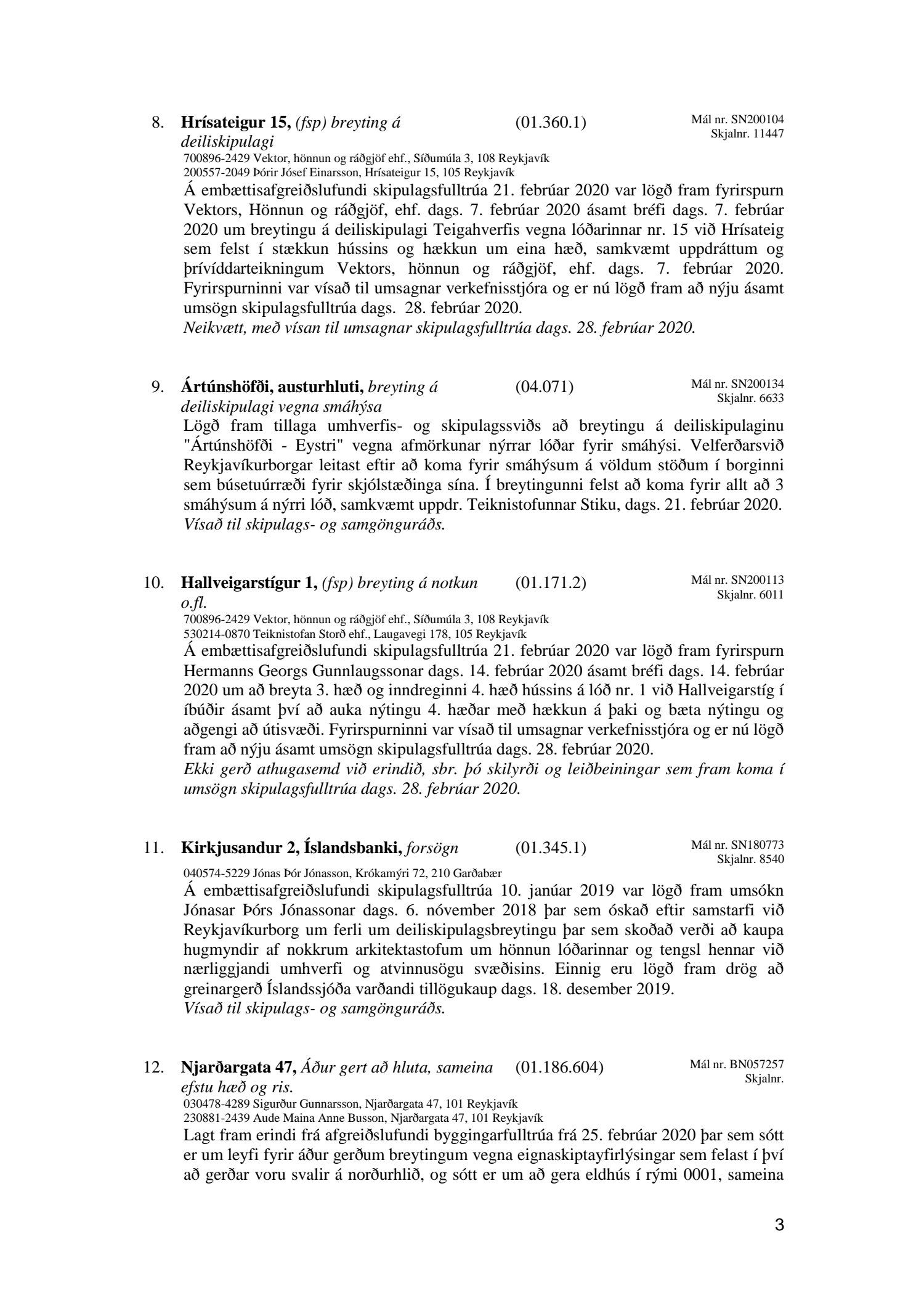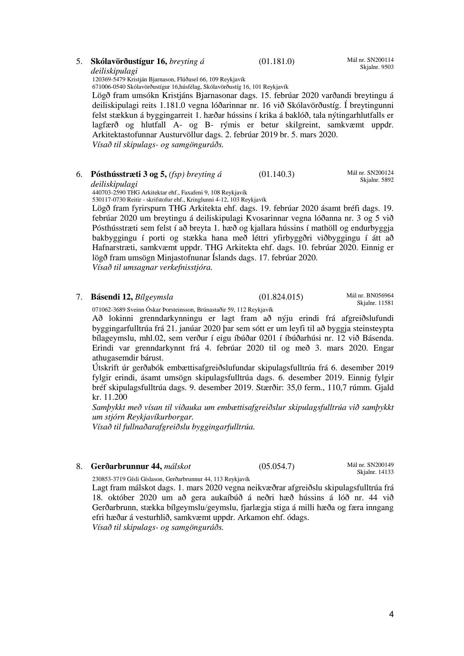 Afgreiðslufundur skipulagsfulltrúa Reykjavíkur 28. febrúar 2020