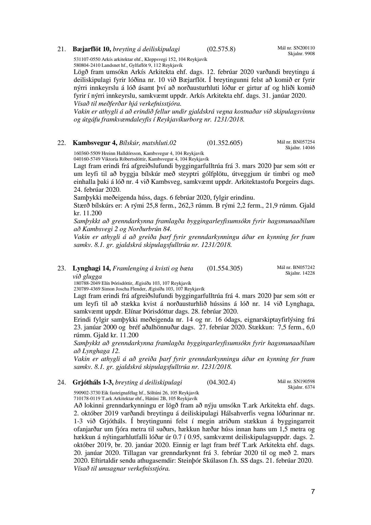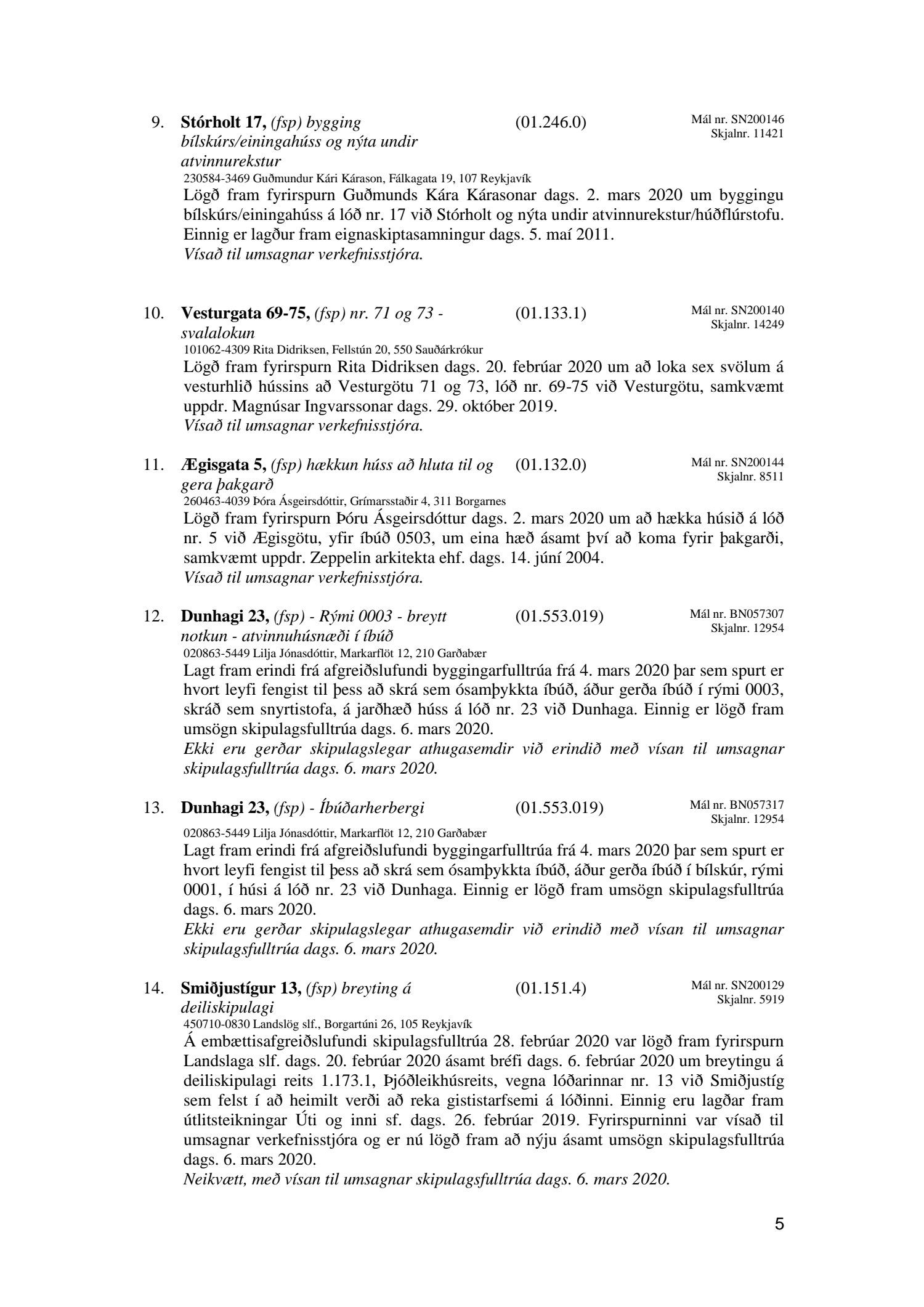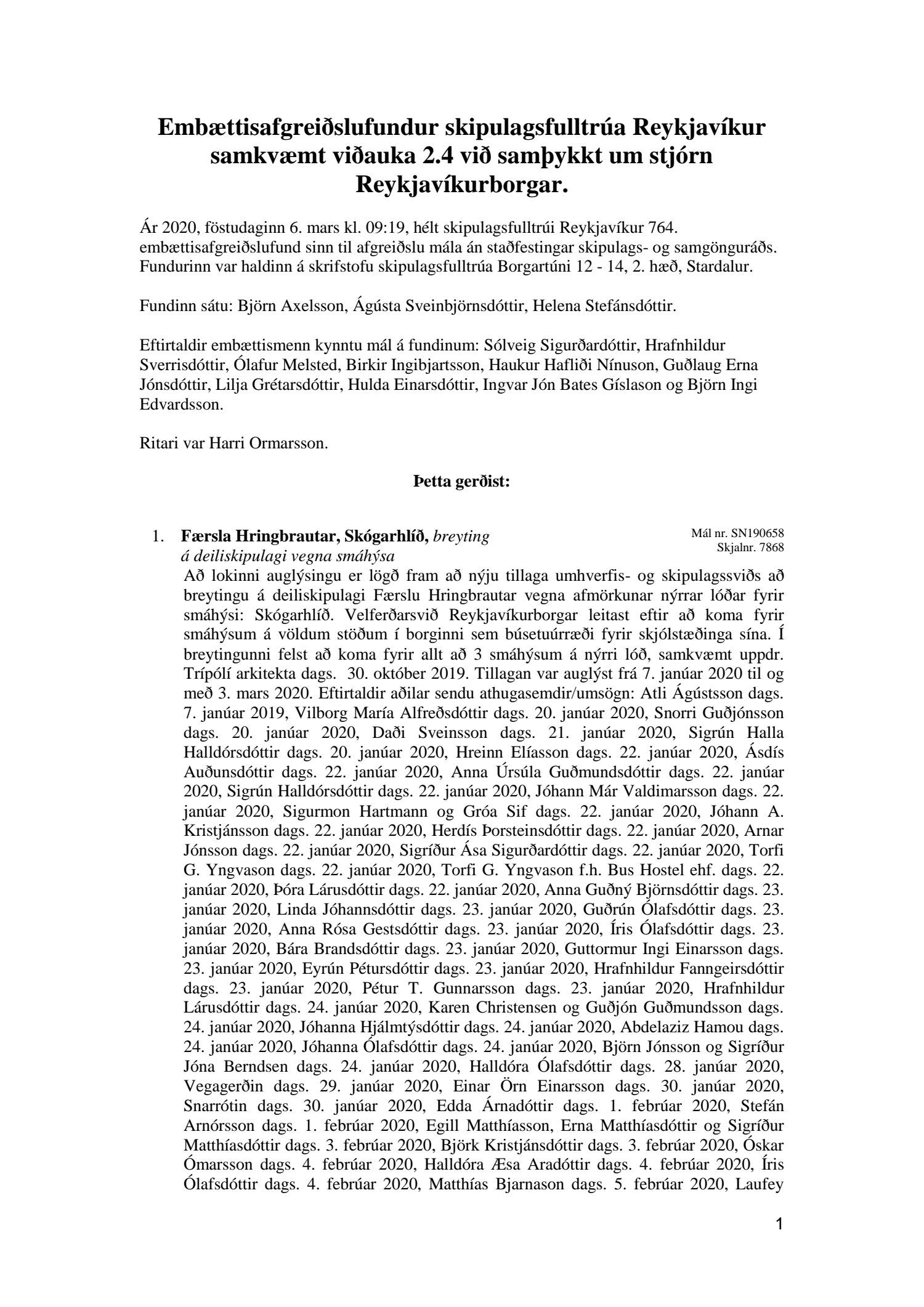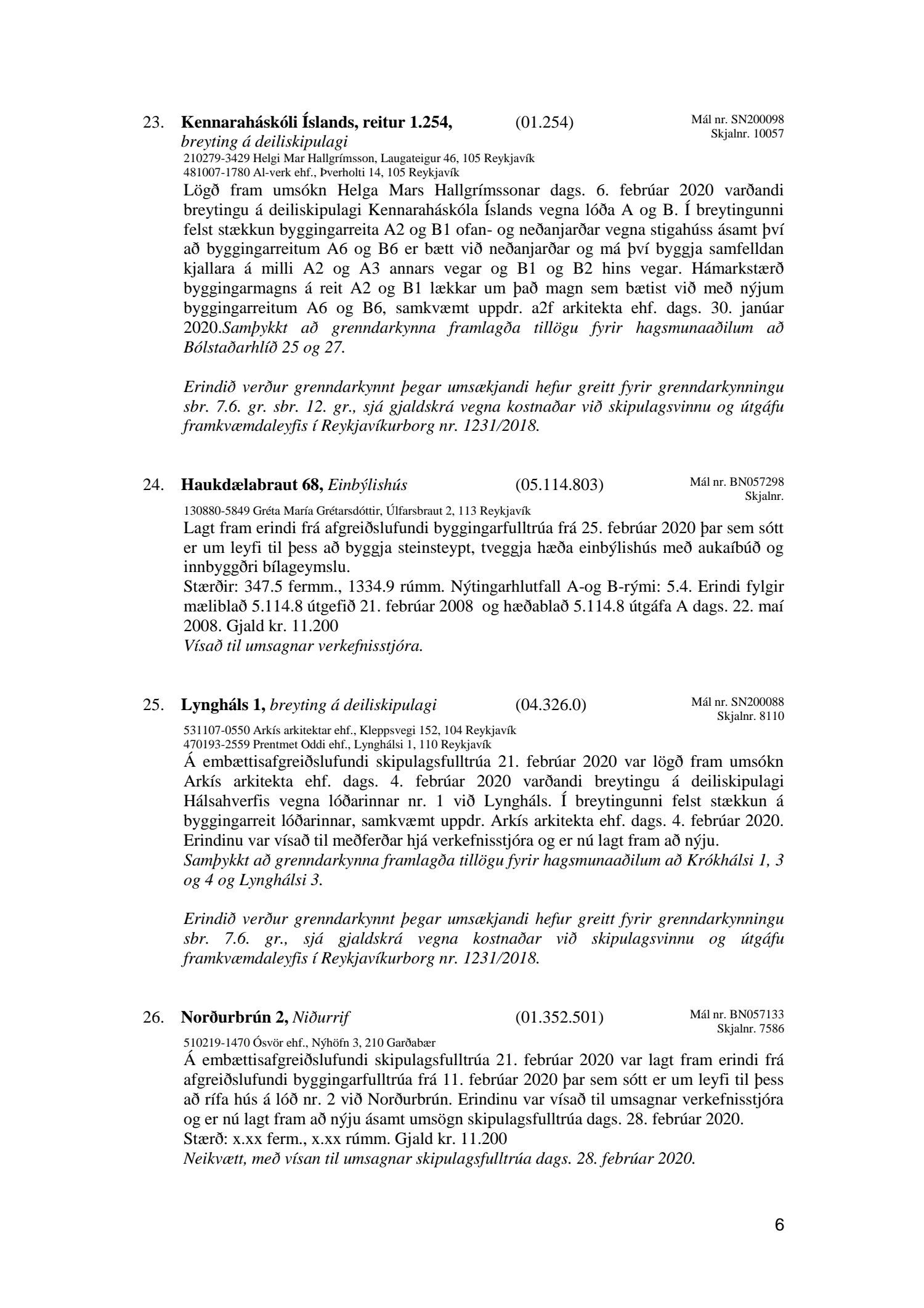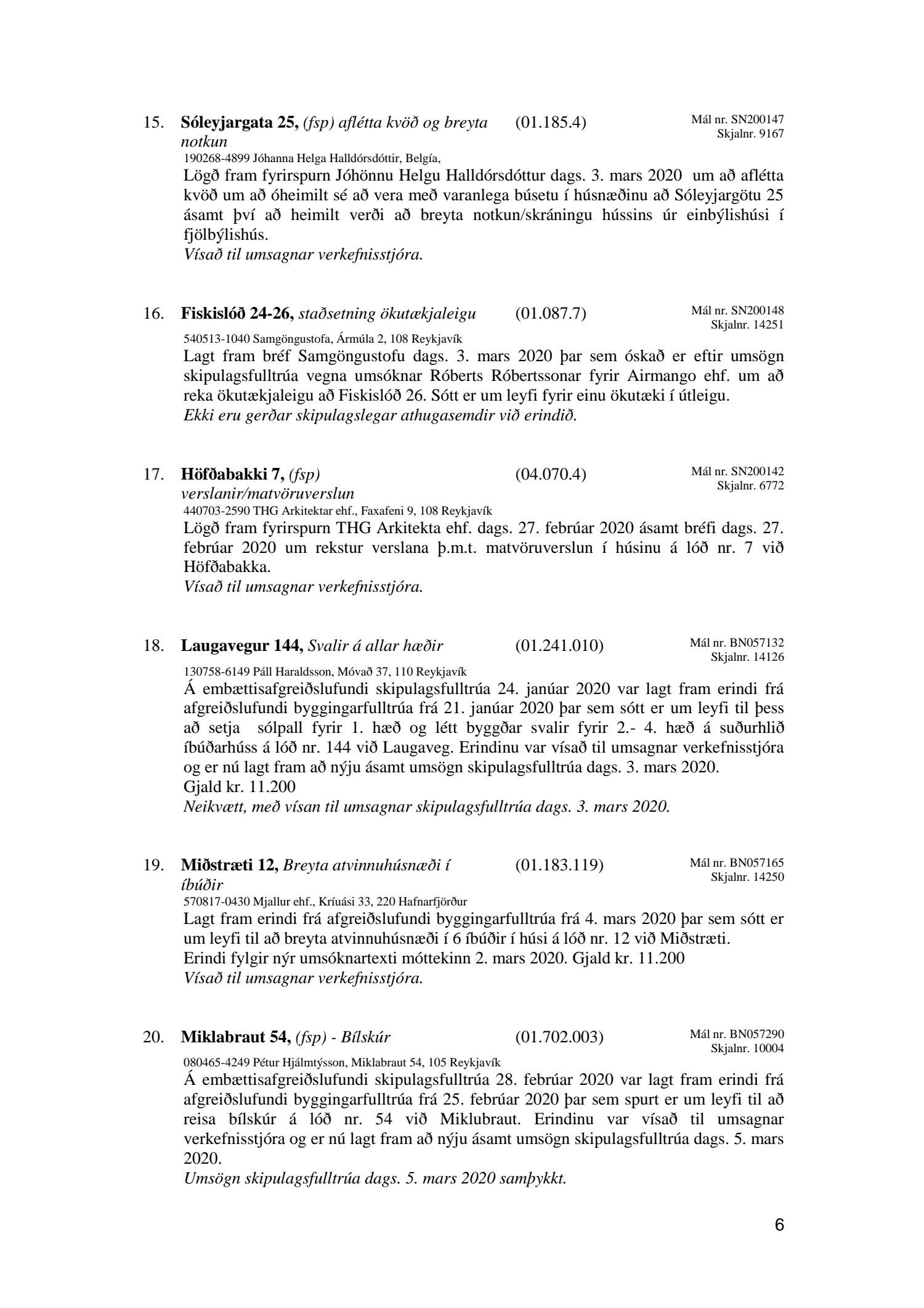 Afgreiðslufundur skipulagsfulltrúa Reykjavíkur 6. mars 2020
