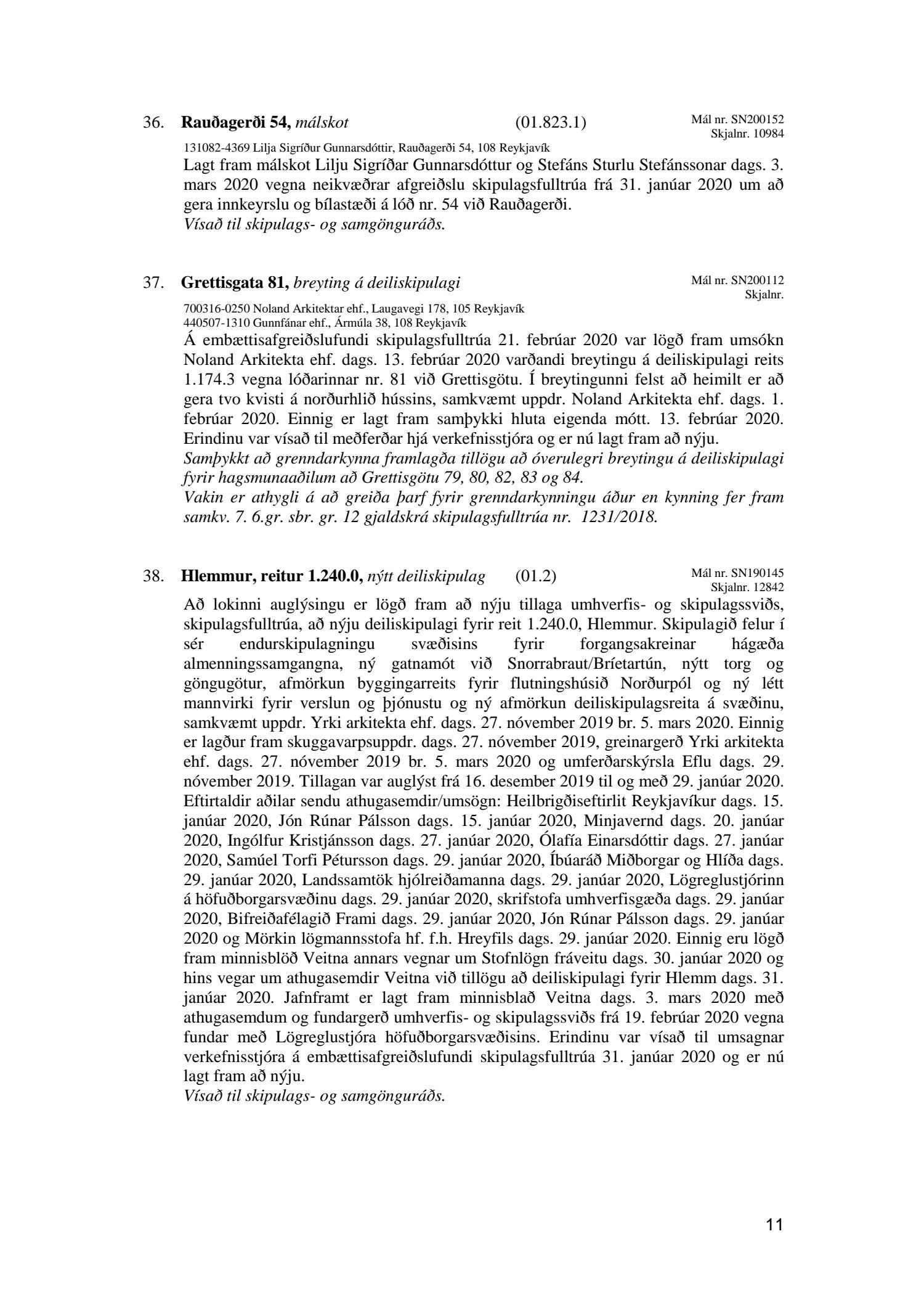 Umhverfis- og skipulagsráð nr. 38