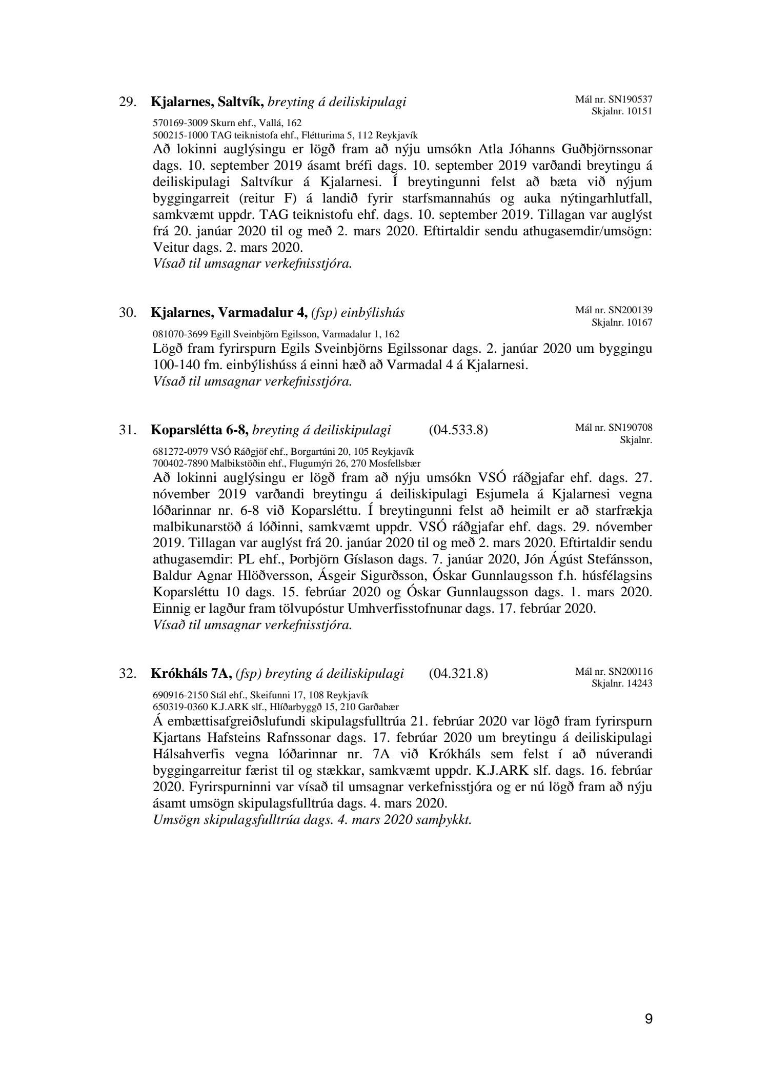 Umhverfis- og skipulagsráð nr. 31