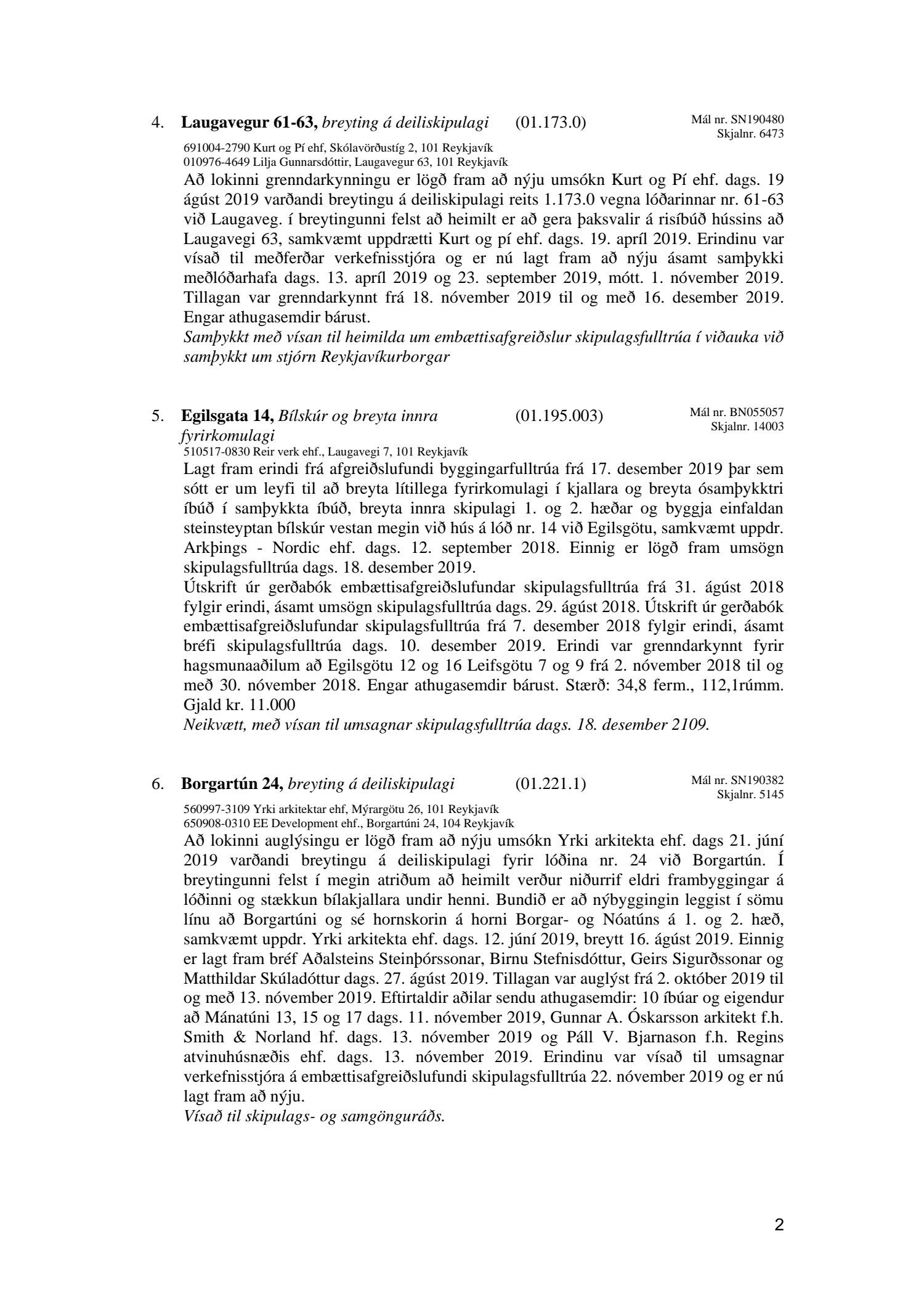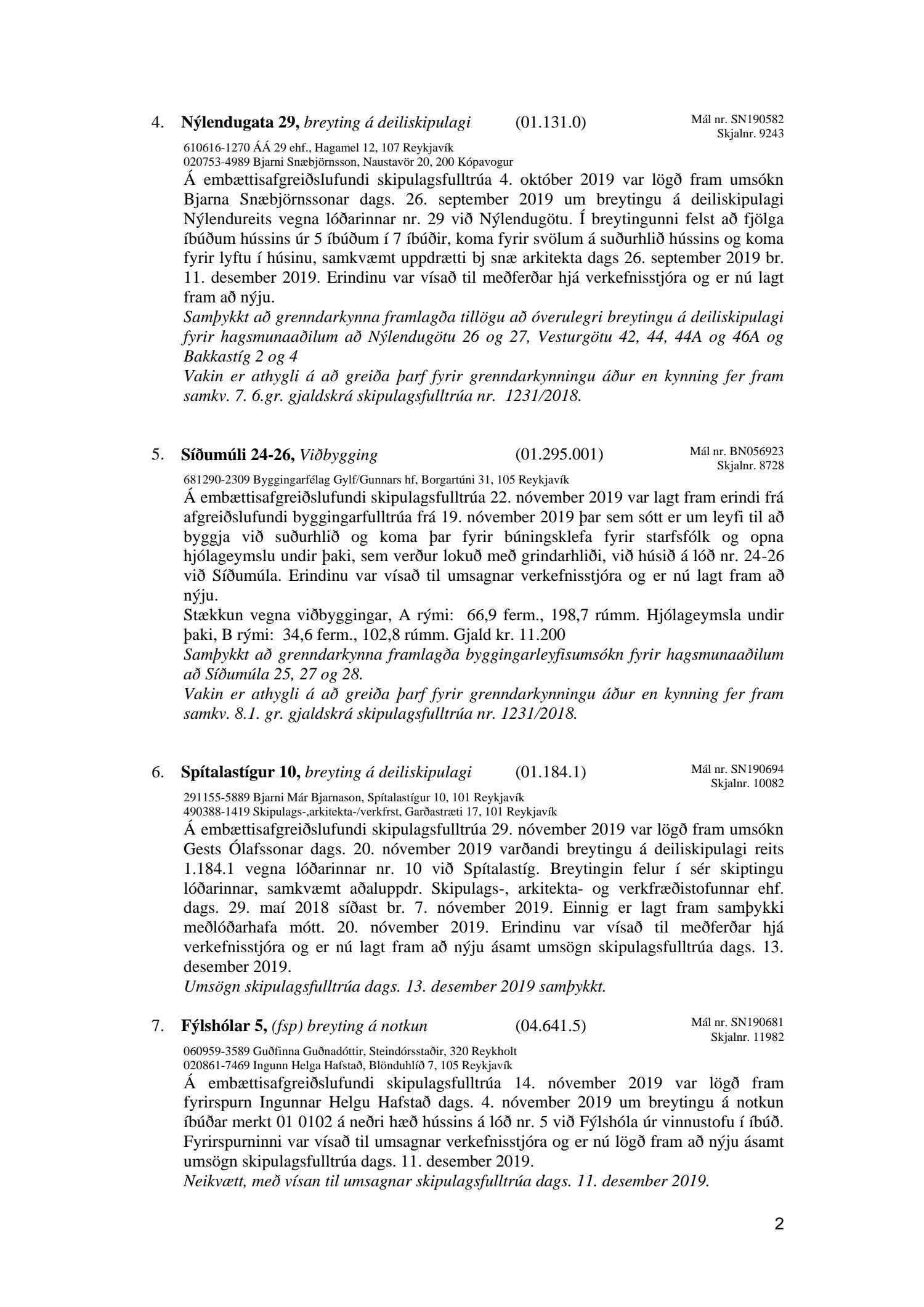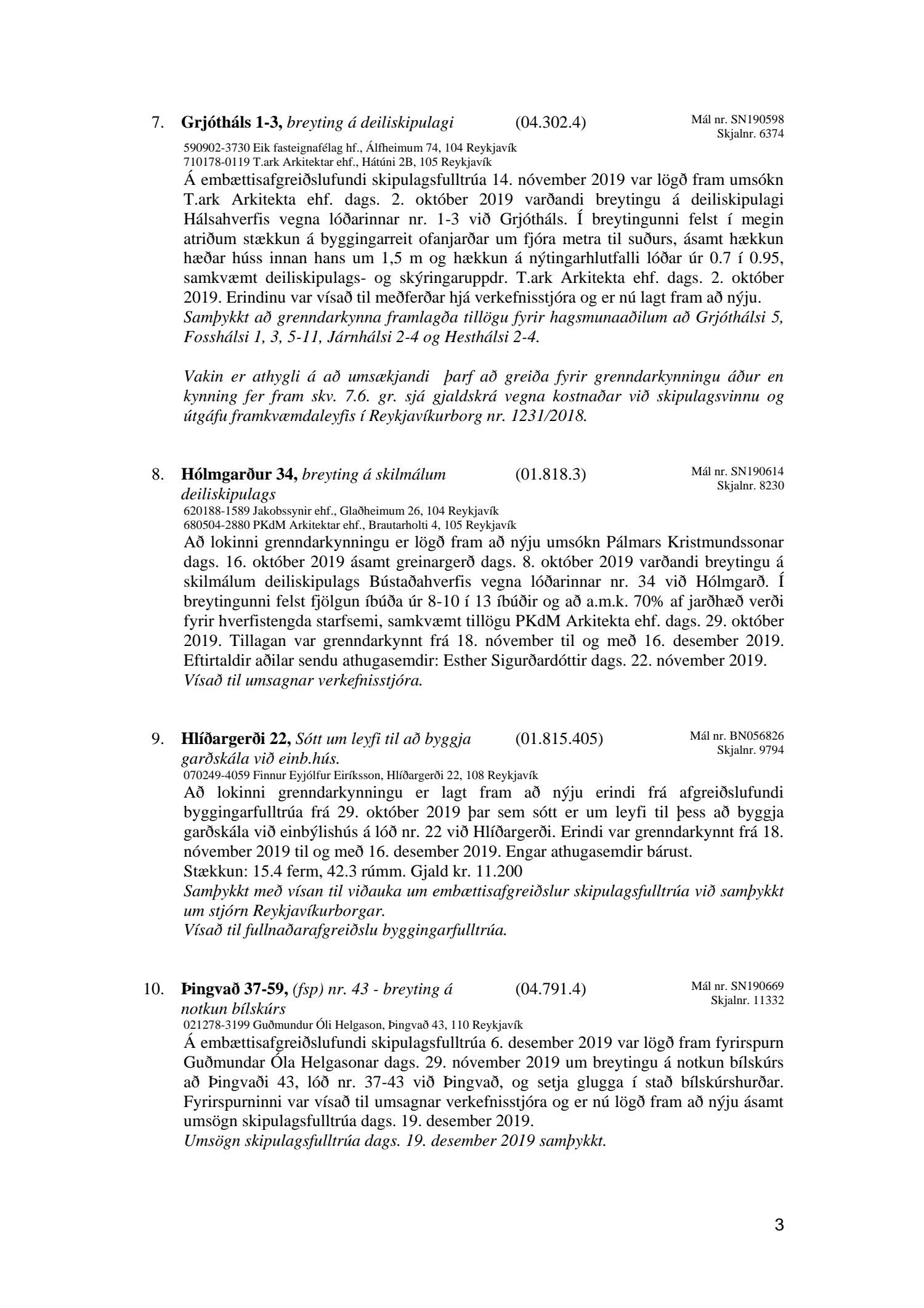 Afgreiðslufundir skipulagsfulltrúa Reykjavíkur, fundargerð