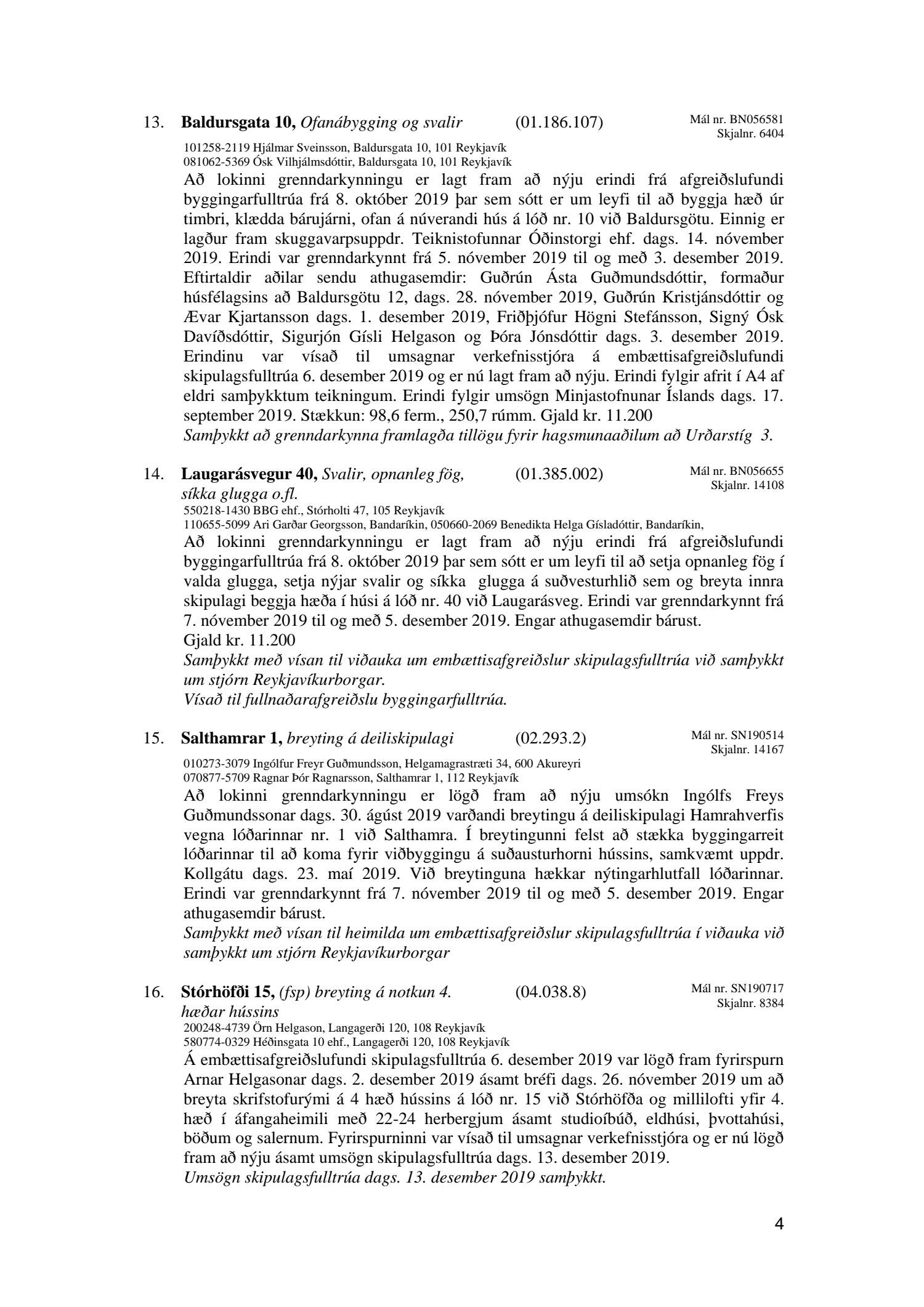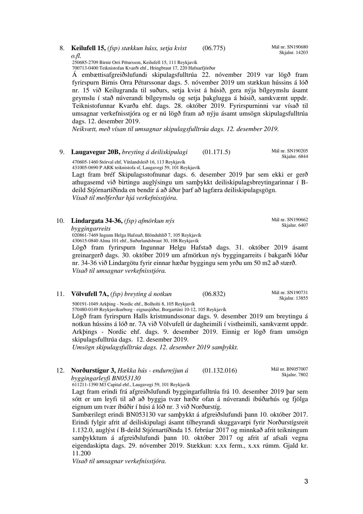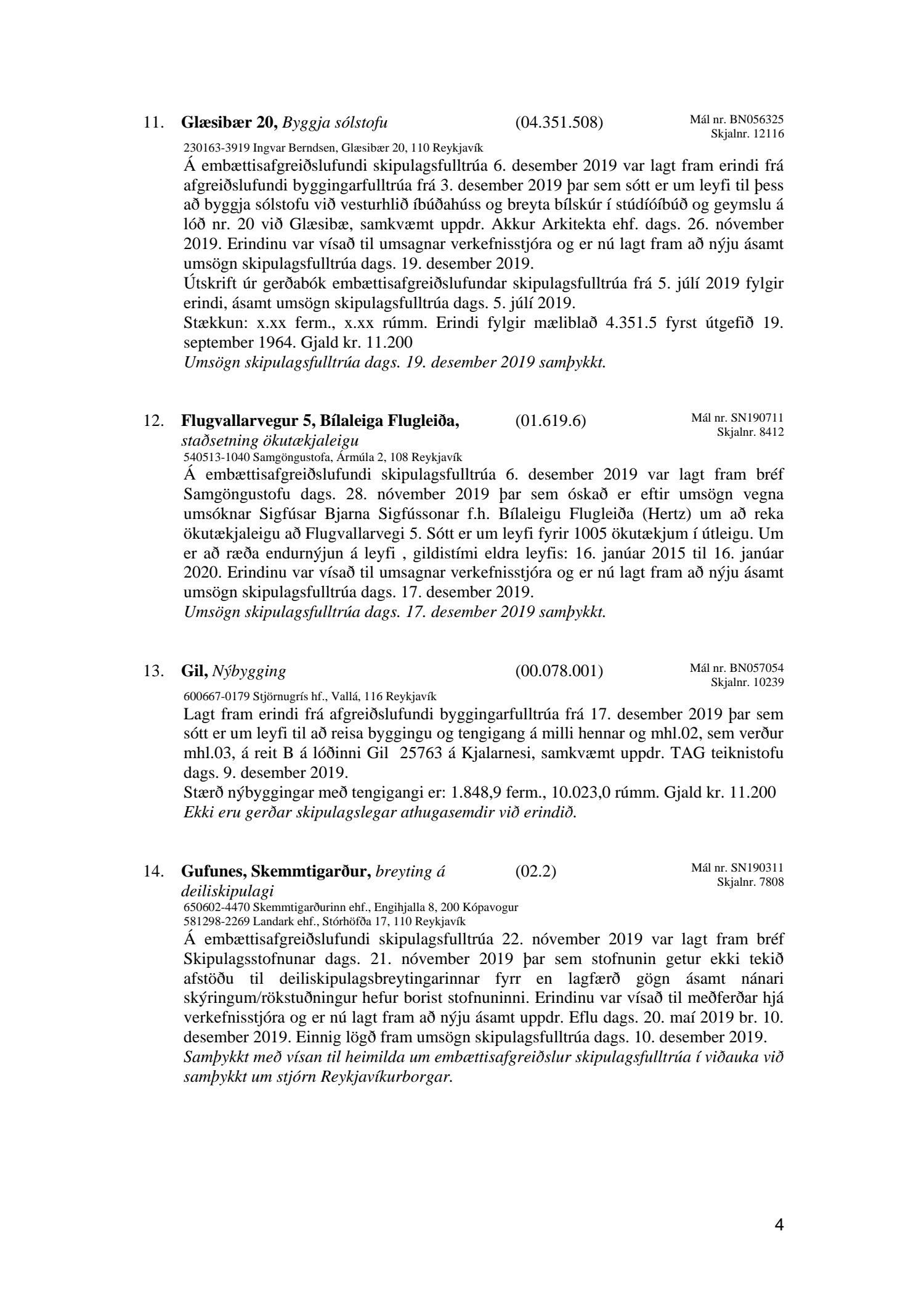 Afgreiðslufundir skipulagsfulltrúa Reykjavíkur, fundargerð