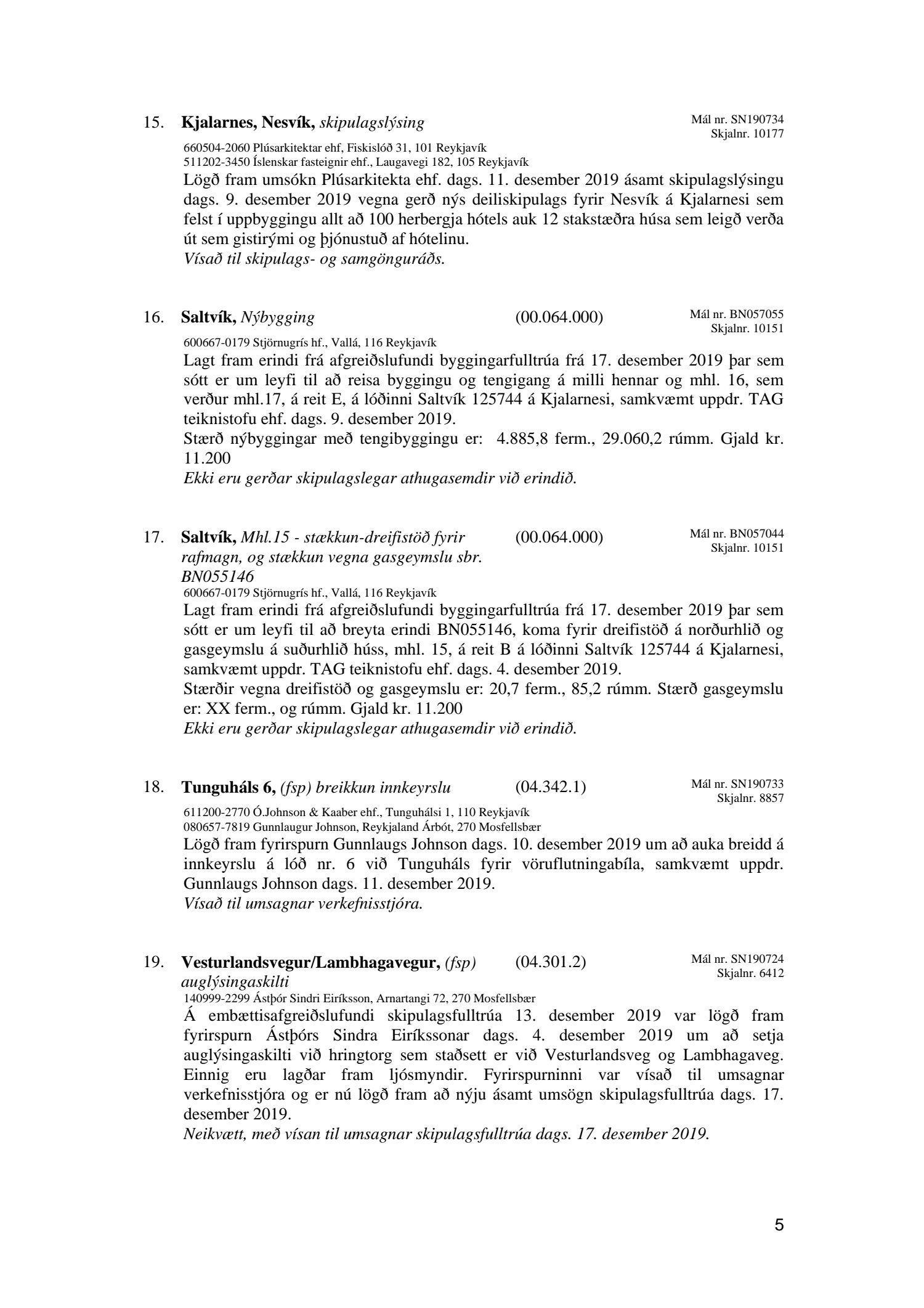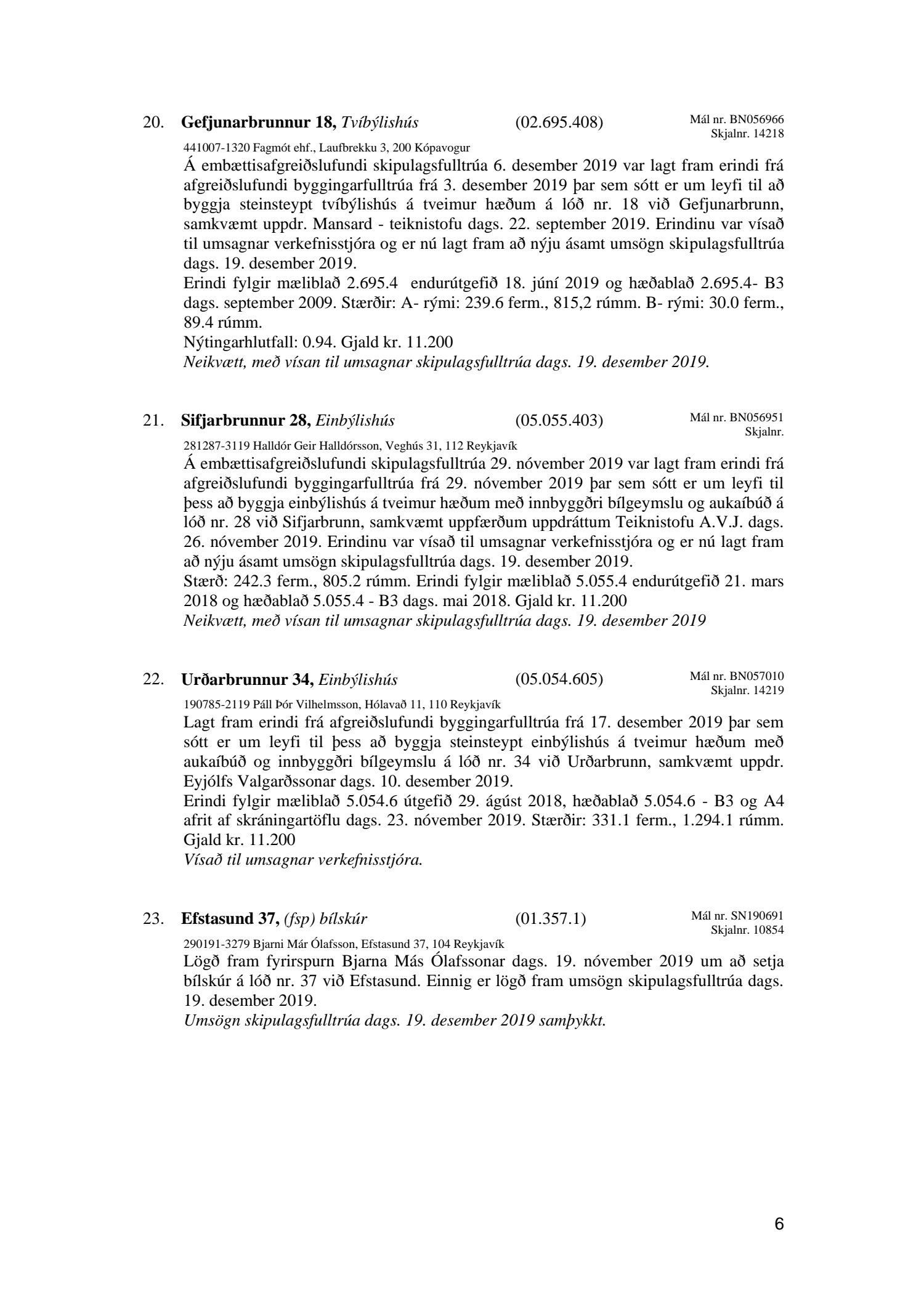 Lagðar fram fundargerðir embættisafgreiðslufunda skipulagsfulltrúa frá 13. desember 2019 og 19. desember 2019.
