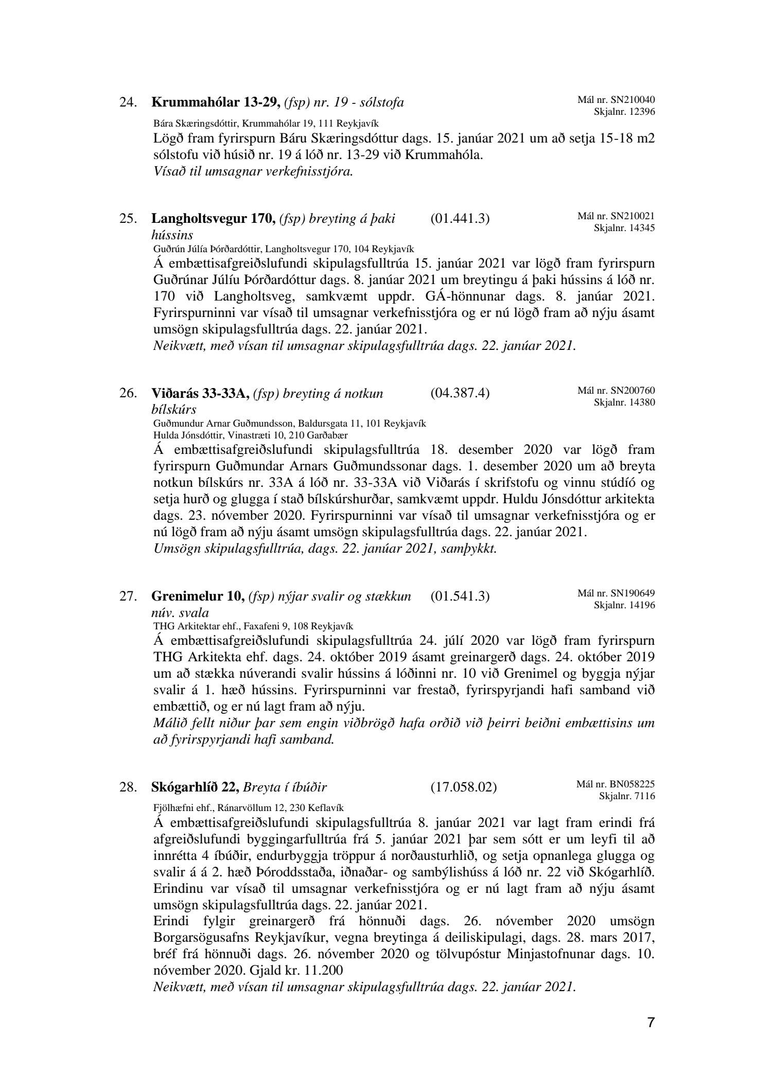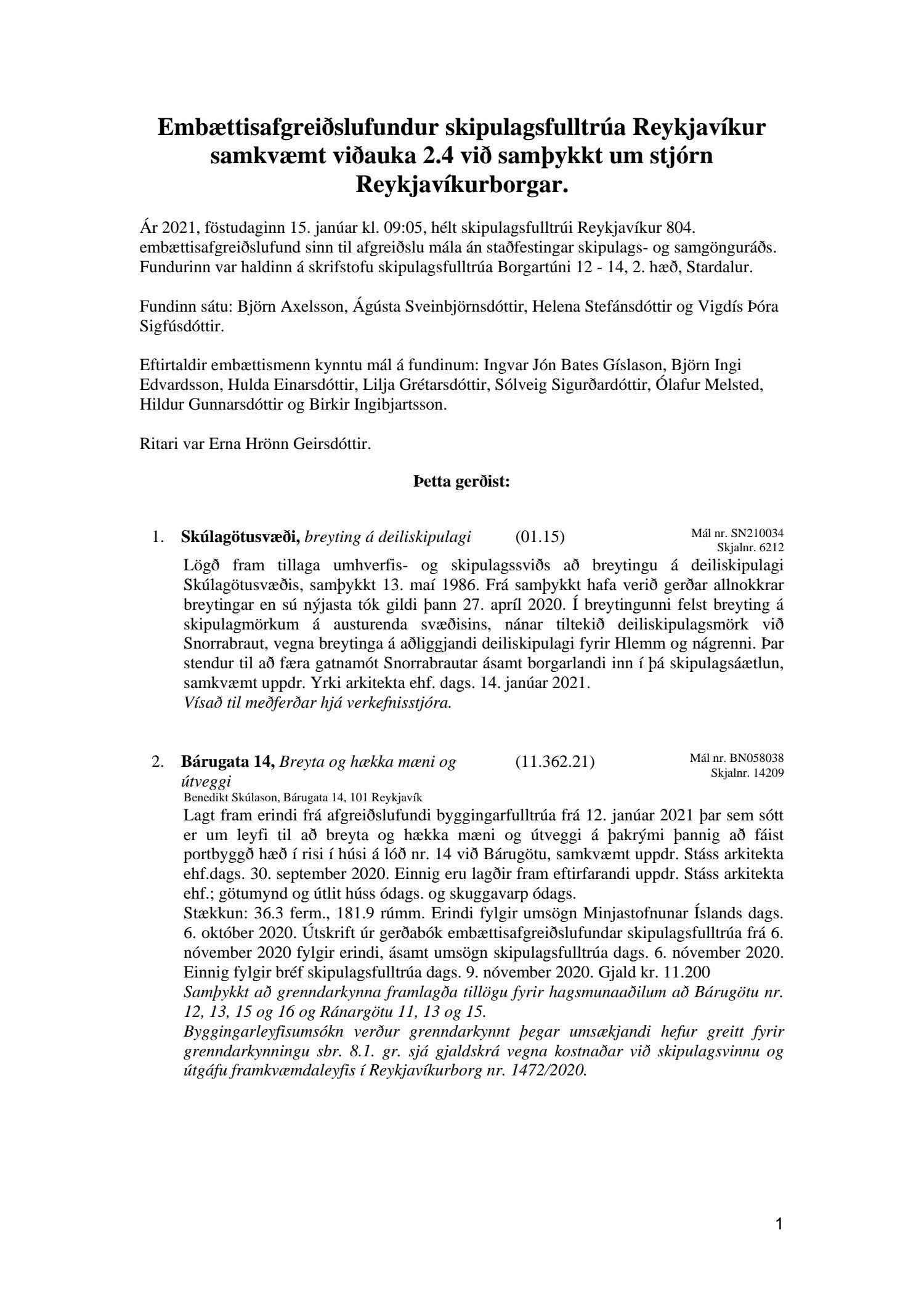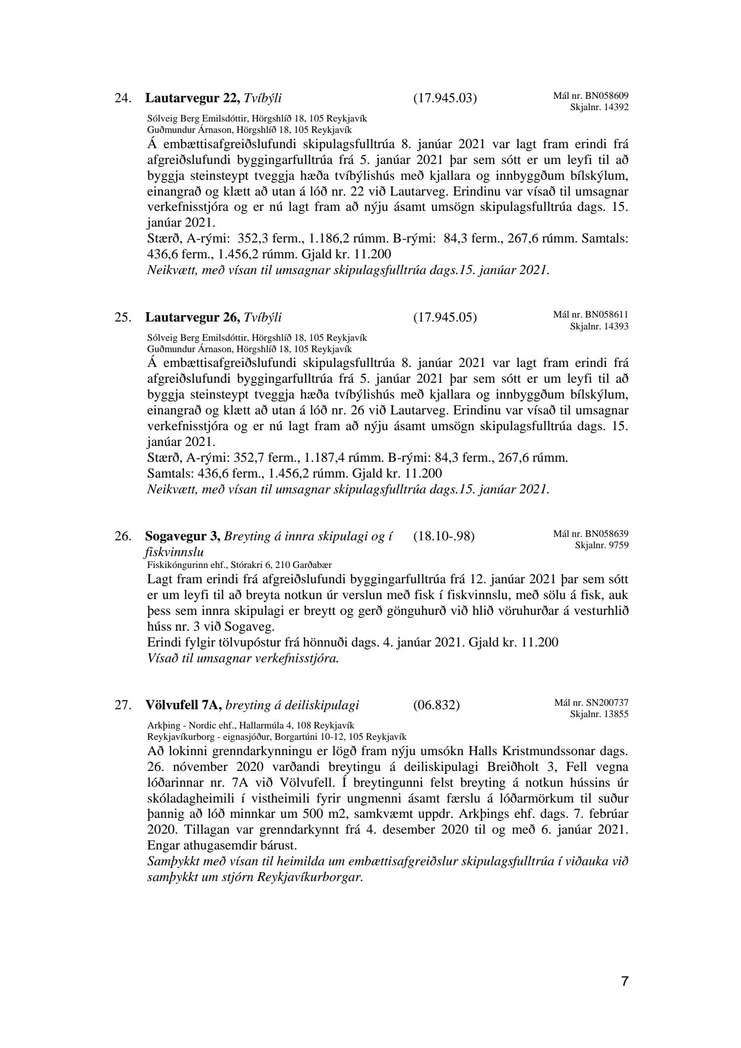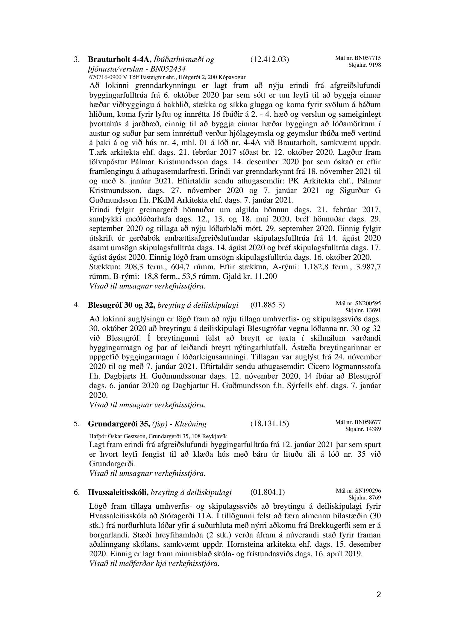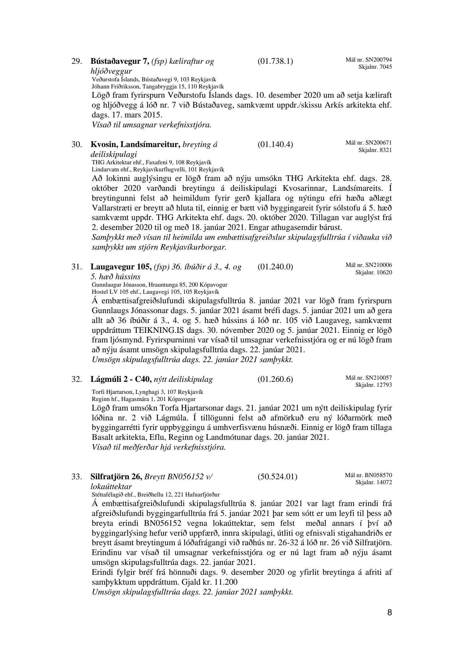 Afgreiðslufundir skipulagsfulltrúa Reykjavíkur, fundargerð