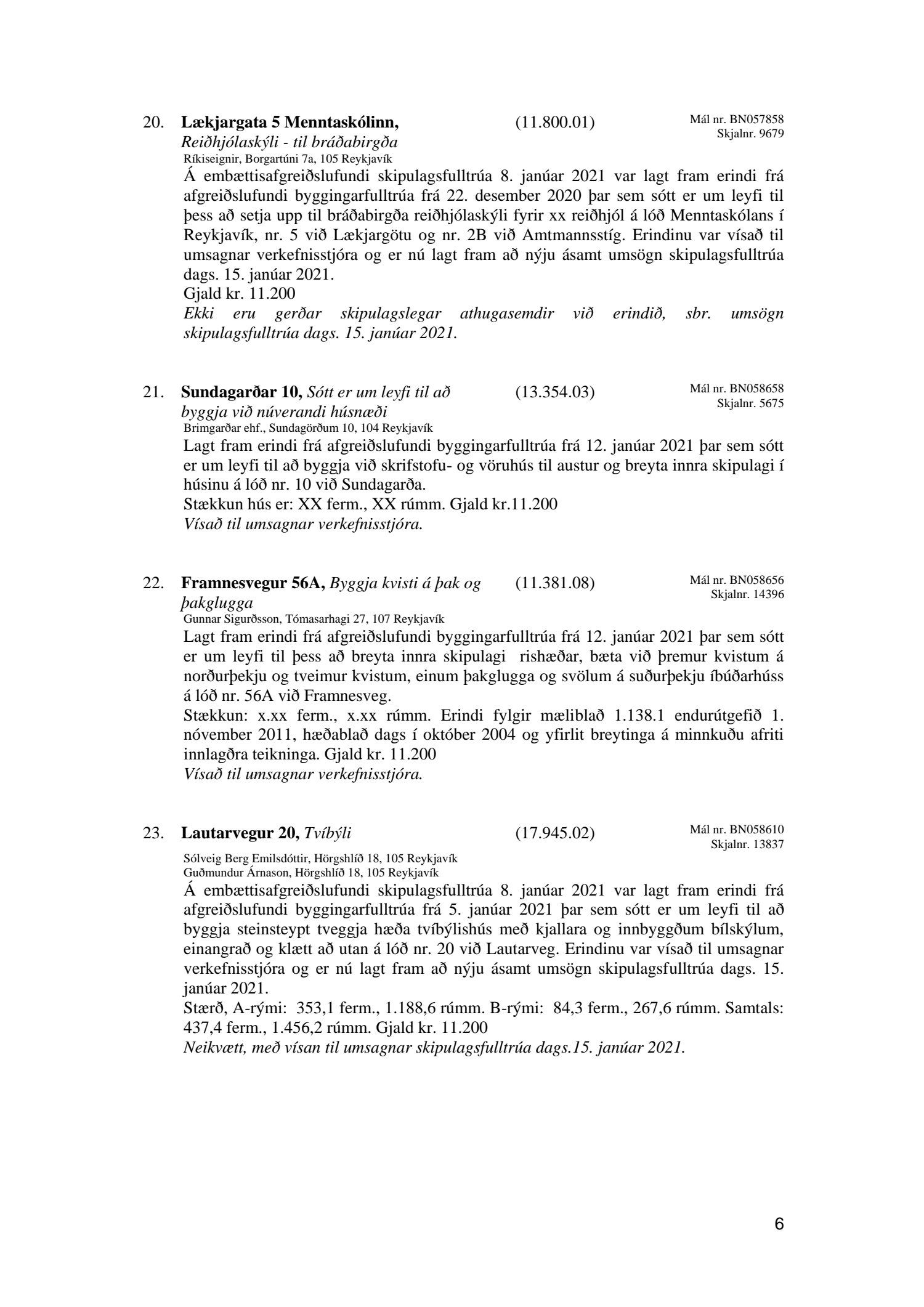 Umhverfis- og skipulagsráð nr. 20
