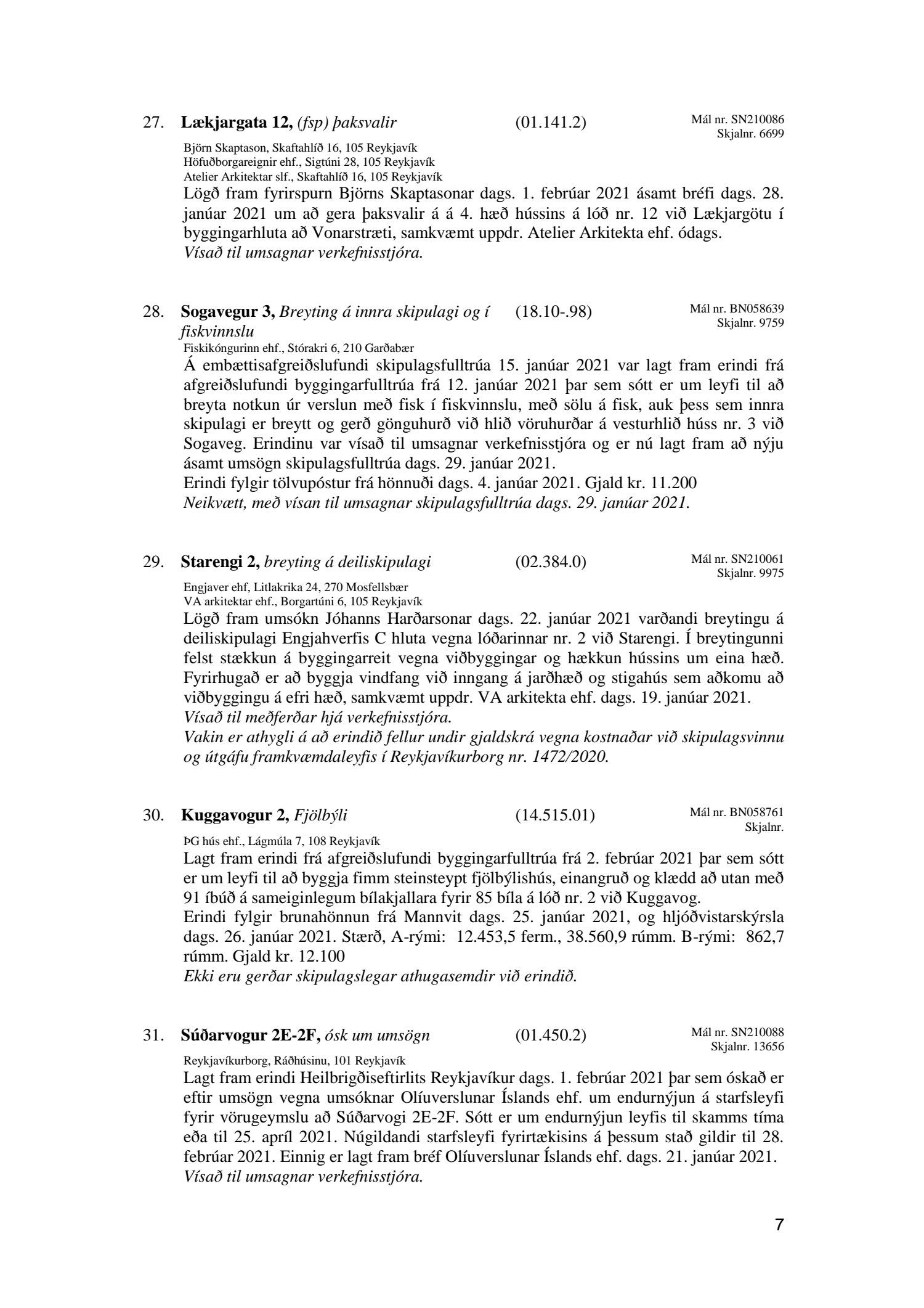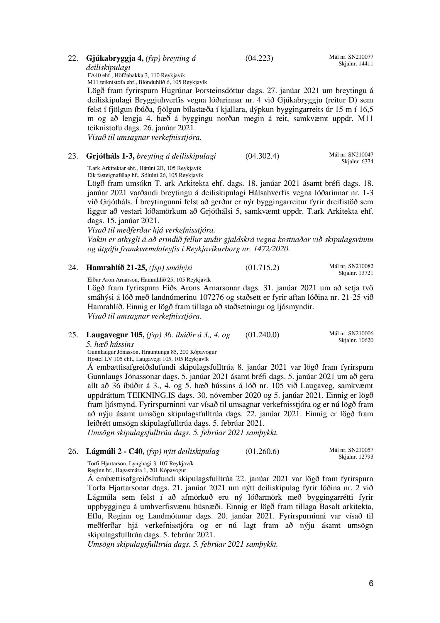 Afgreiðslufundir skipulagsfulltrúa Reykjavíkur, fundargerð