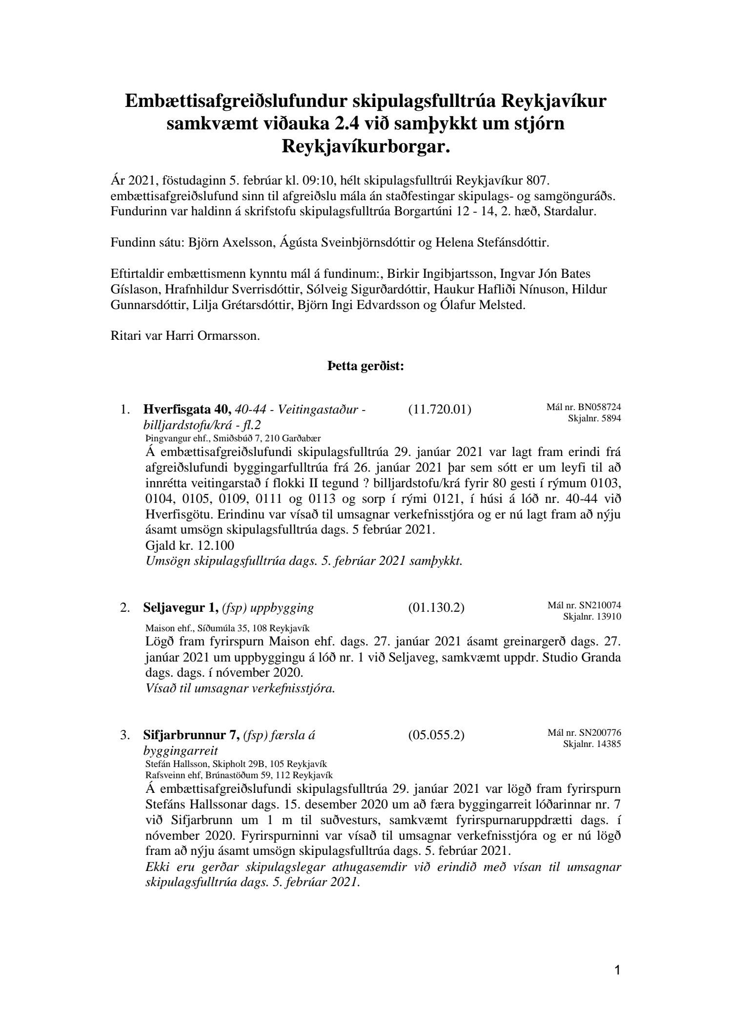 Fundargerð skipulagsfulltrúa nr. 807