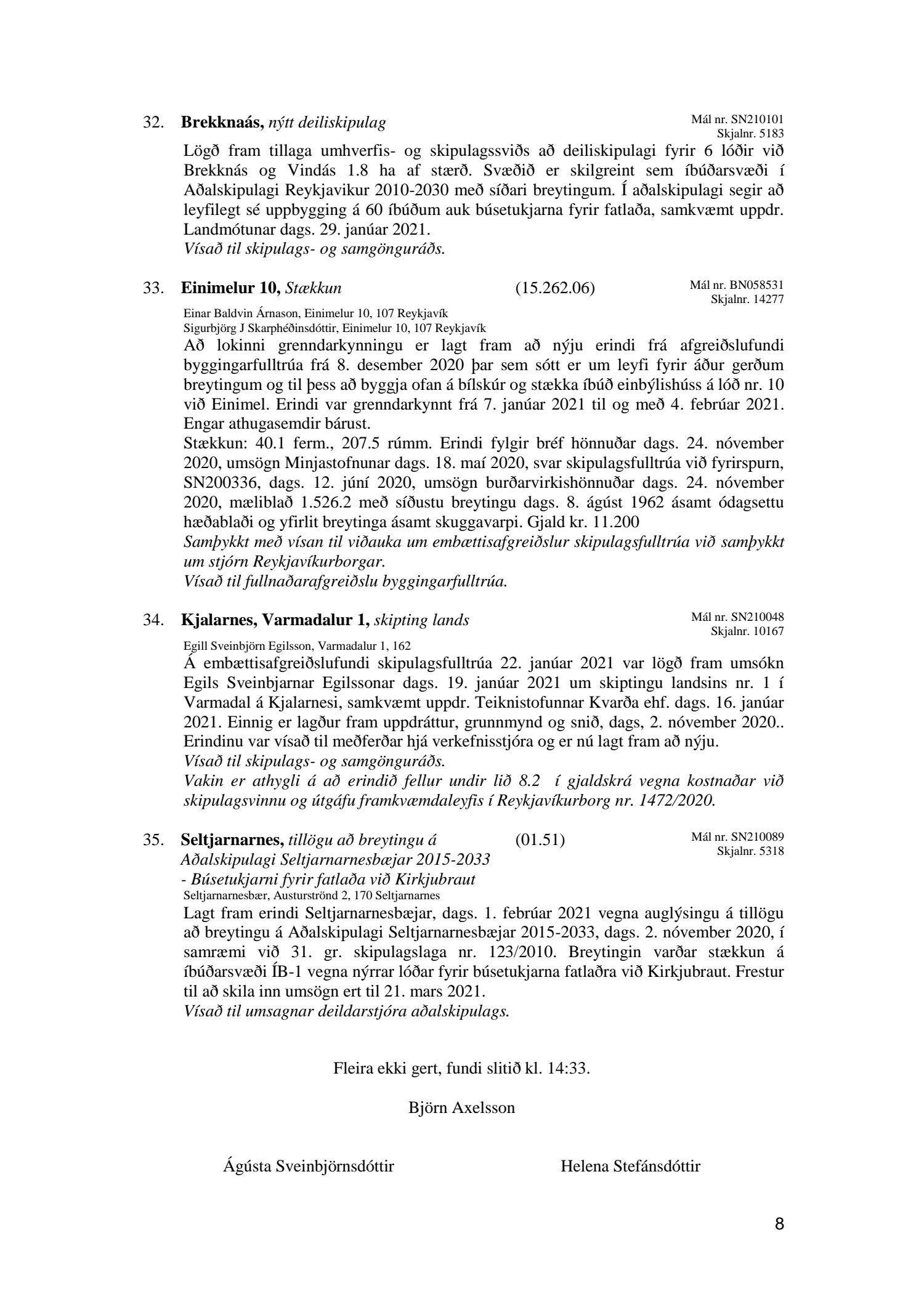 Umhverfis- og skipulagsráð nr. 33