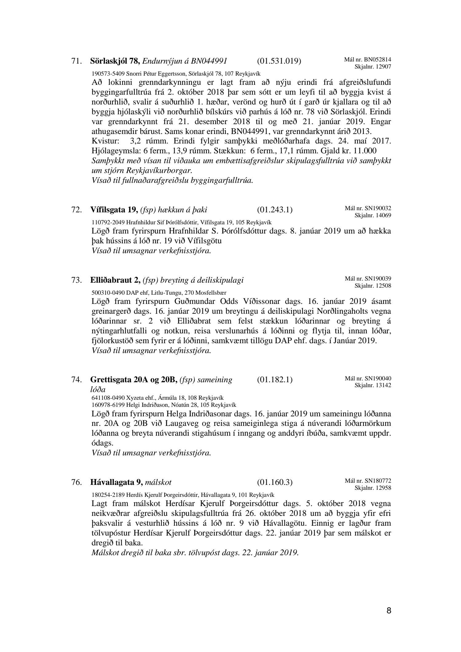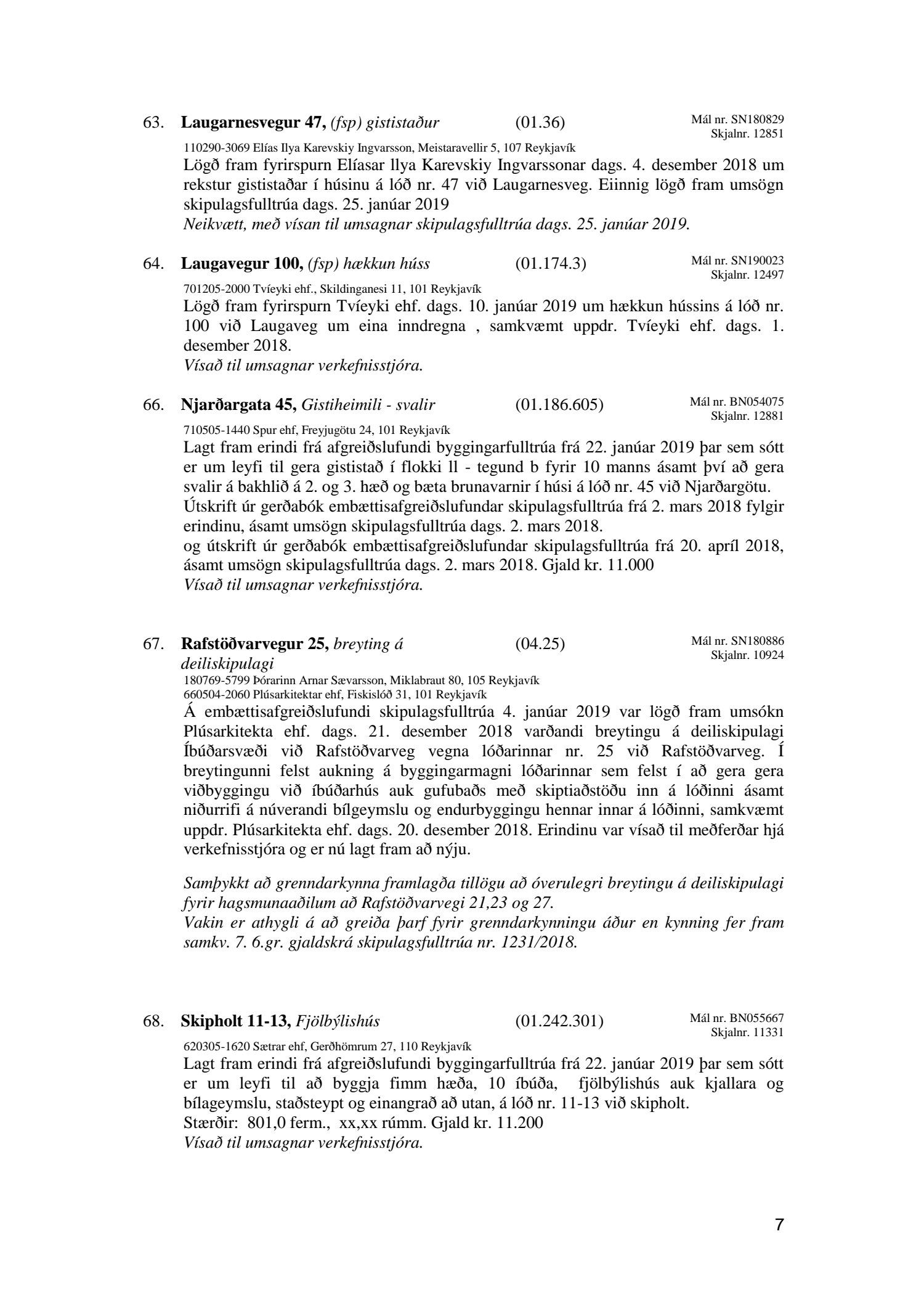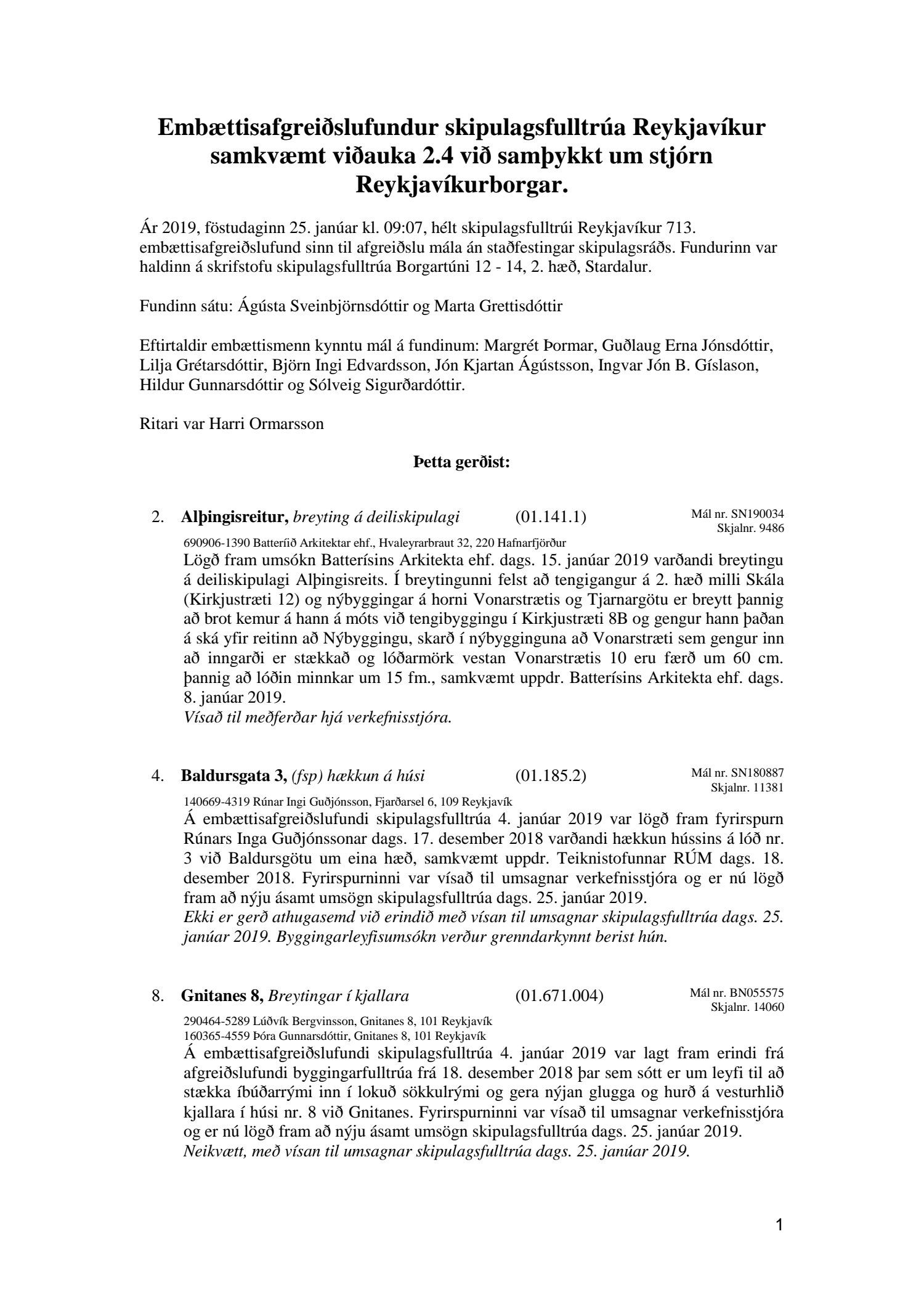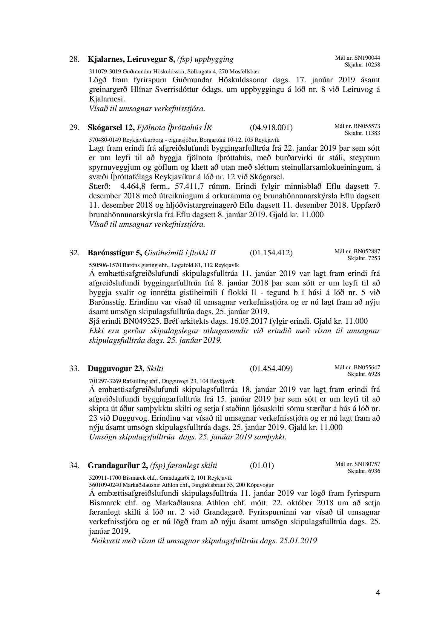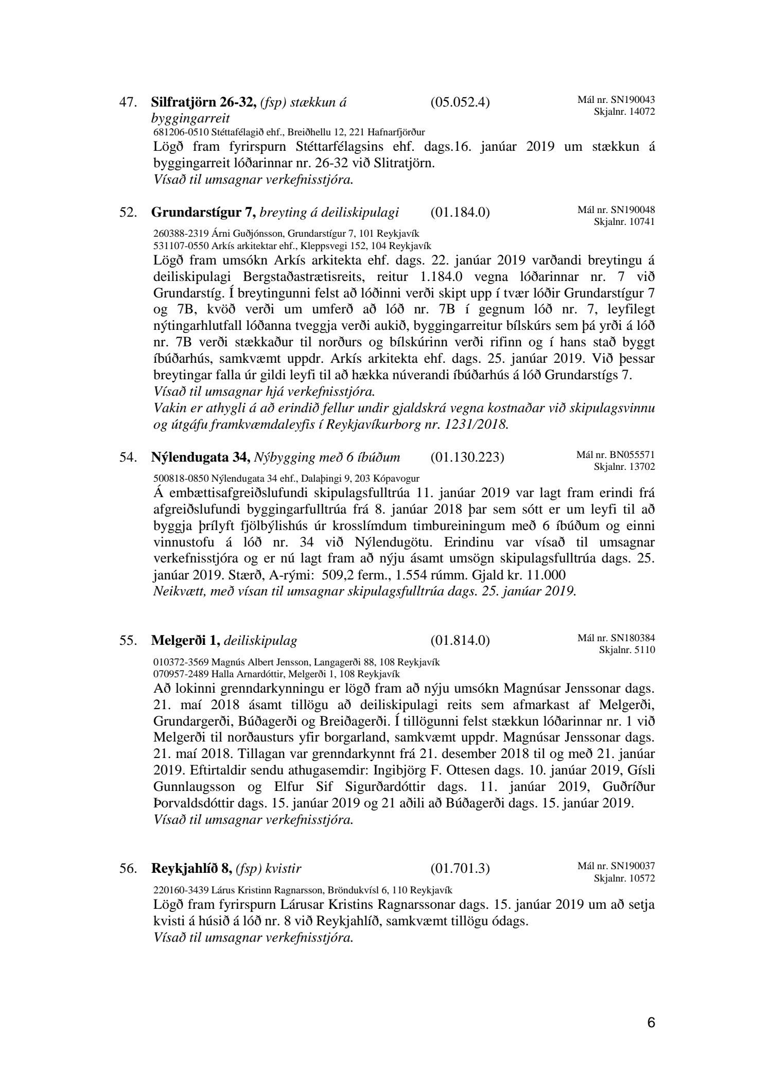 Fundagerð skipulagsfulltrúa 25. janúar 2019