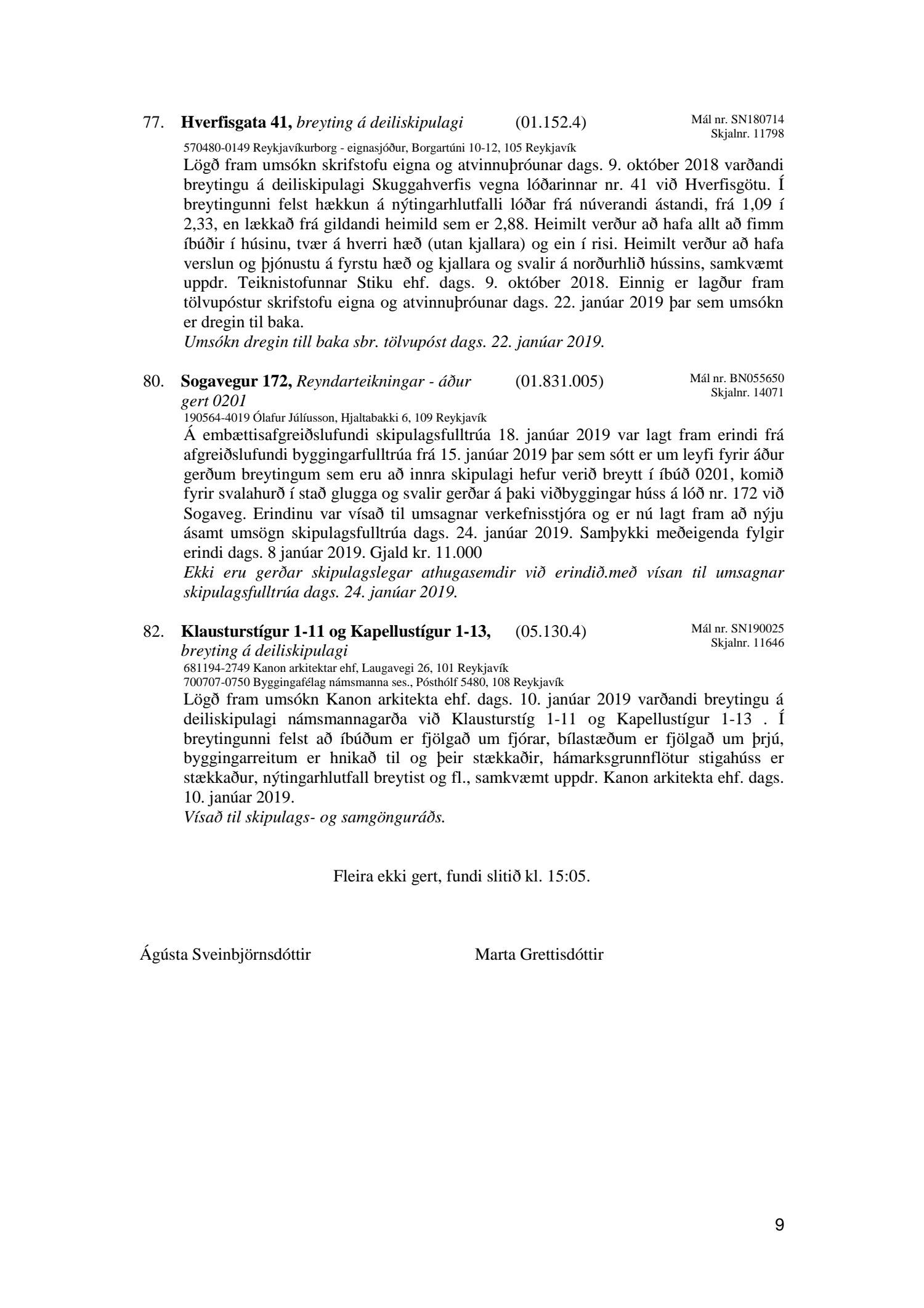 Afgreiðslufundir skipulagsfulltrúa Reykjavíkur, fundargerð