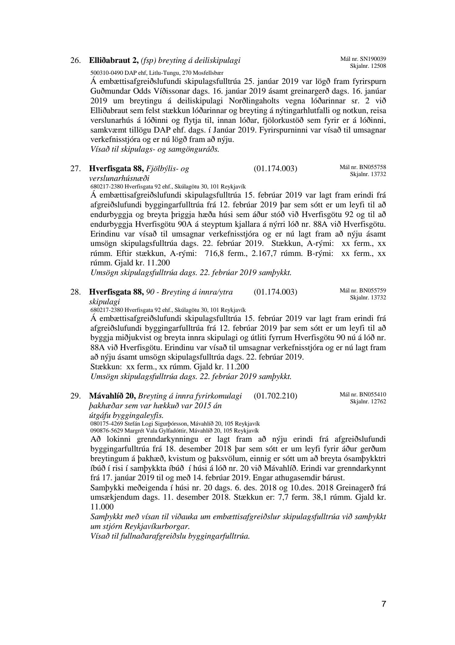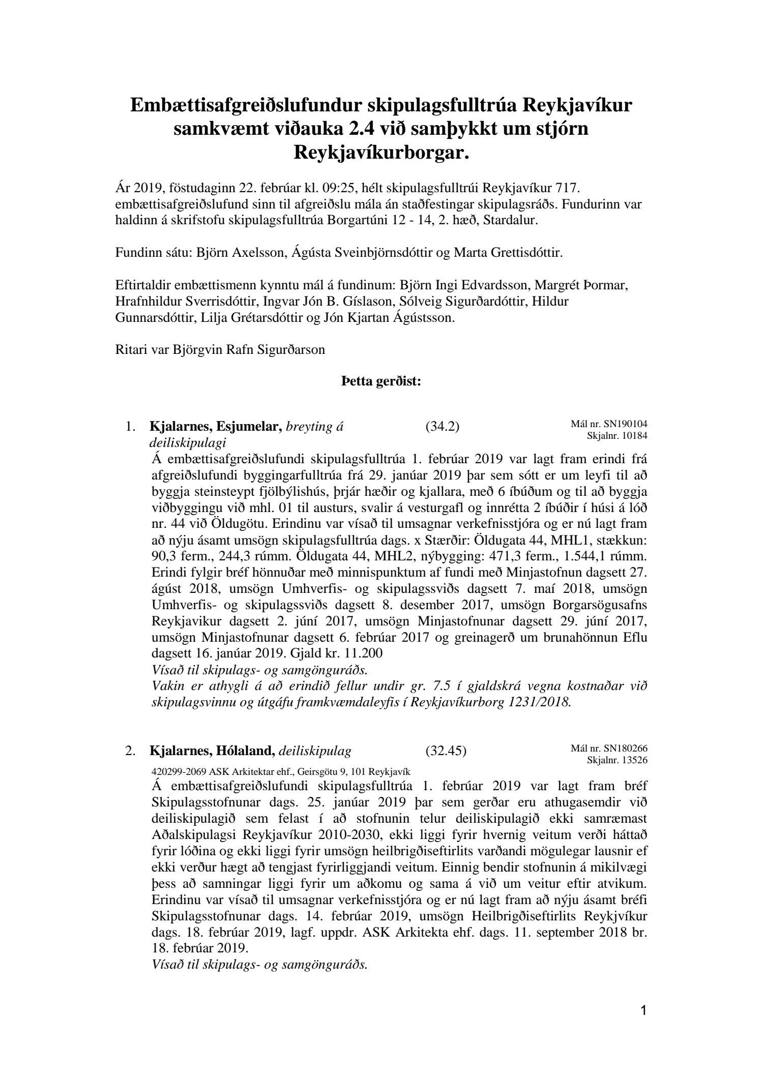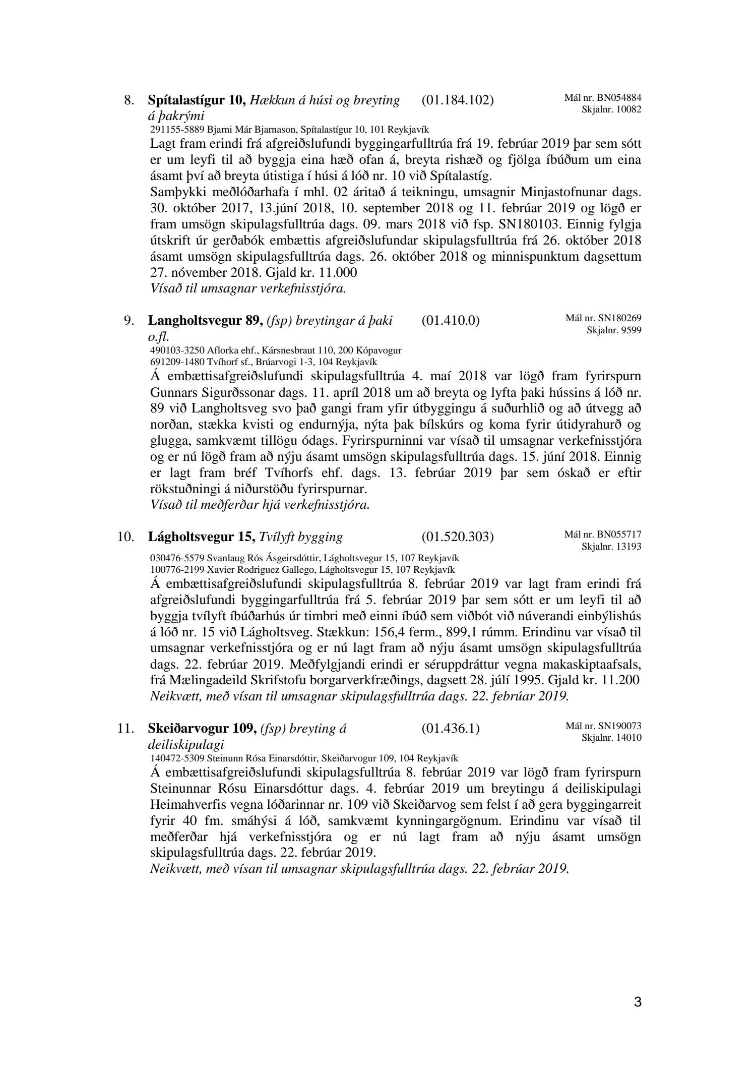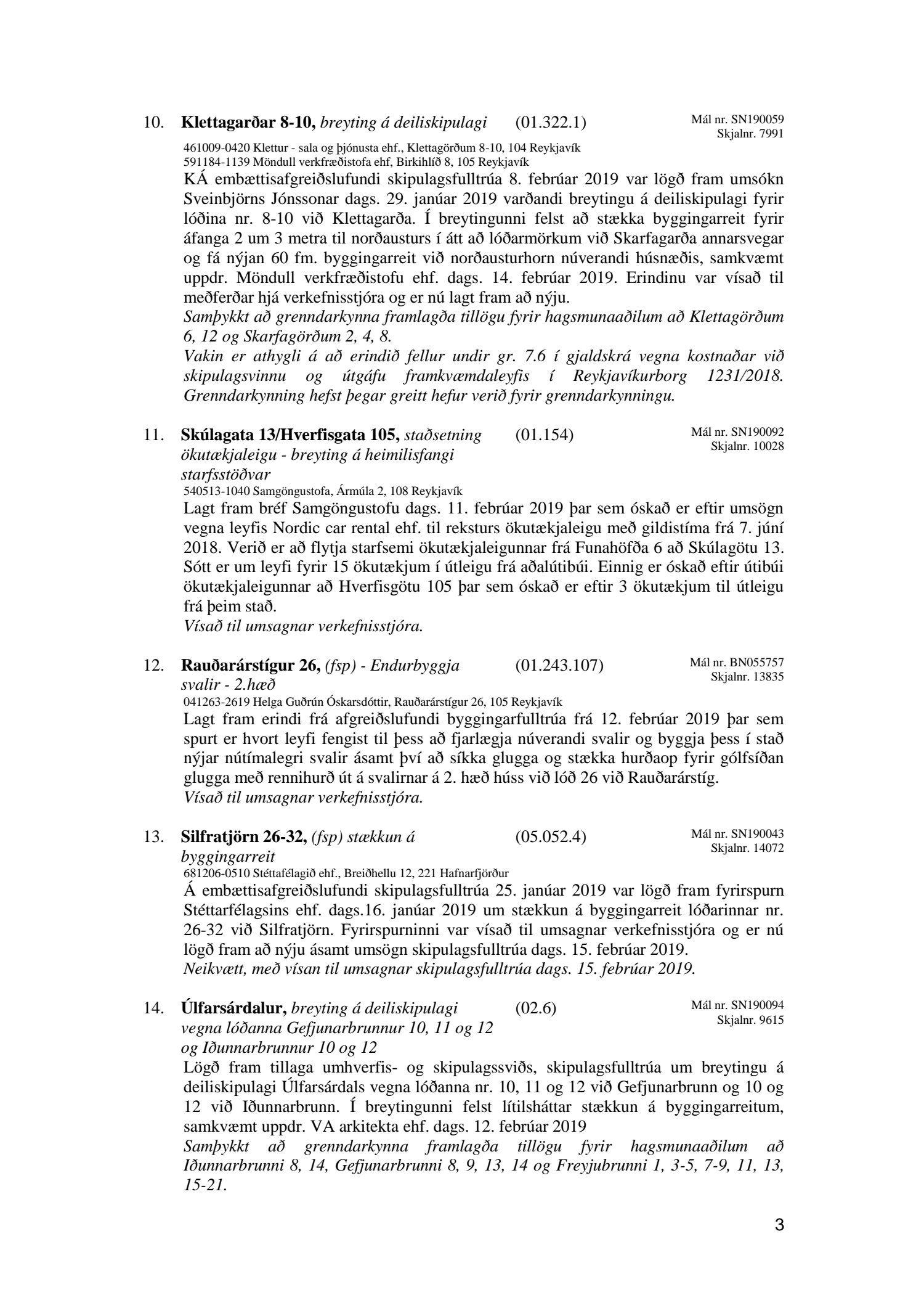 Afgreiðslufundir skipulagsfulltrúa 22. febrúar og 1. mars 2019