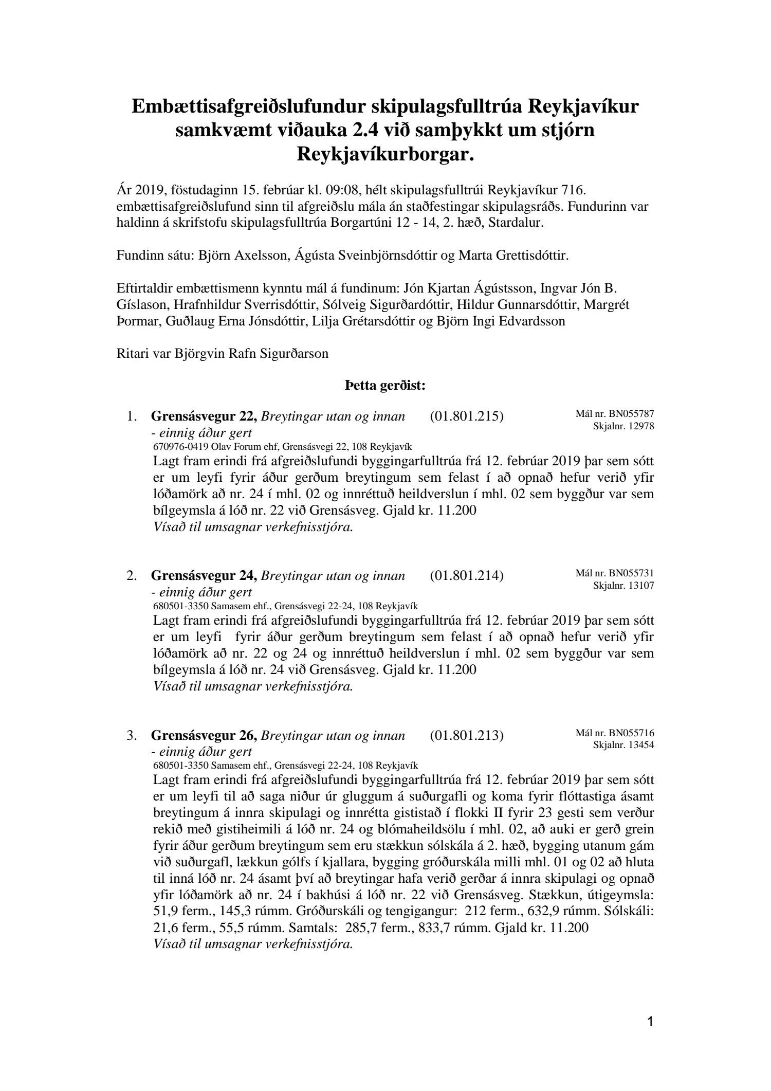 Afgreiðslufundir skipulagsfulltrúa Reykjavíkur, fundargerð