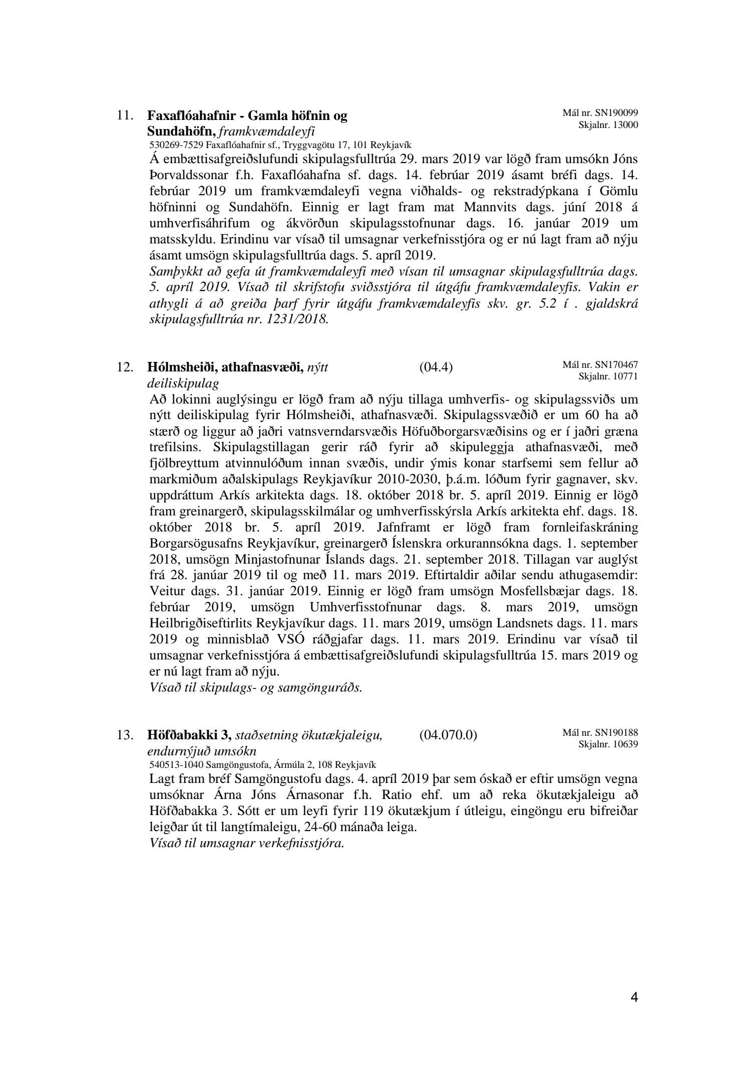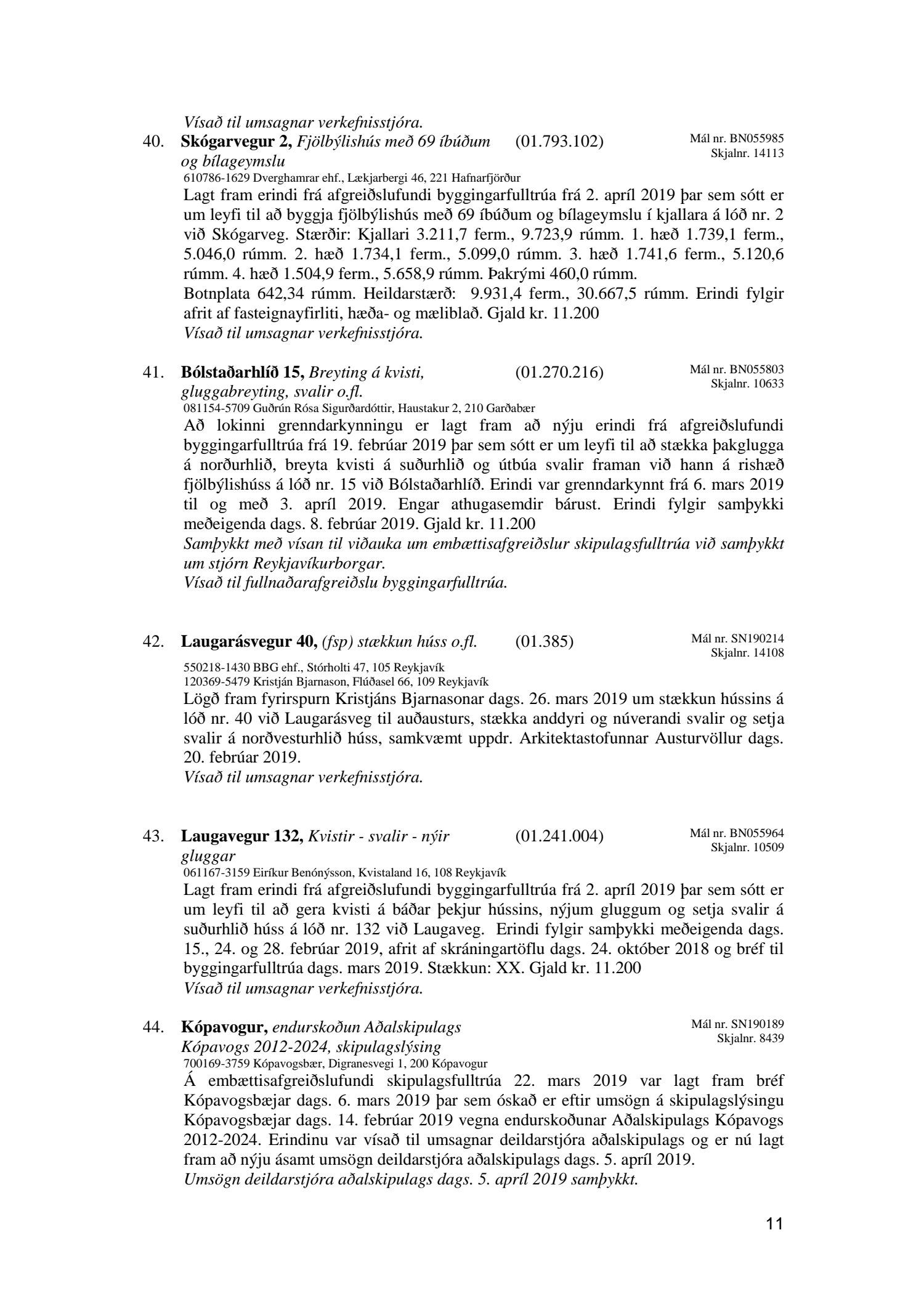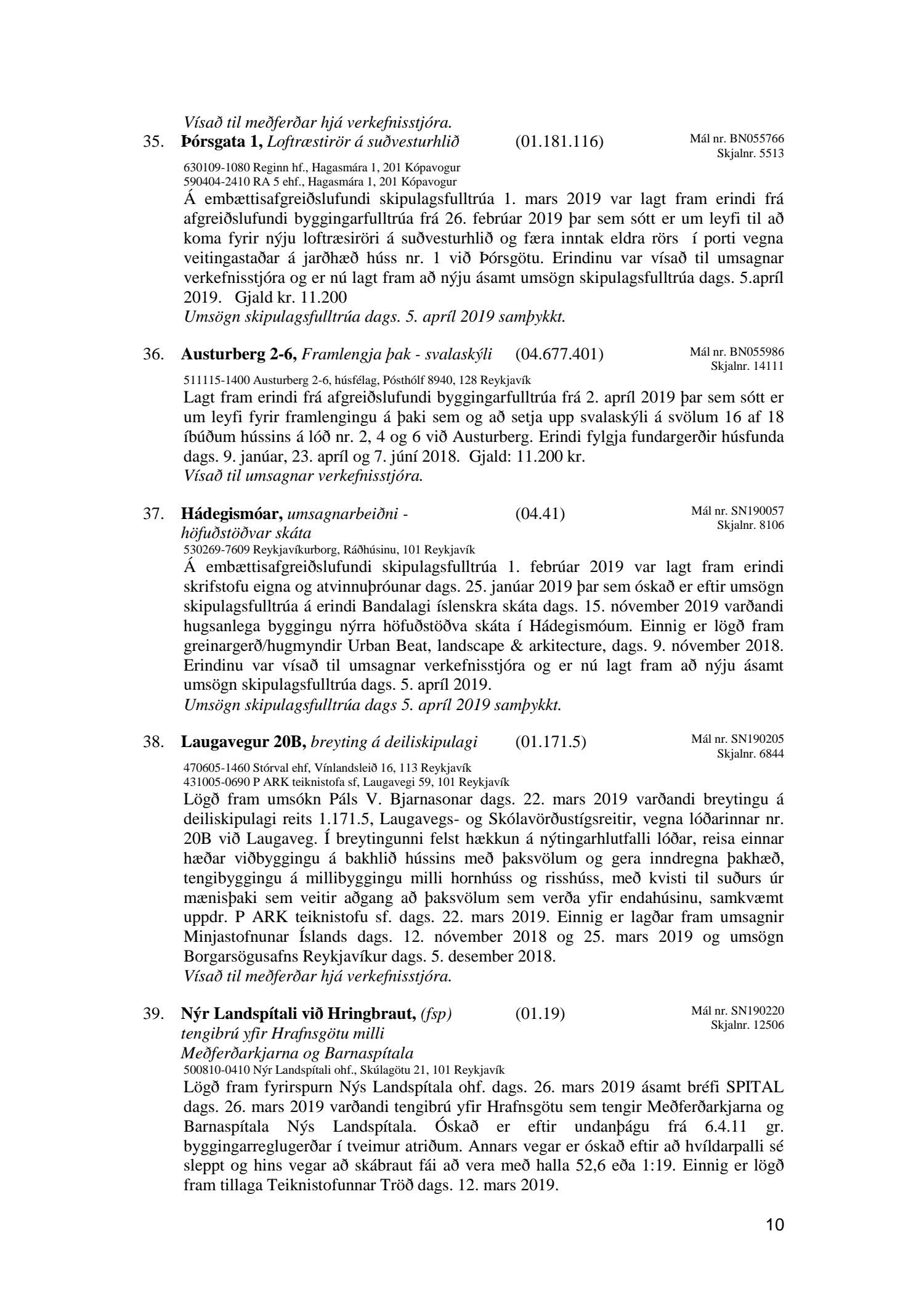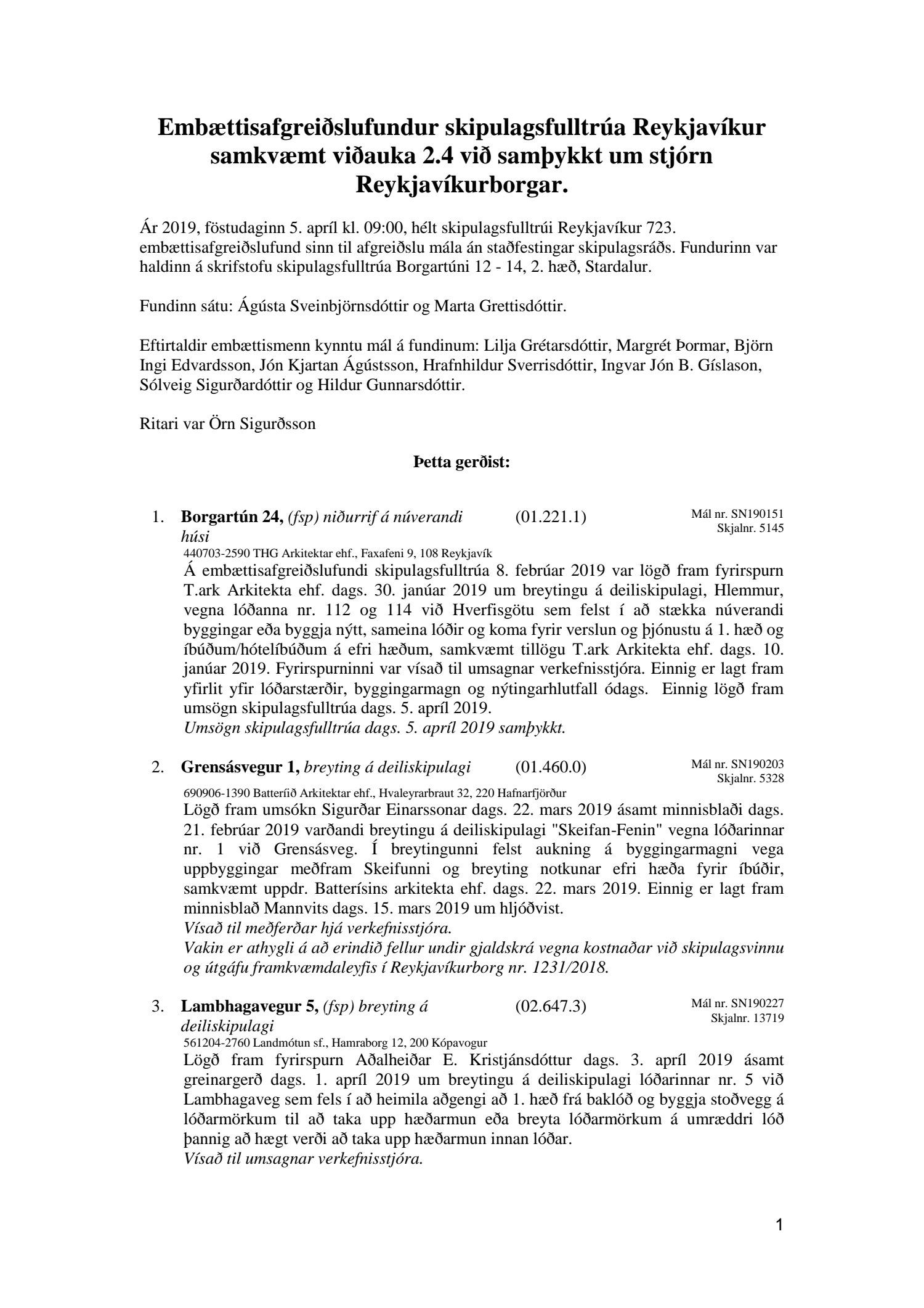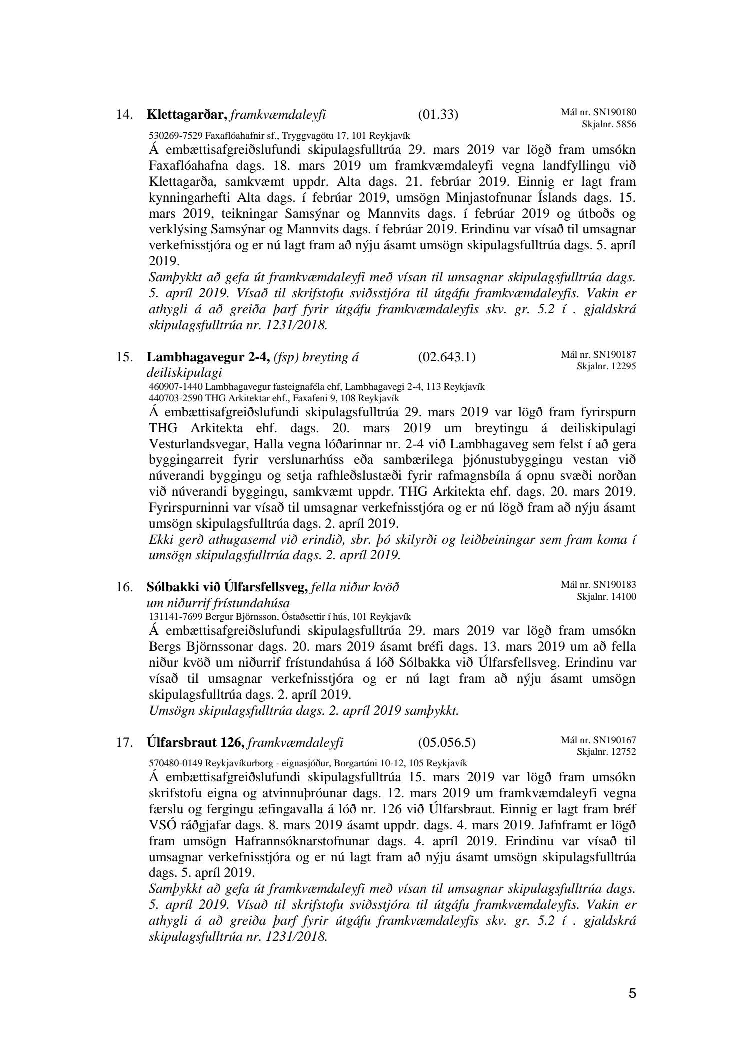 Afgreiðslufundir skipulagsfulltrúa 5. apríl 2019