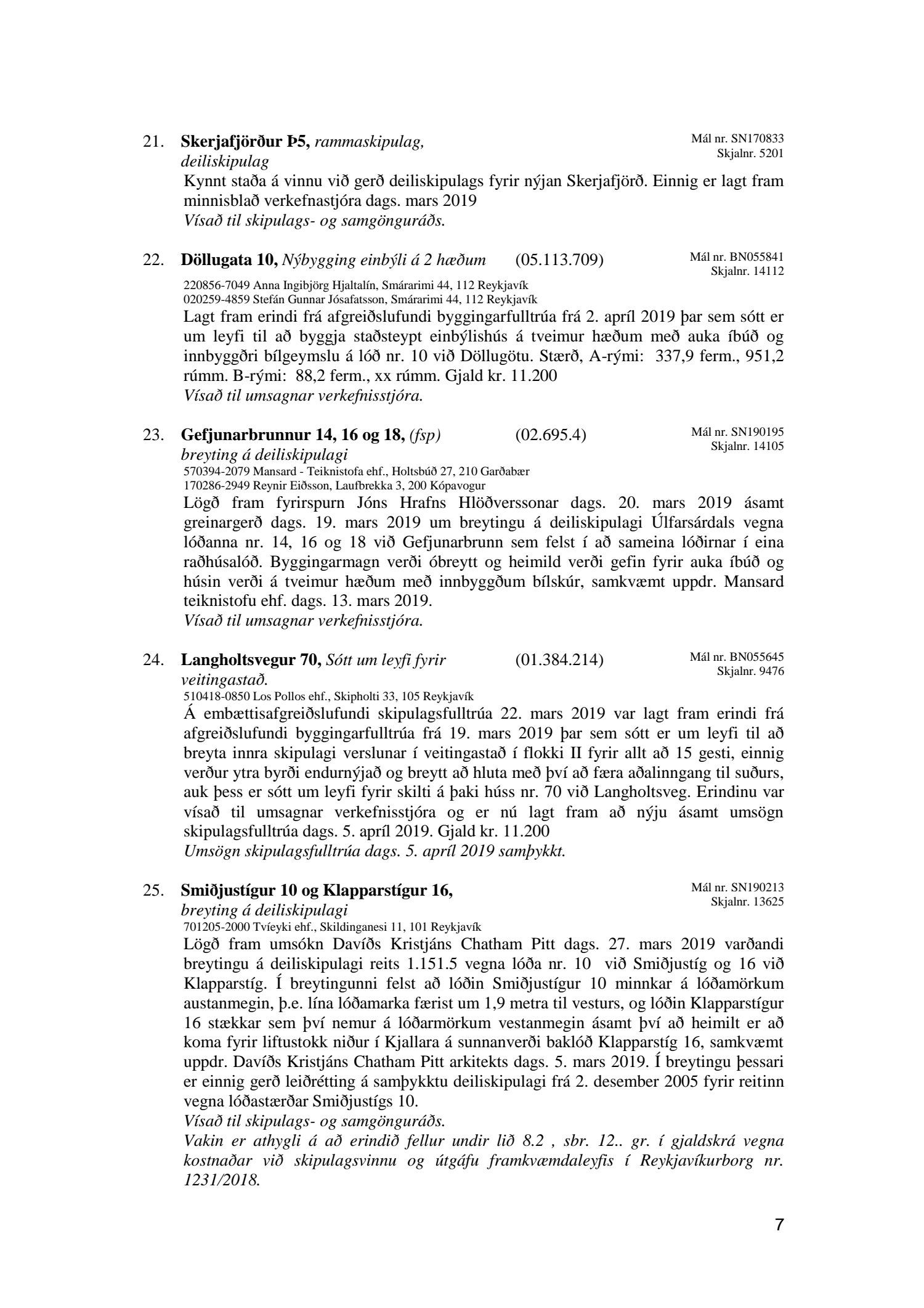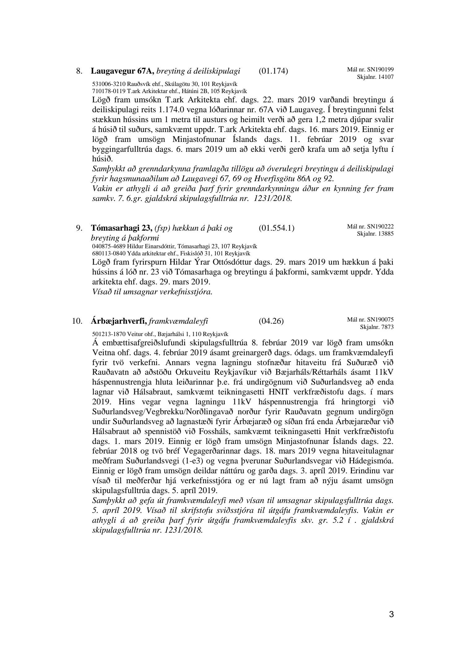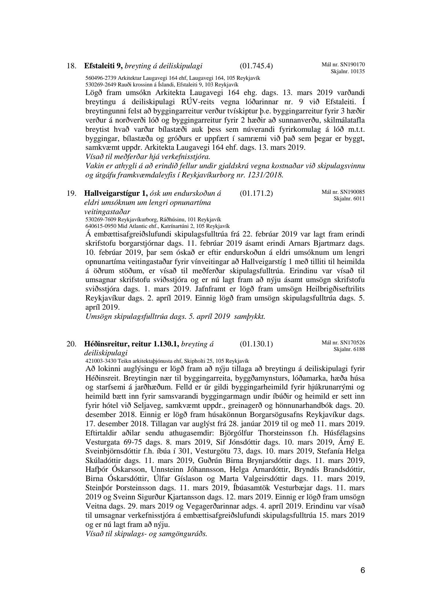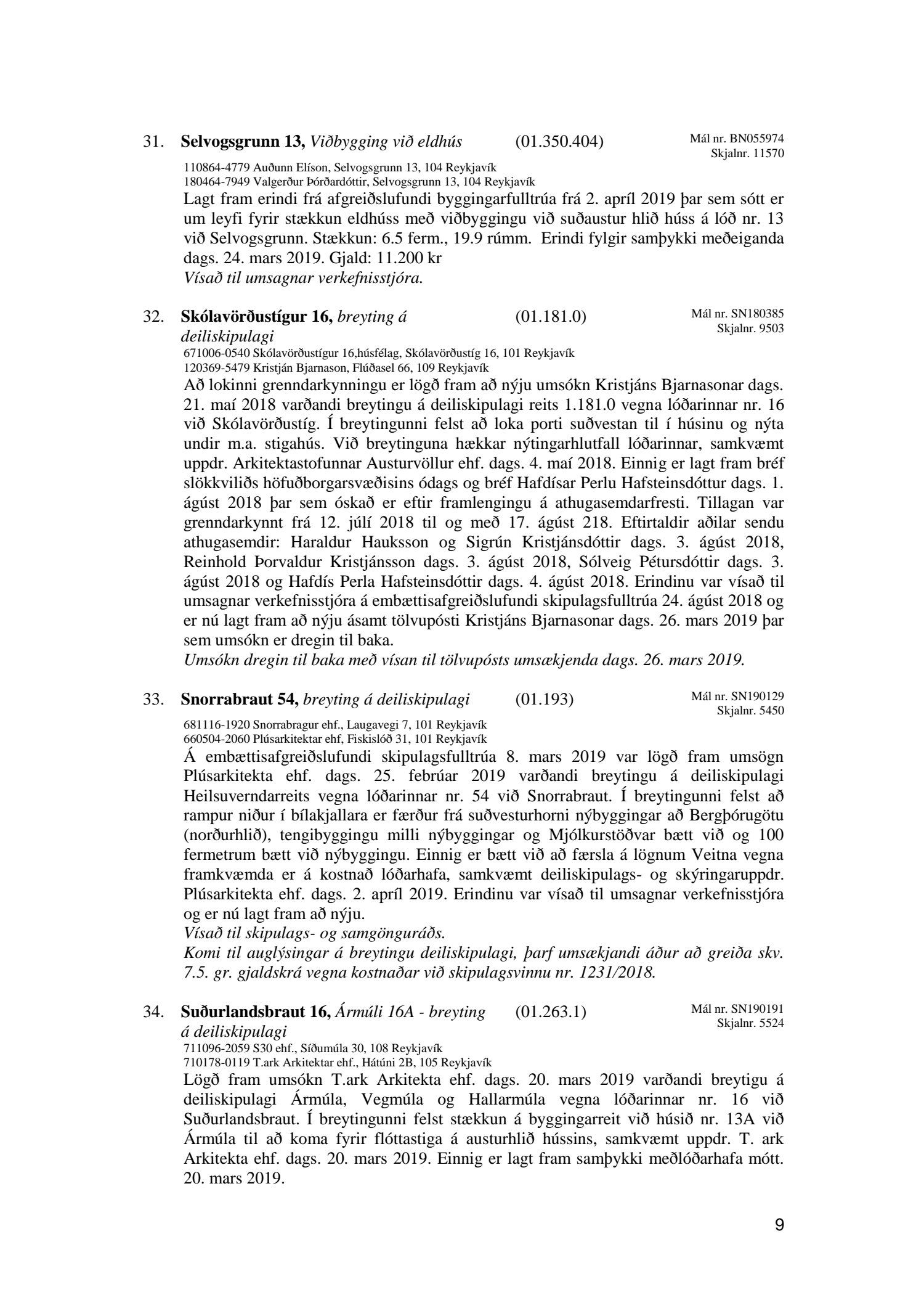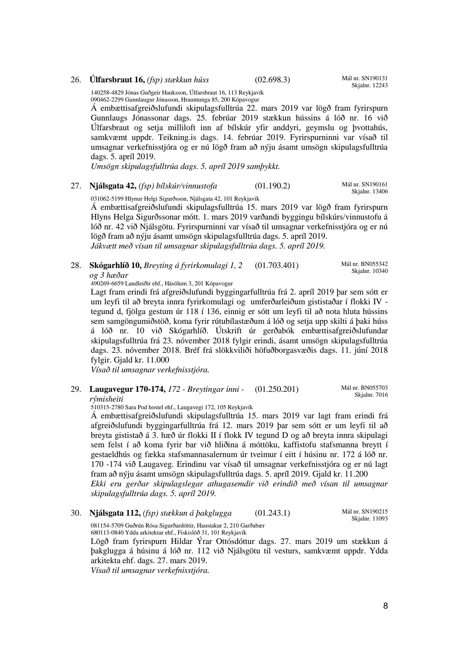 Afgreiðslufundir skipulagsfulltrúa 5. apríl 2019