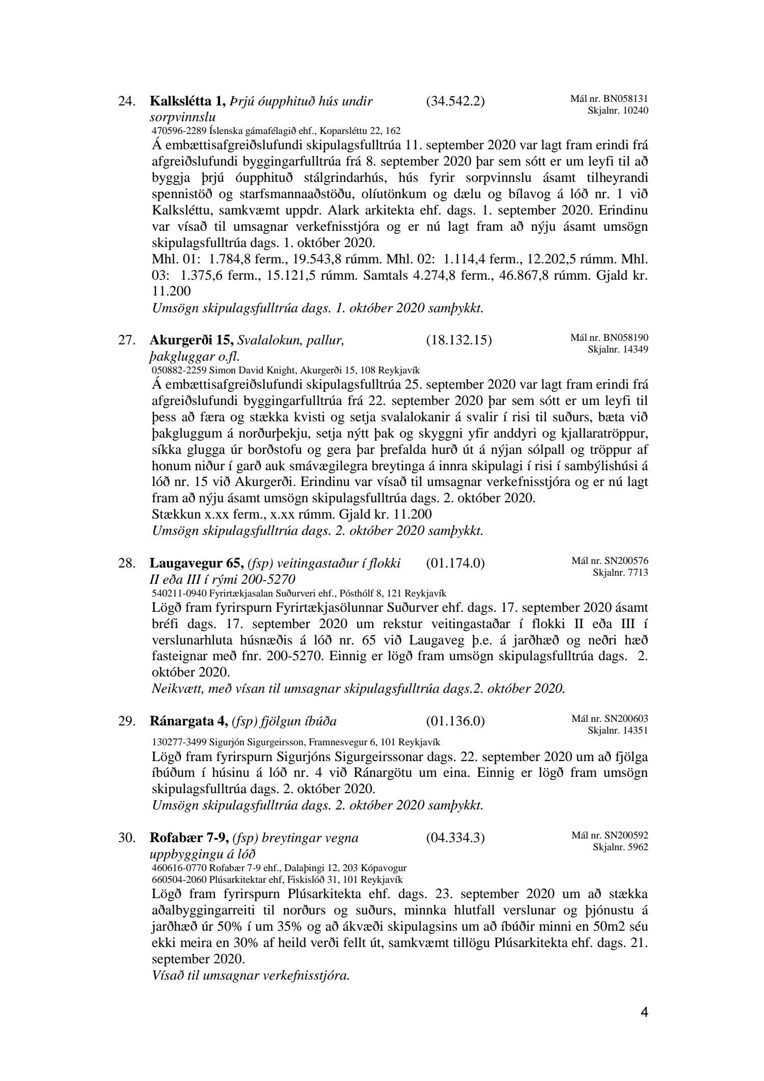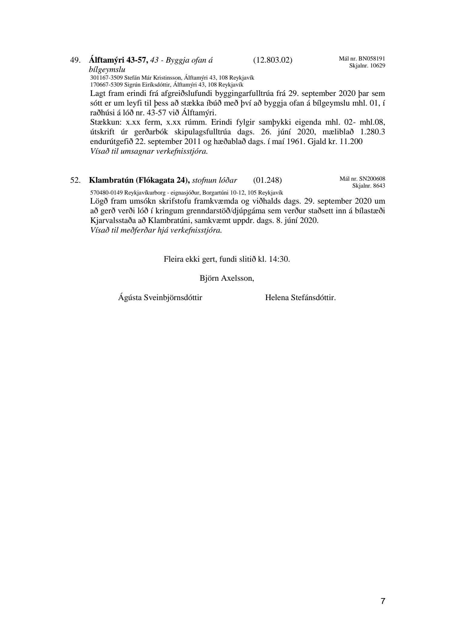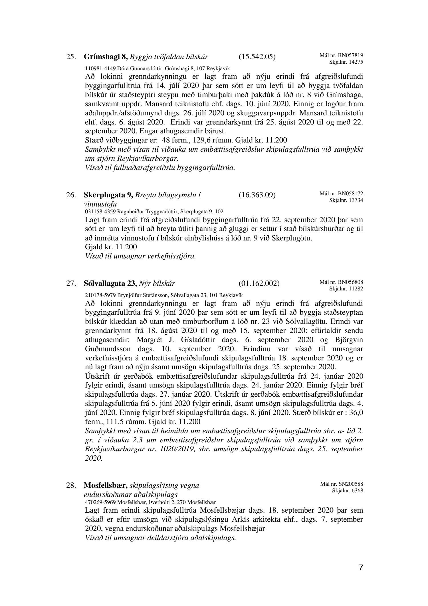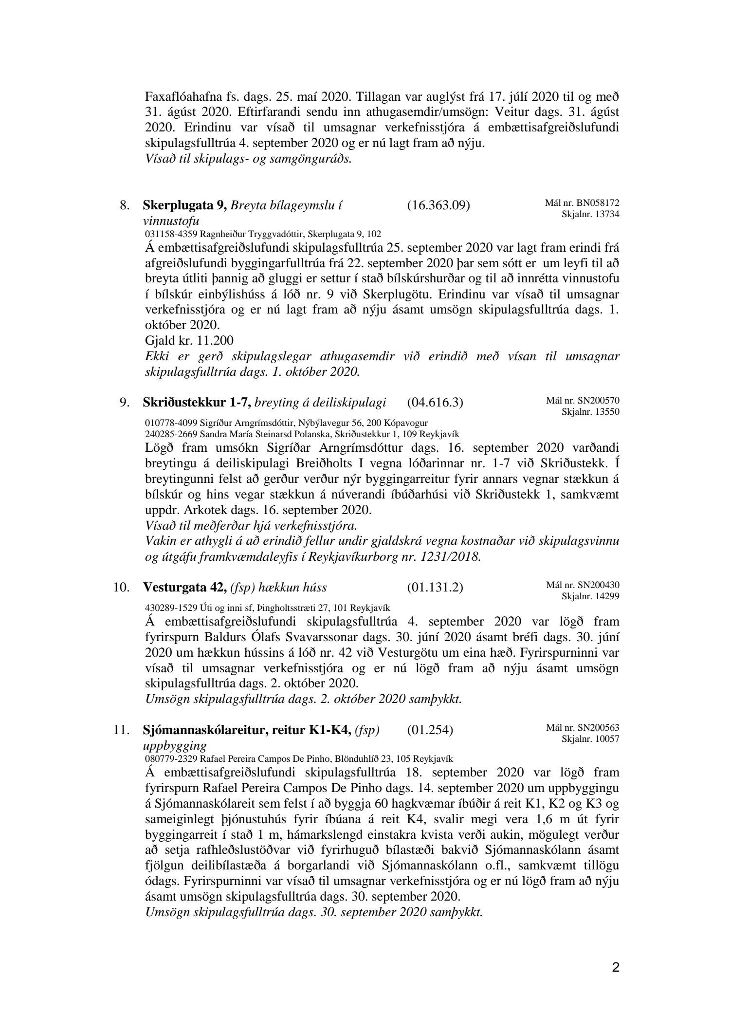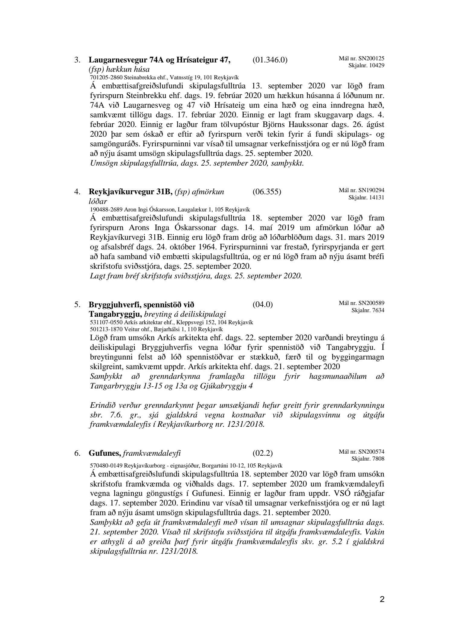 Afgreiðslufundir skipulagsfulltrúa Reykjavíkur, fundargerð