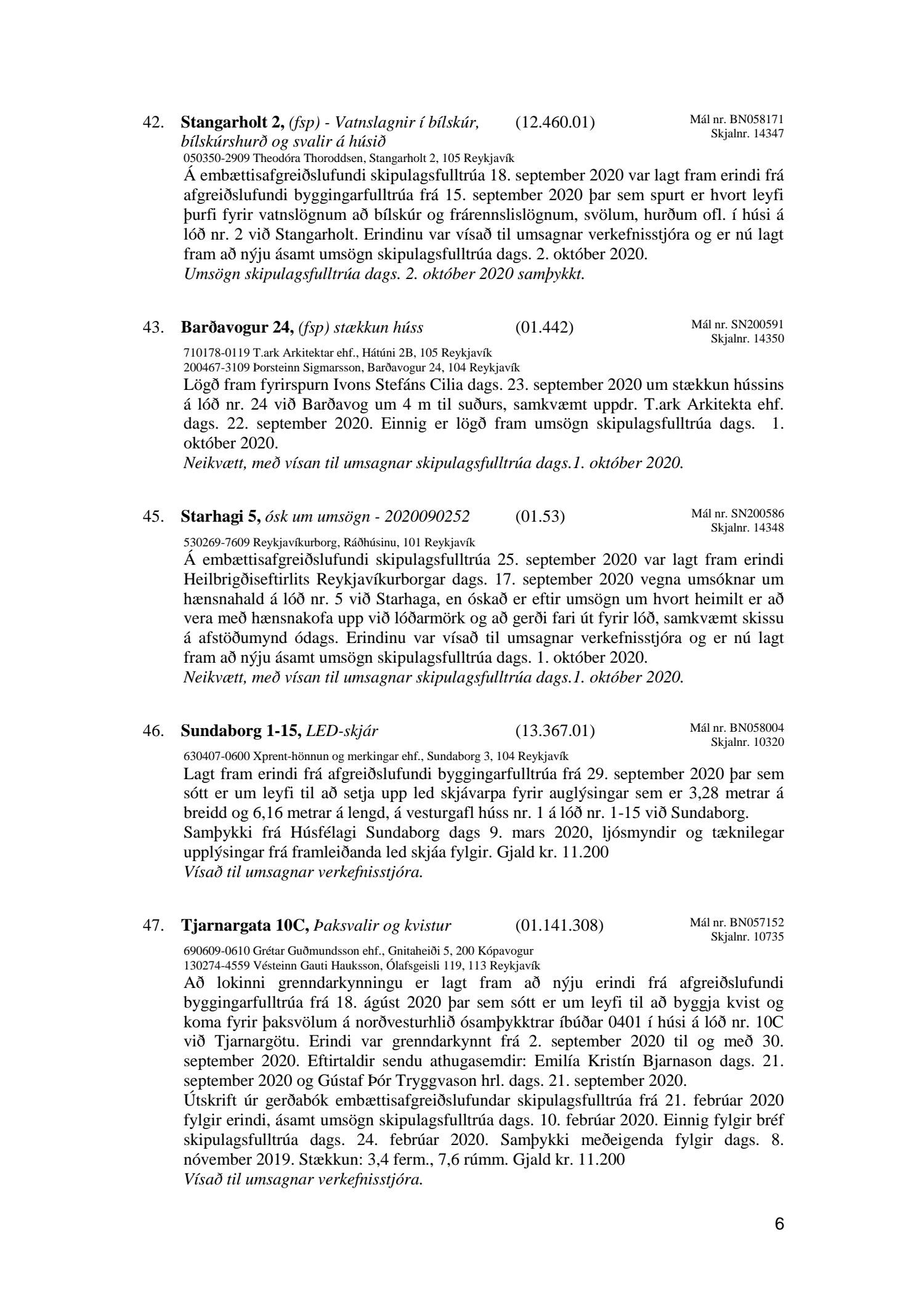 Umhverfis- og skipulagsráð nr. 47