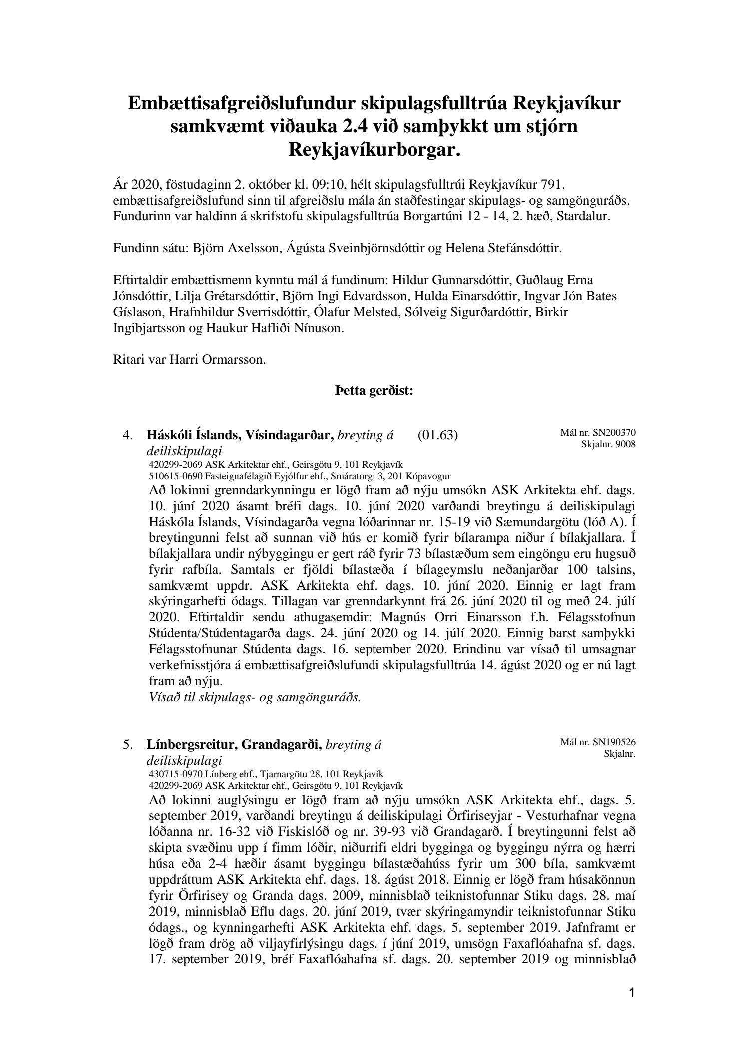 Fundargerð skipulagsfulltrúa nr. 791