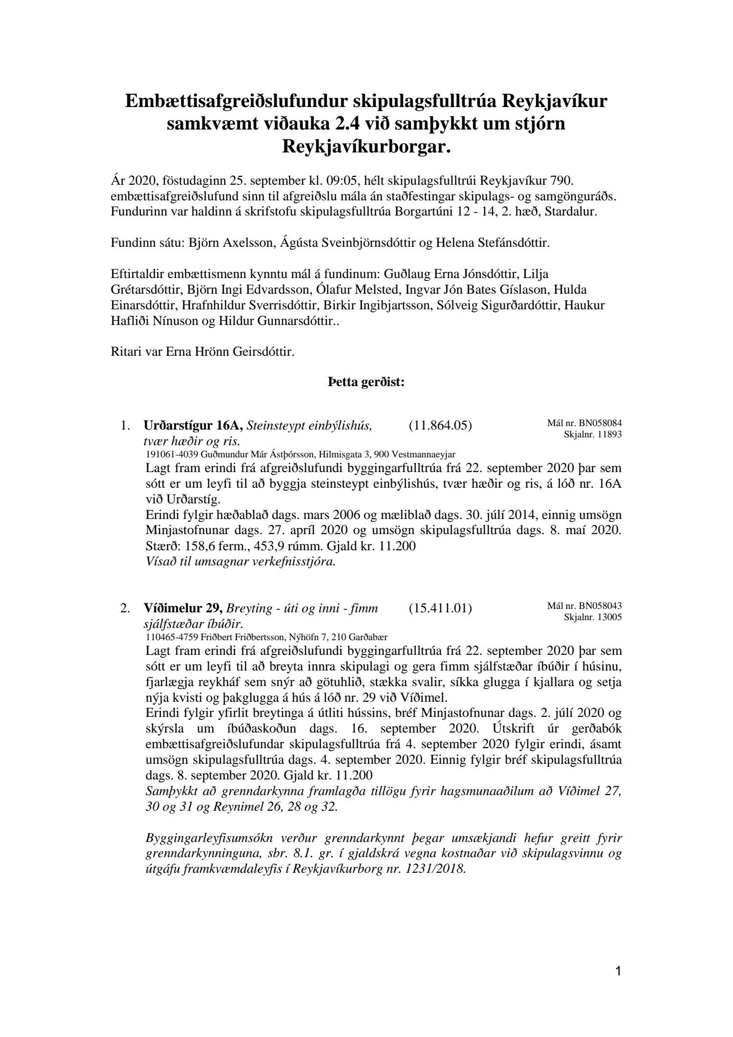 Fundargerð skipulagsfulltrúa nr. 790