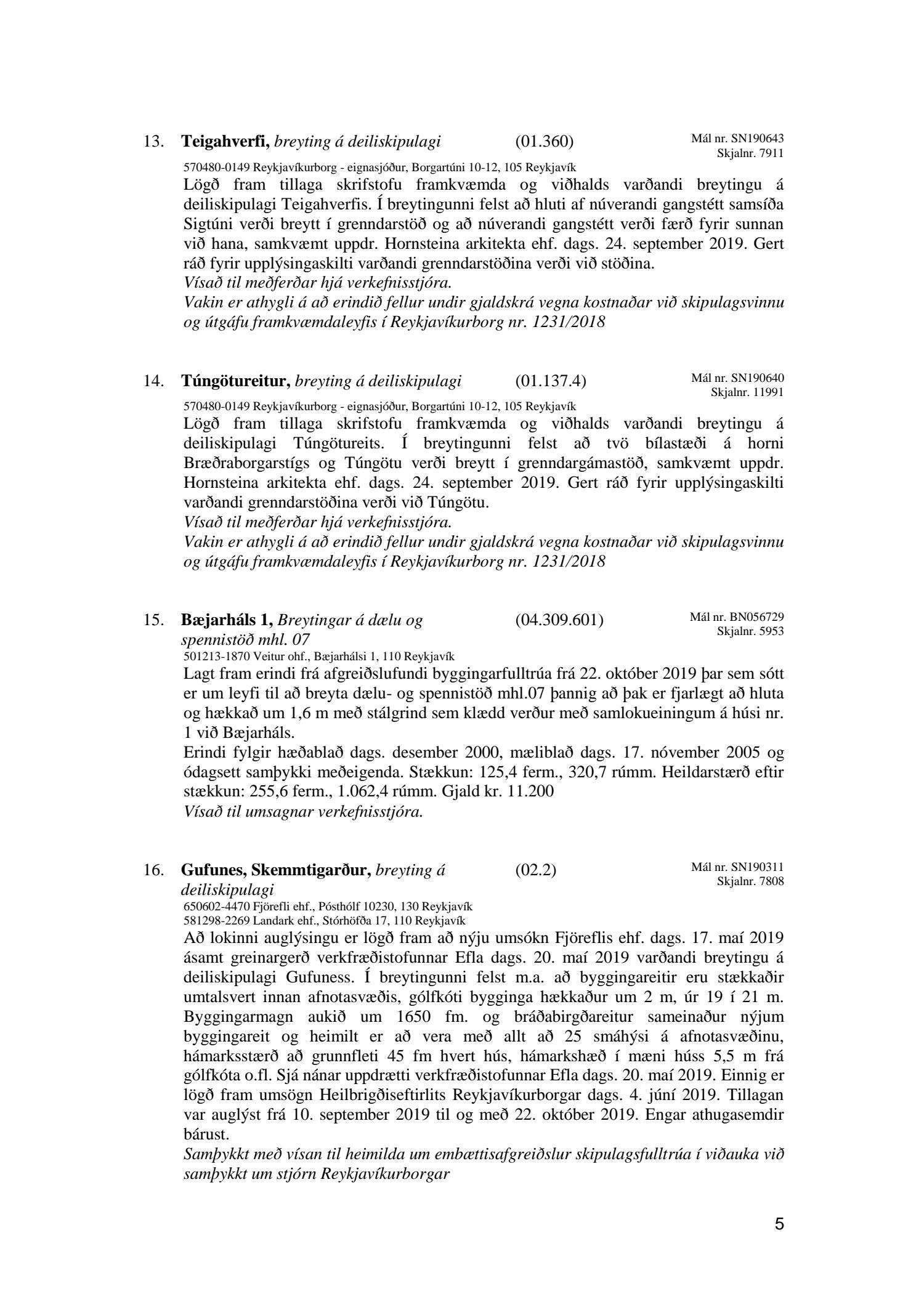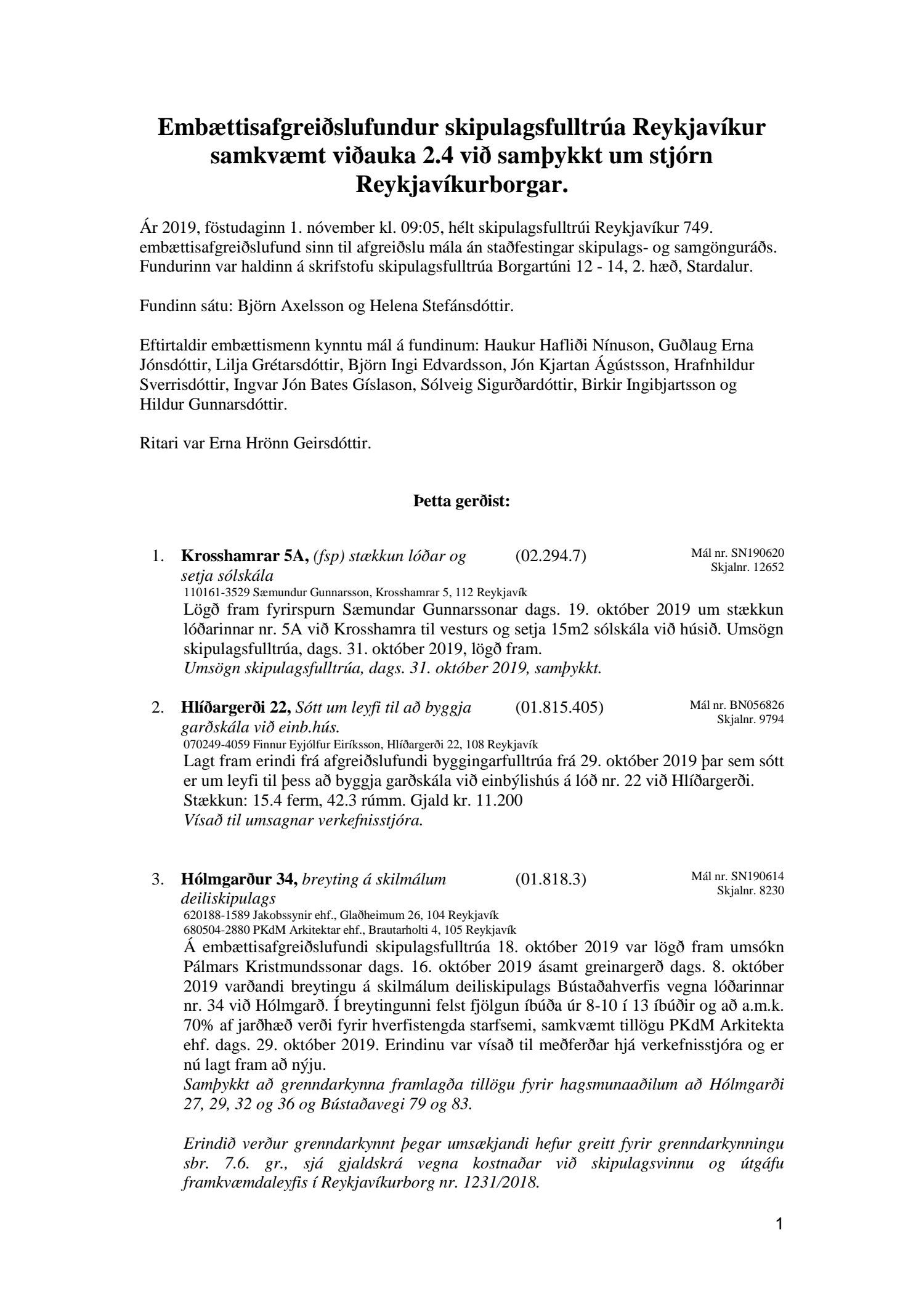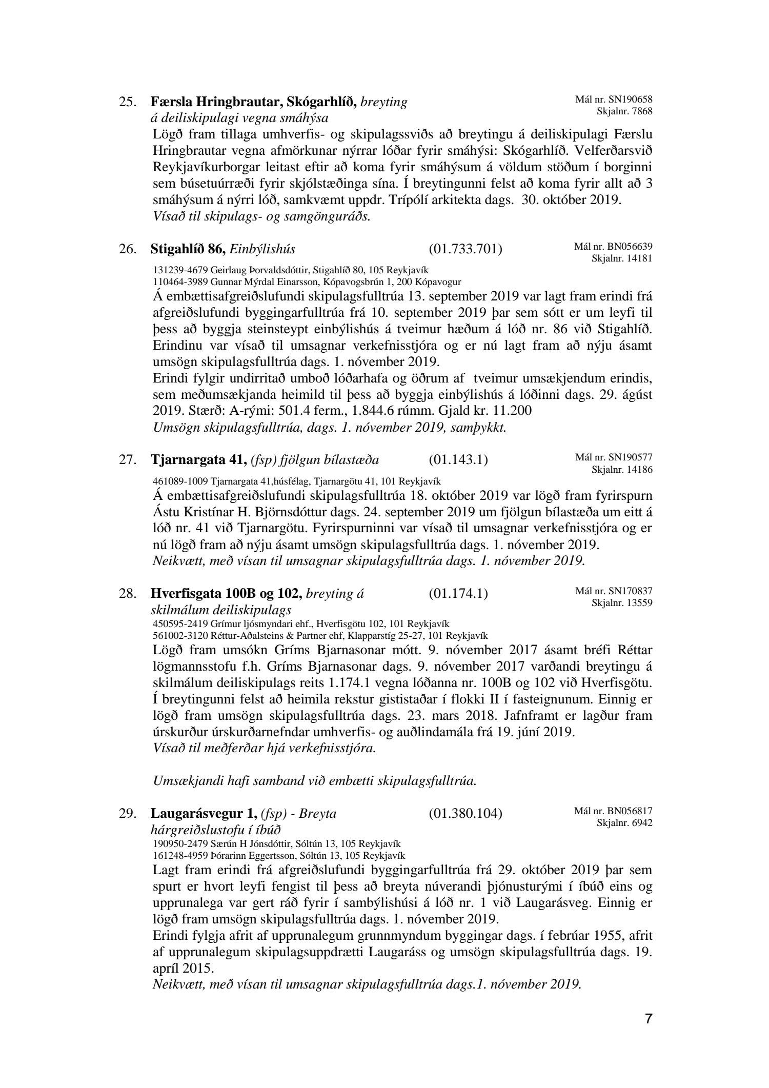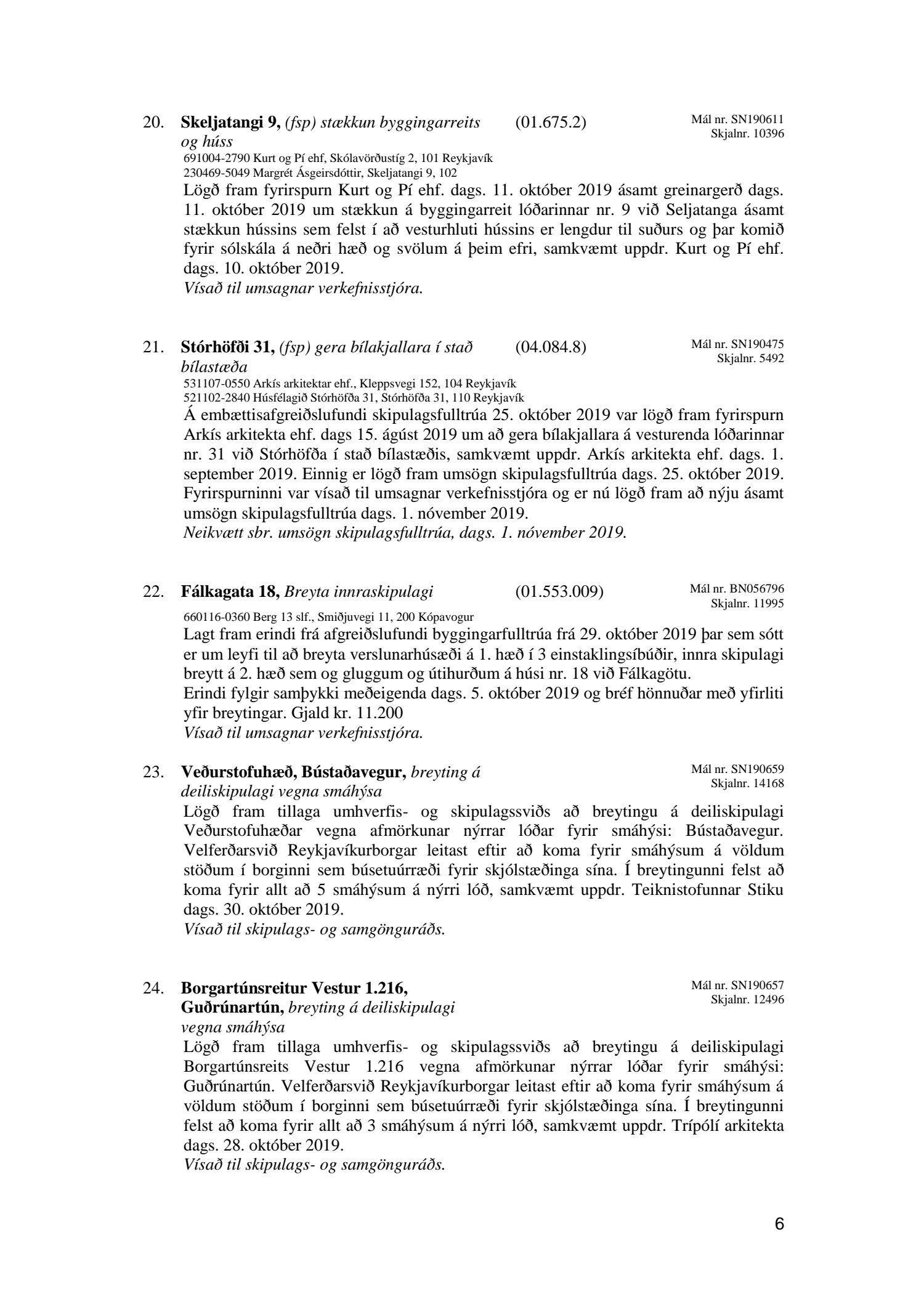 Afgreiðslufundir skipulagsfulltrúa Reykjavíkur, fundargerð