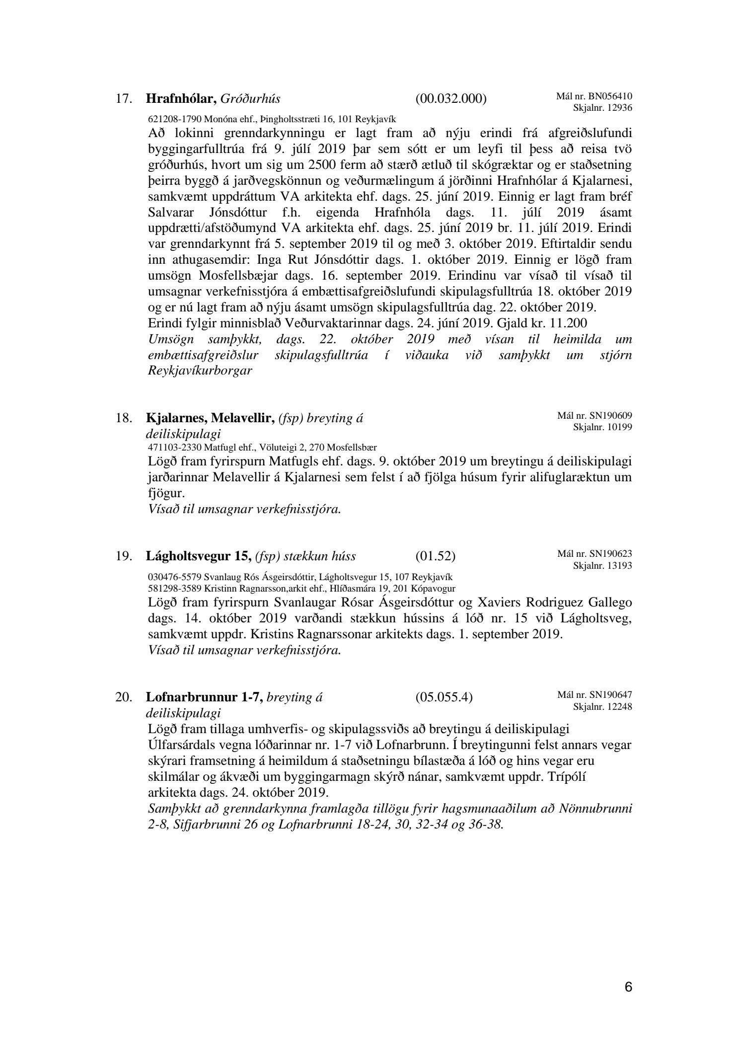 Umhverfis- og skipulagsráð nr. 20