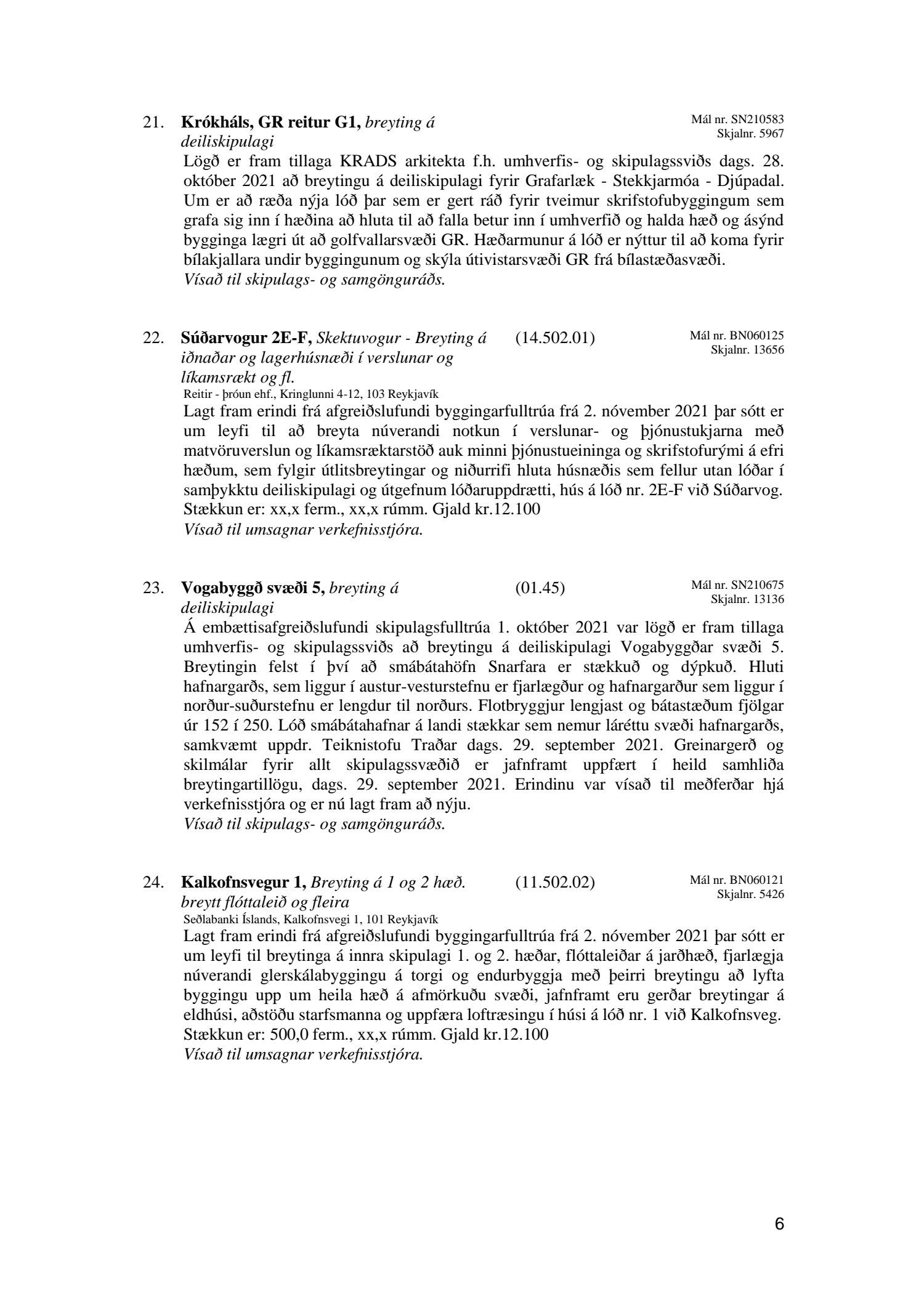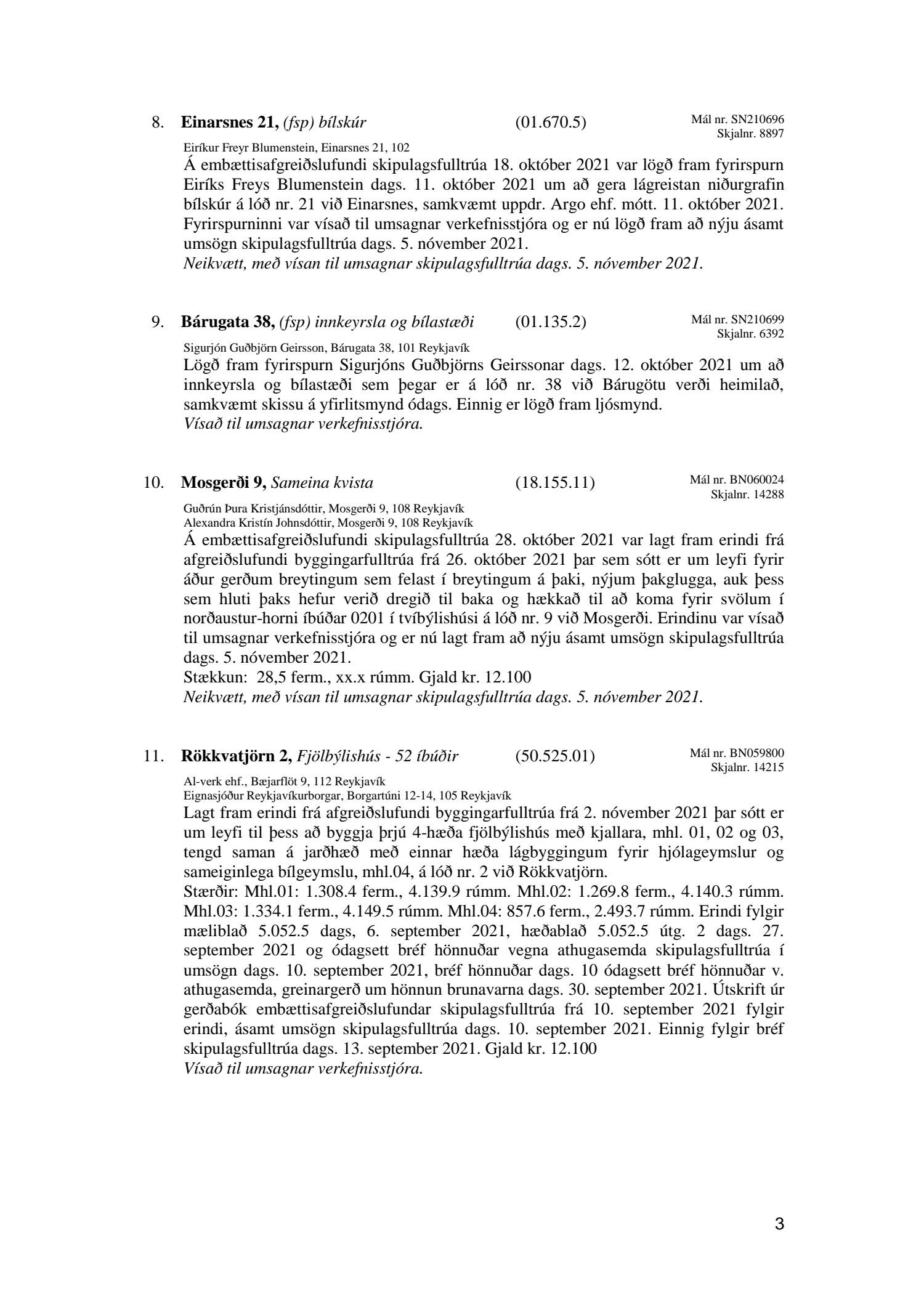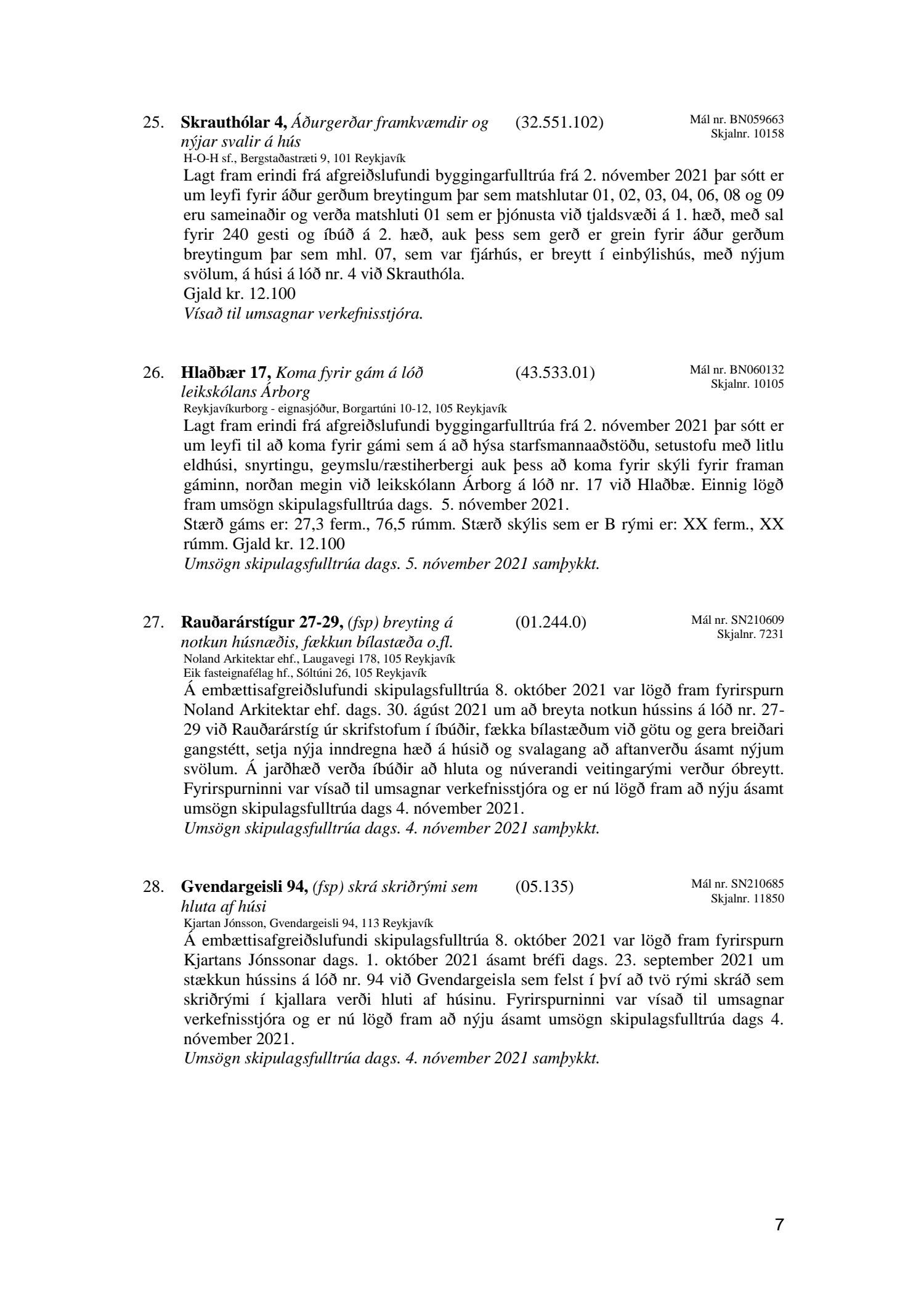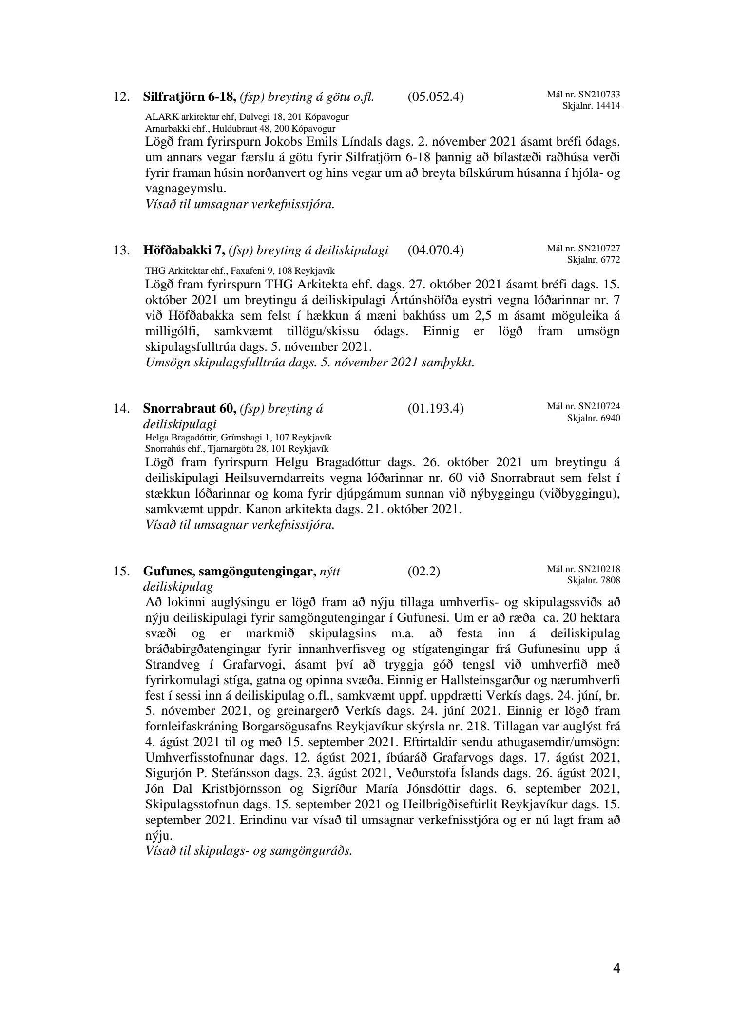 Afgreiðslufundir skipulagsfulltrúa Reykjavíkur, fundargerð
