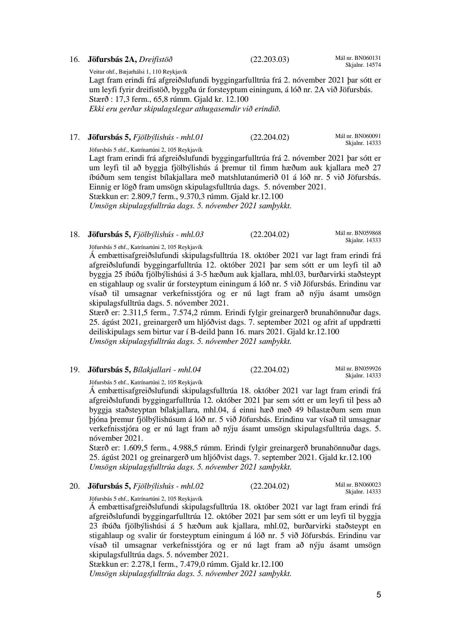 Lögð fram fundargerð embættisafgreiðslufundar skipulagsfulltrúa frá 5. nóvember 2021.