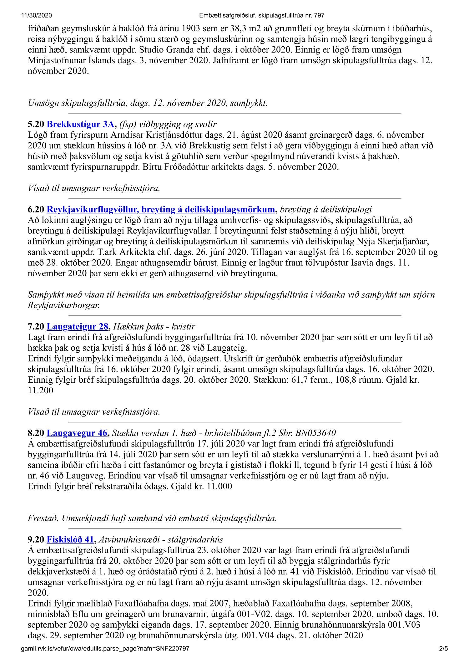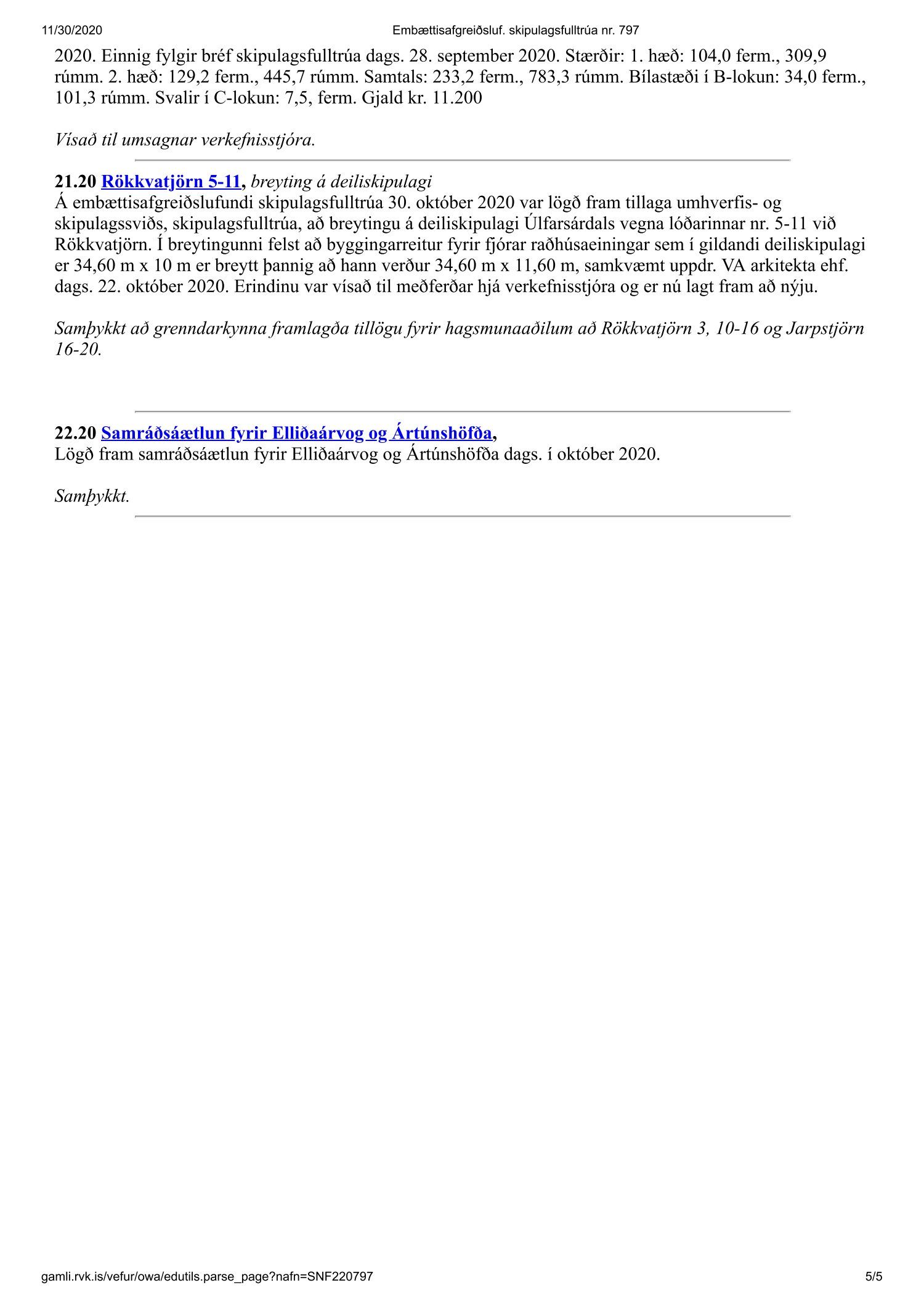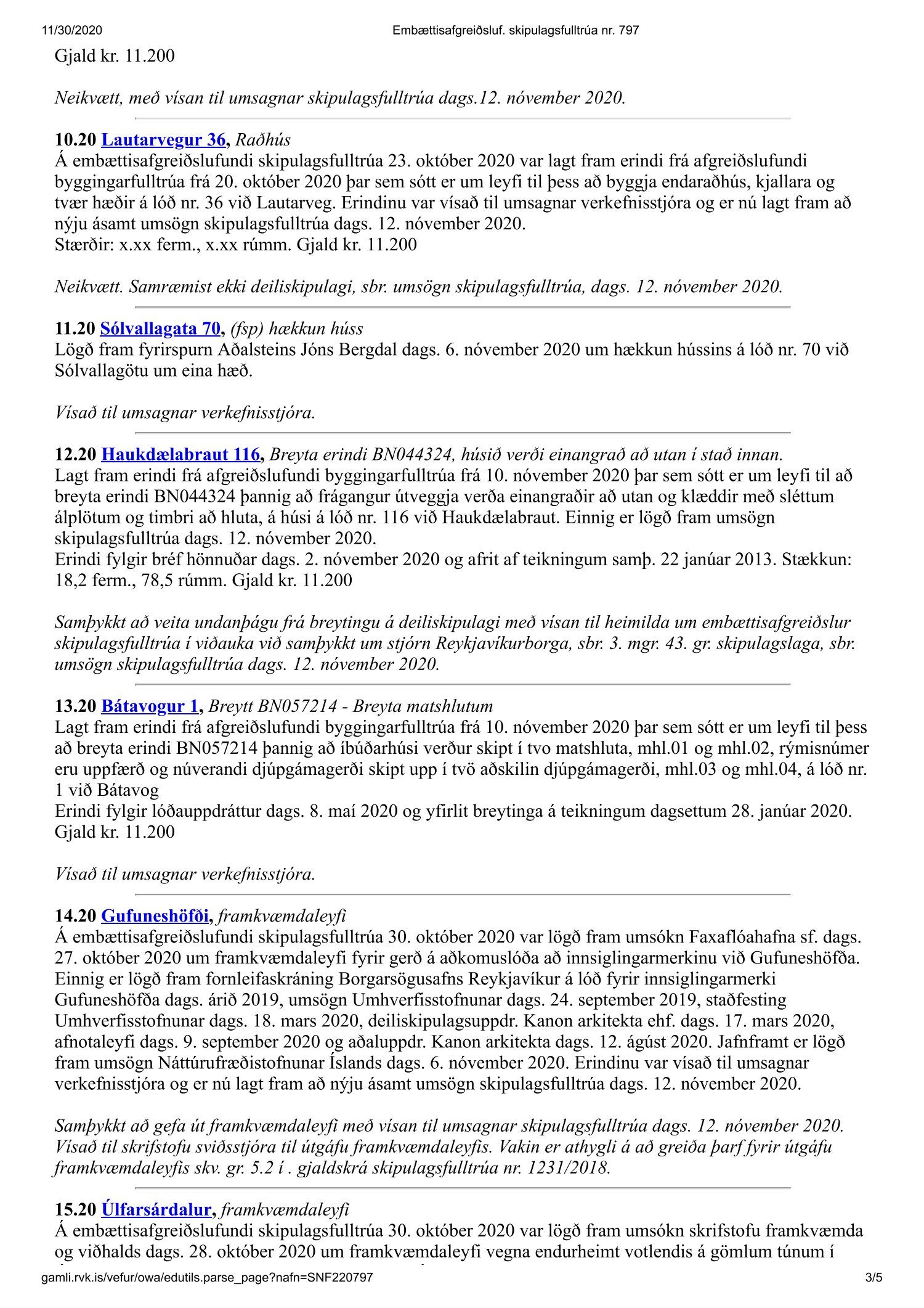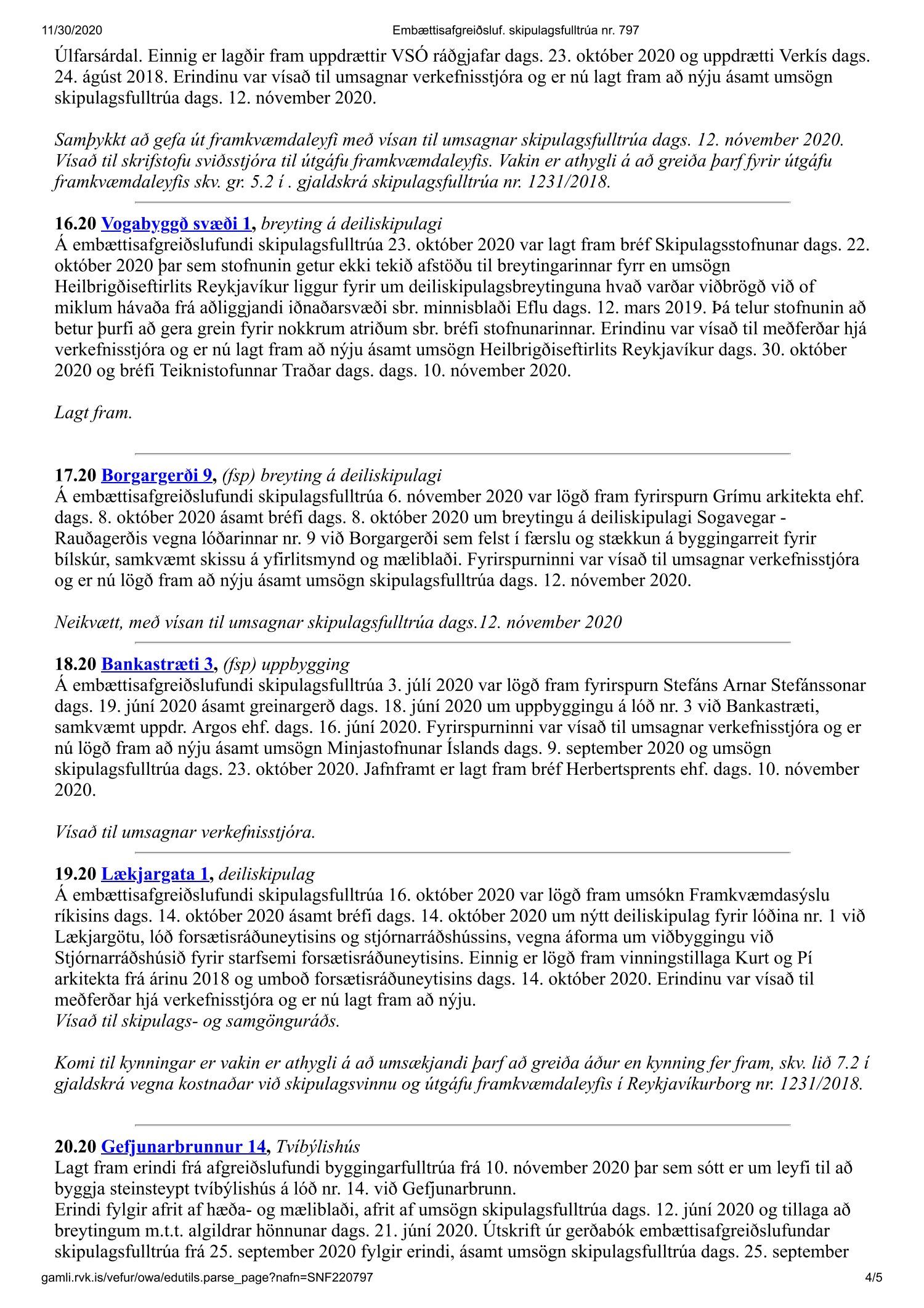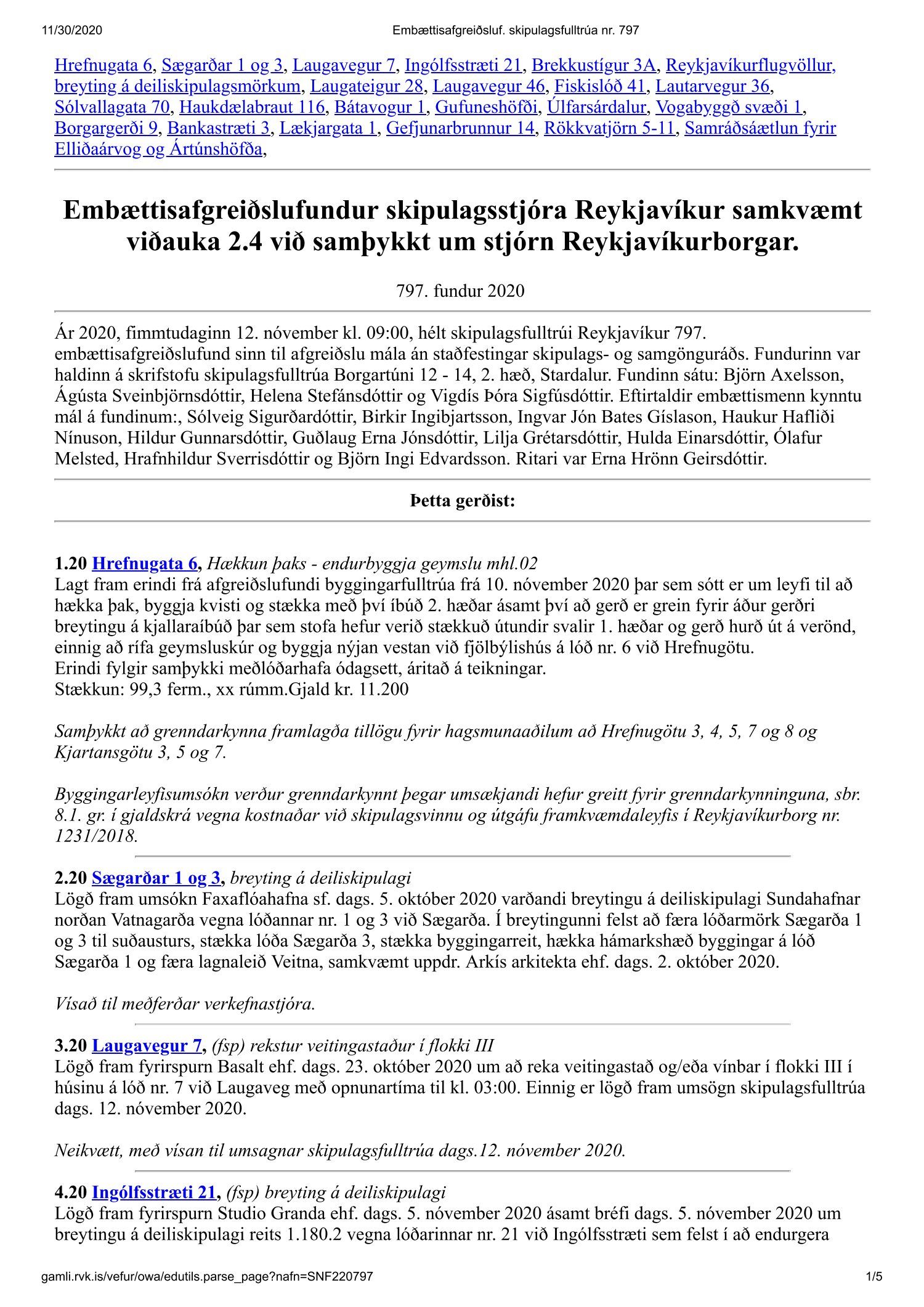 Fundargerð skipulagsfulltrúa nr. 797