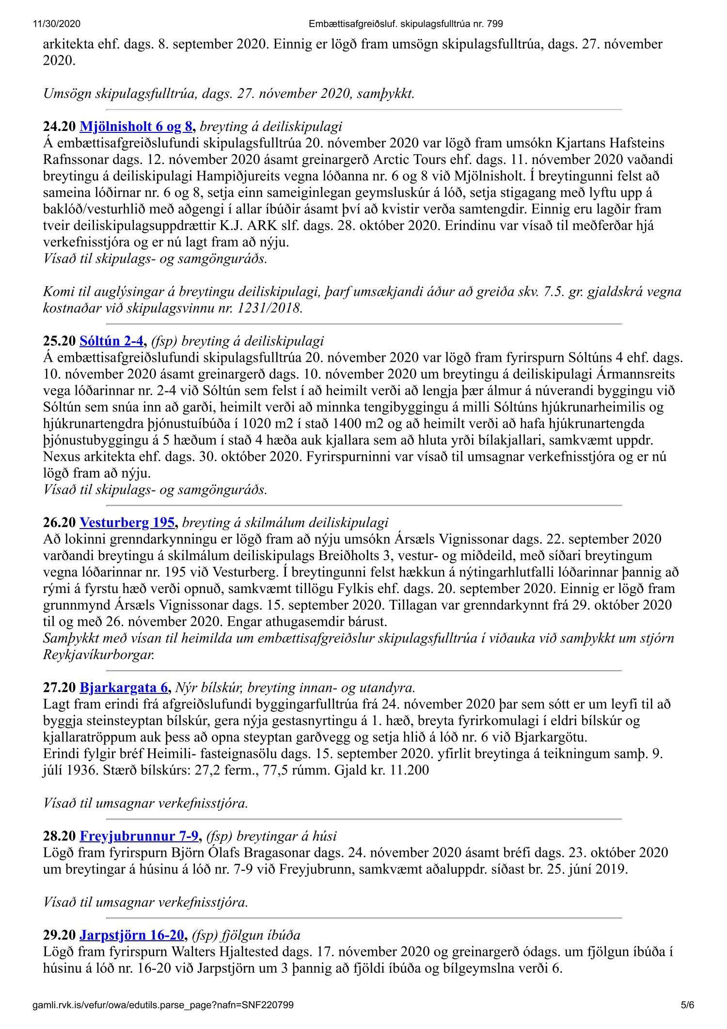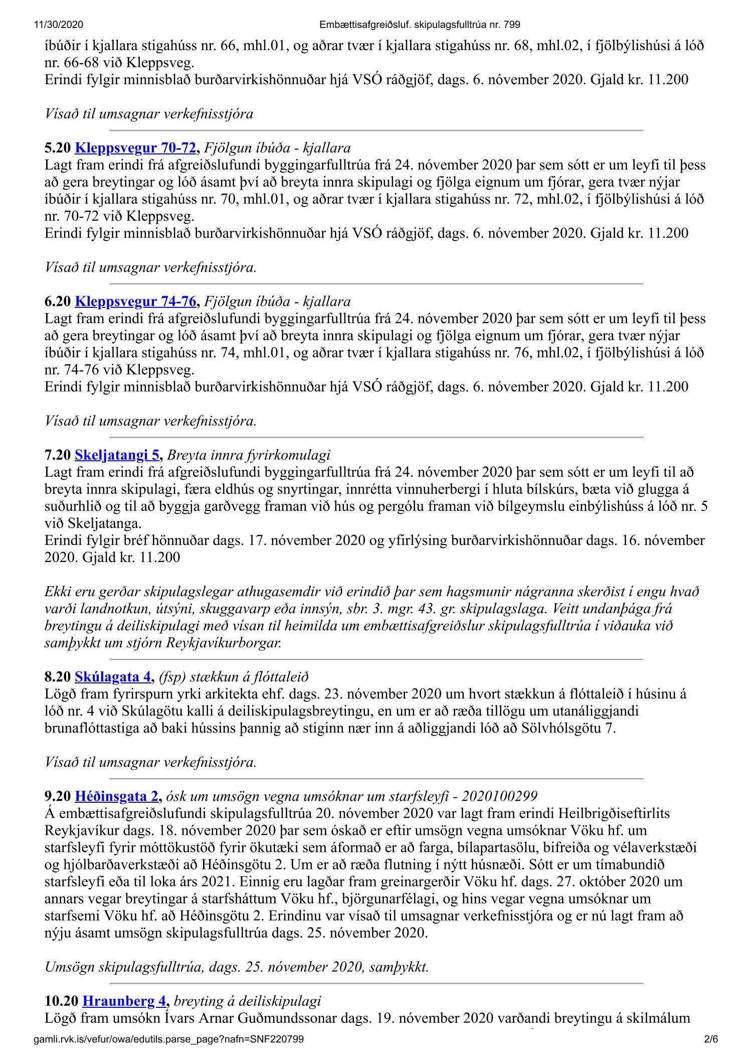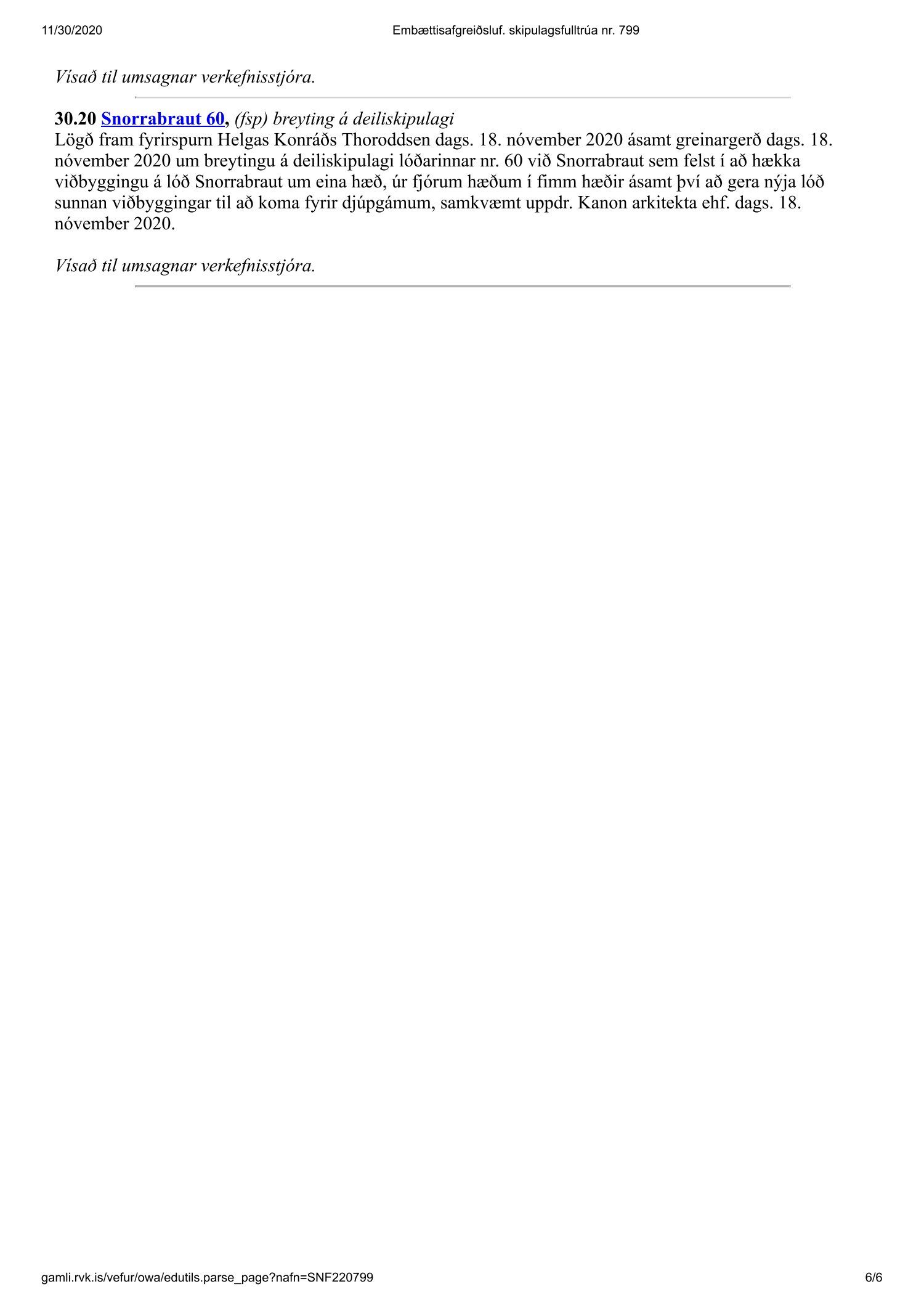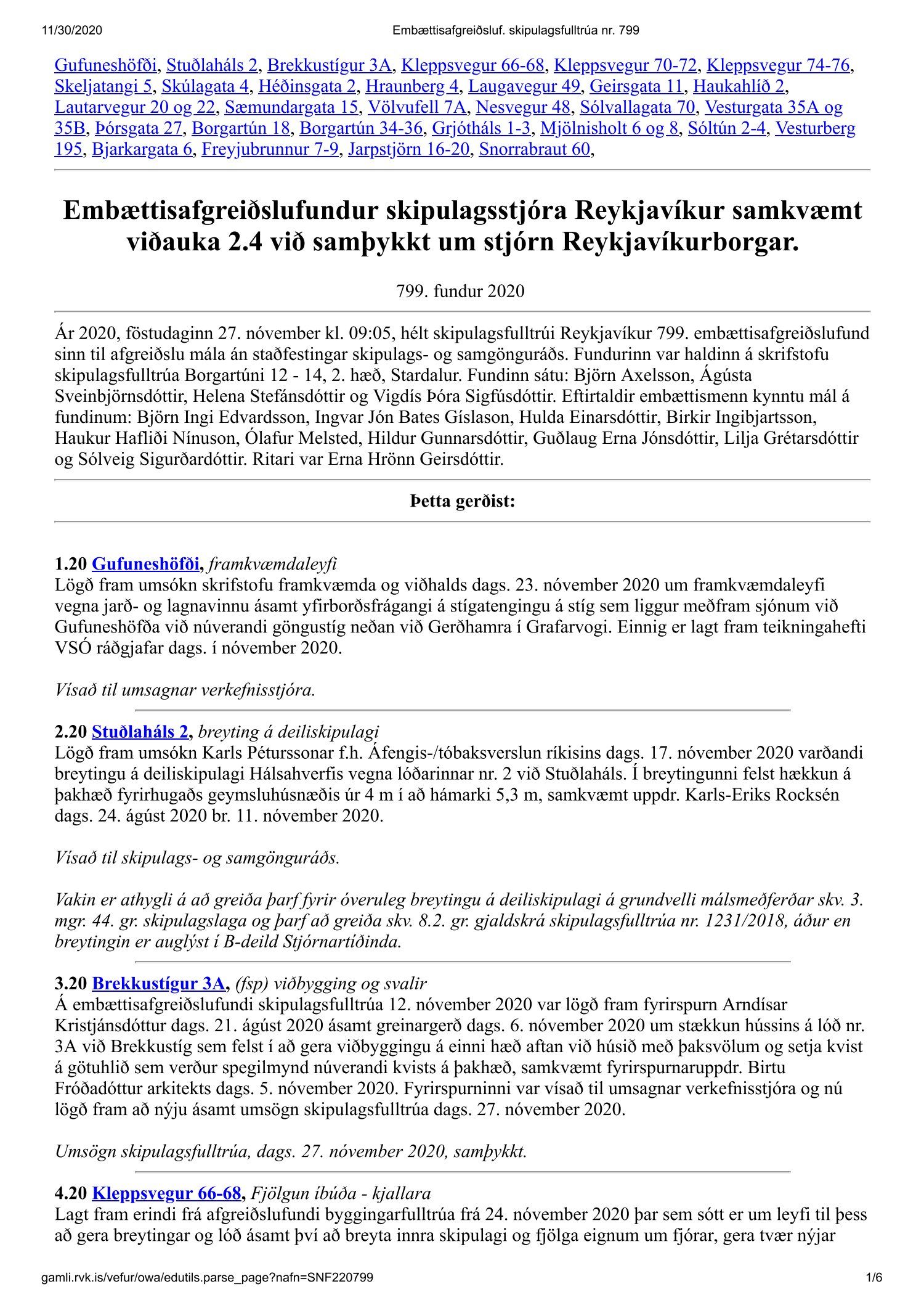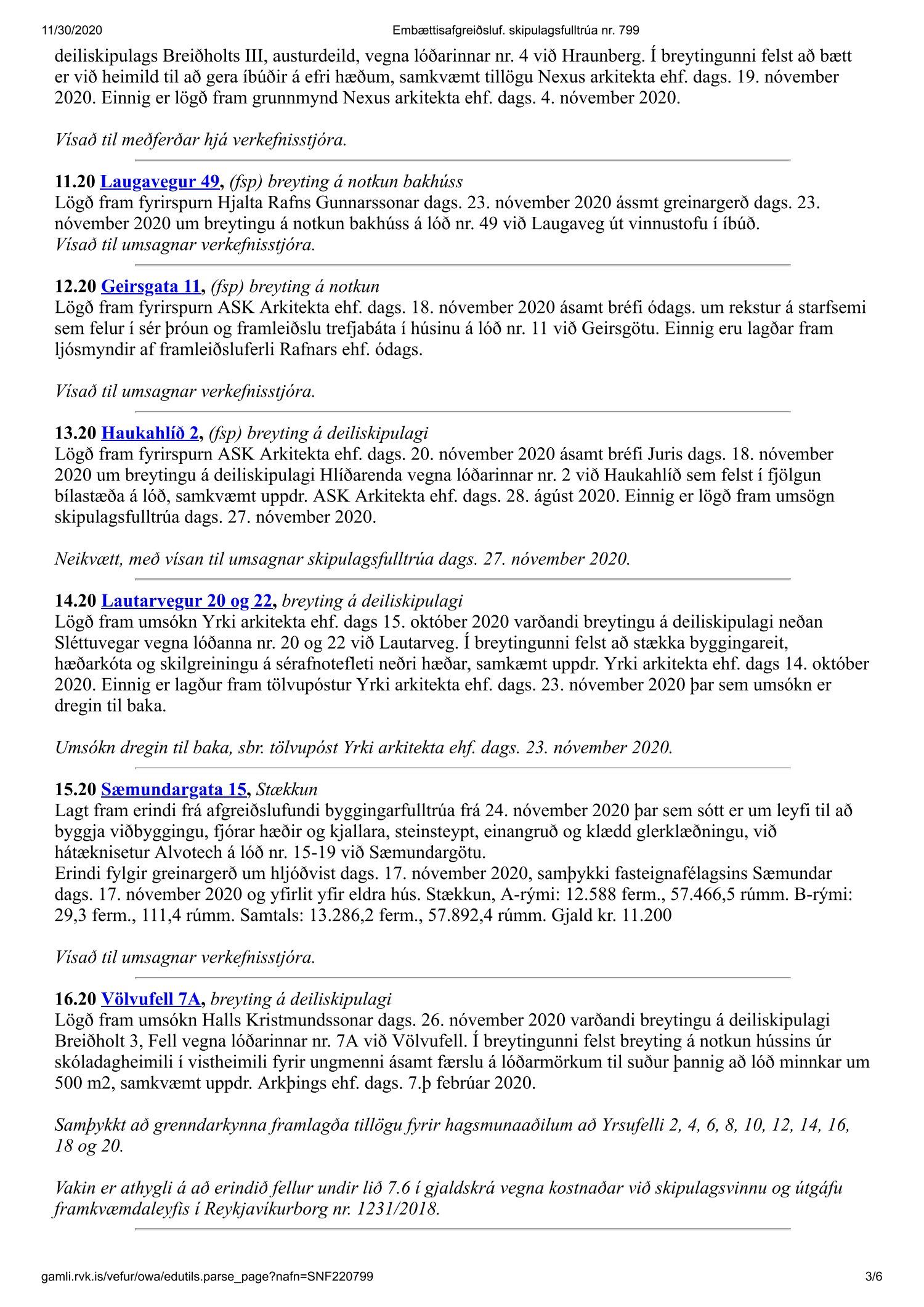 Fundargerð skipulagsfulltrúa nr. 799