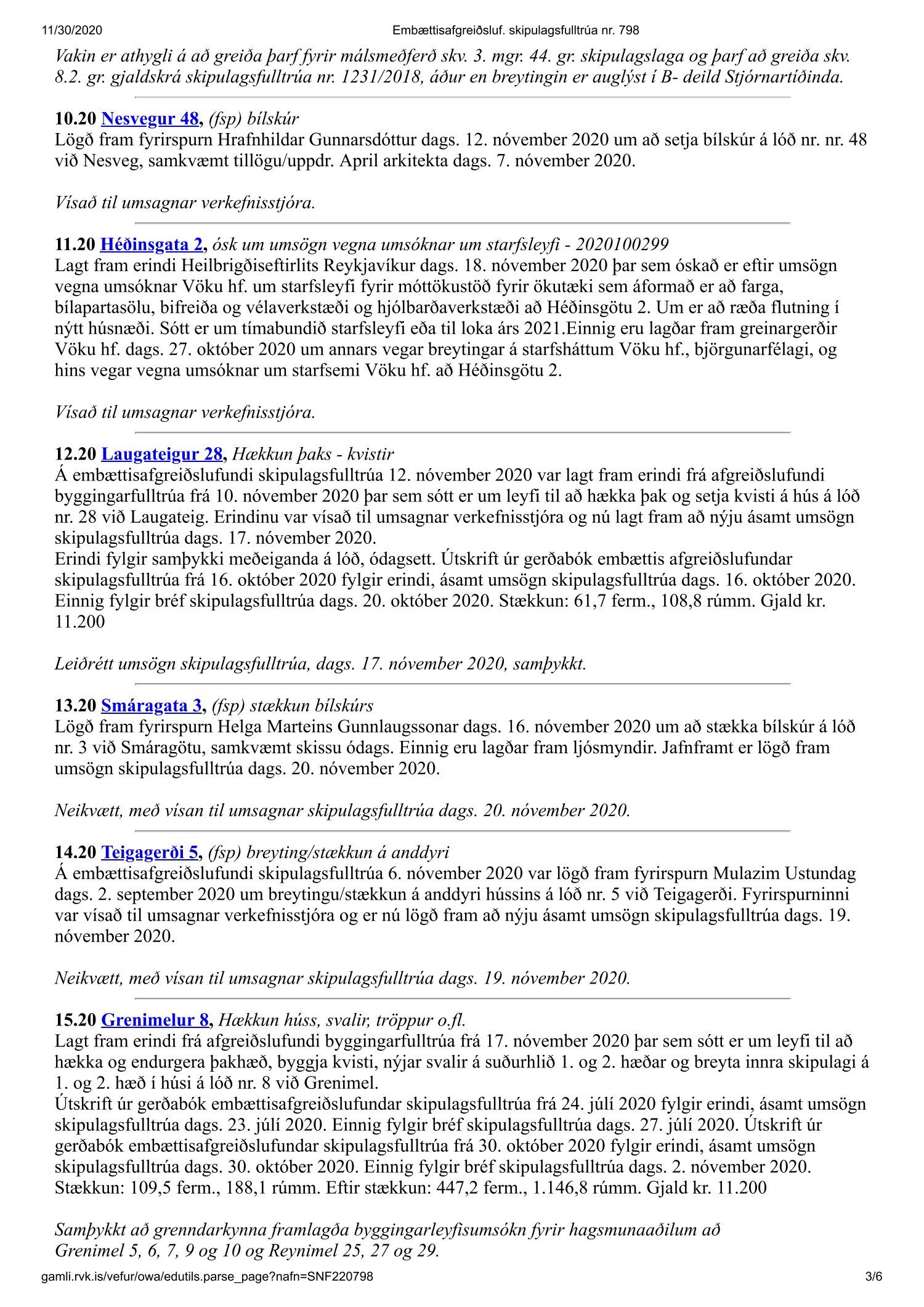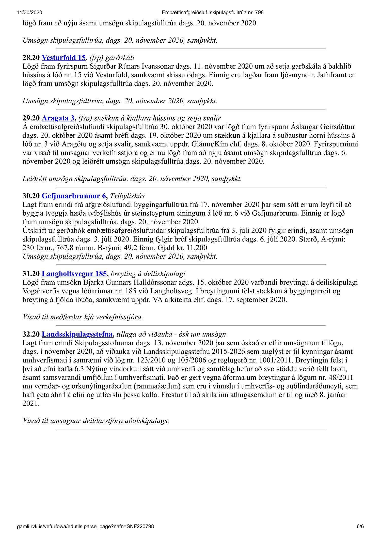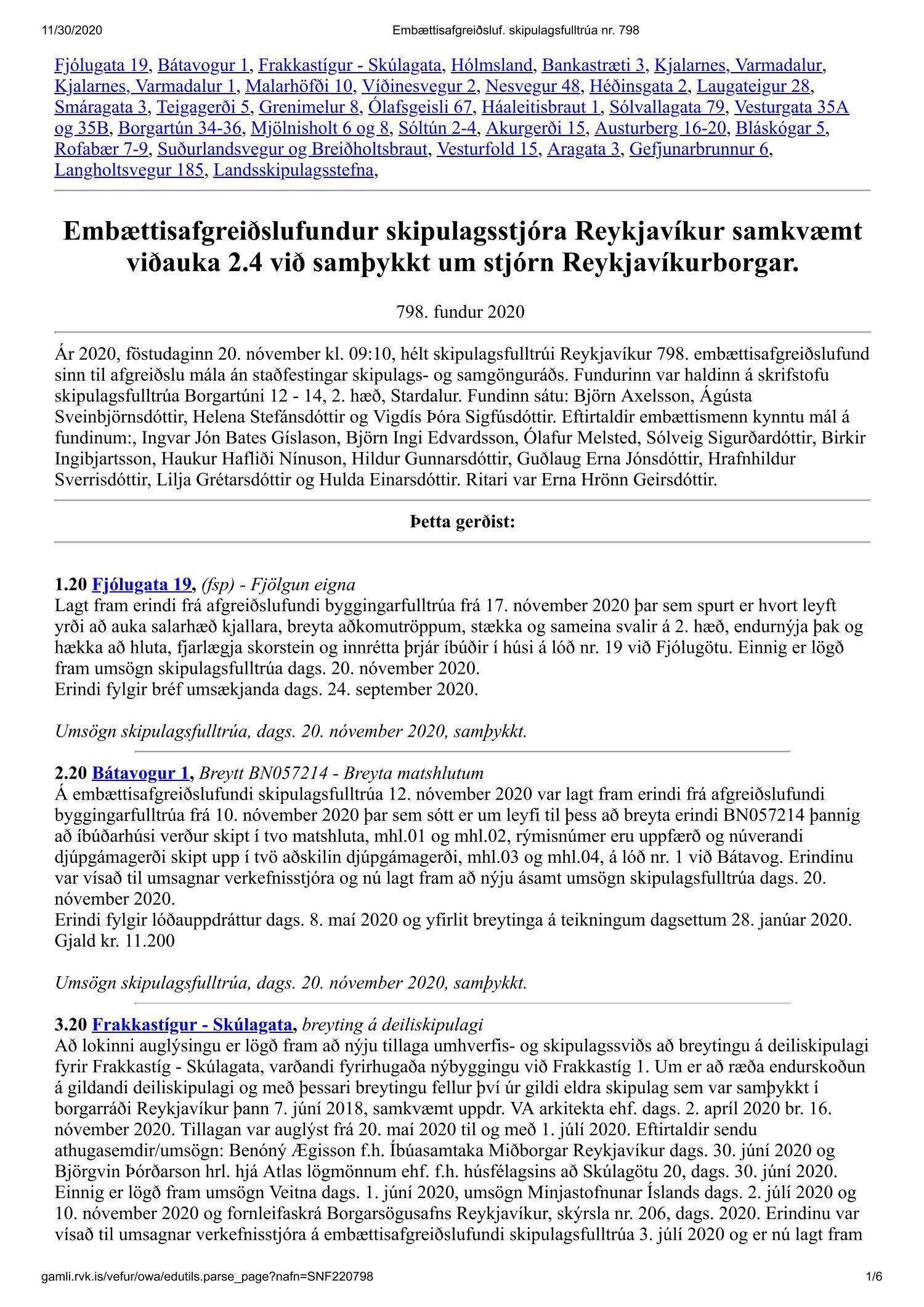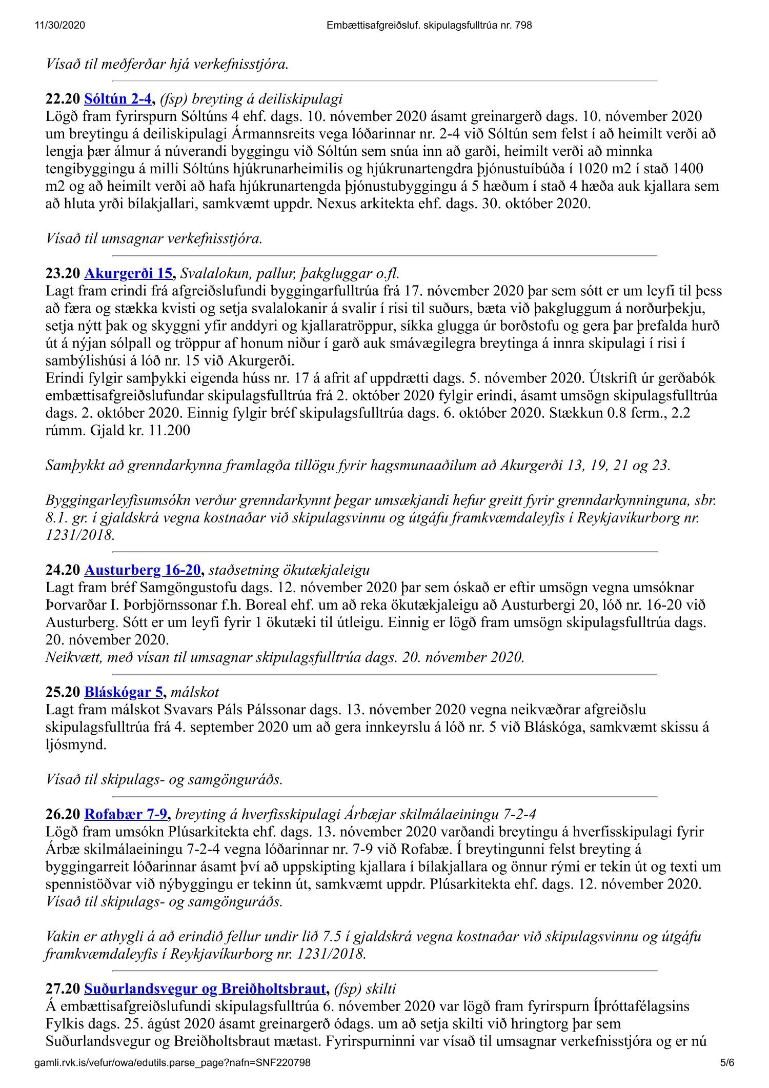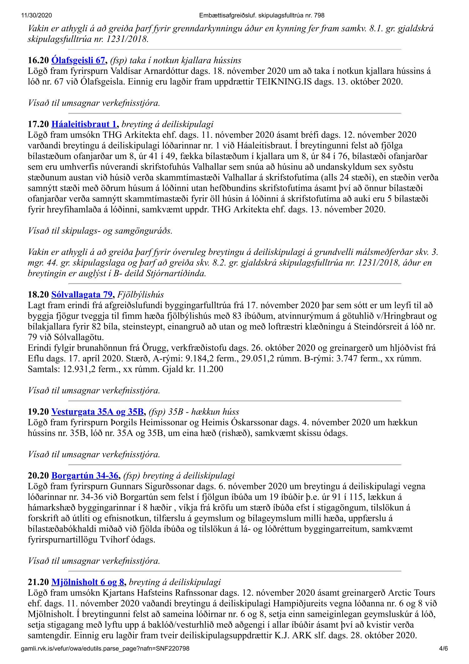 Fundargerð skipulagsfulltrúa nr. 798