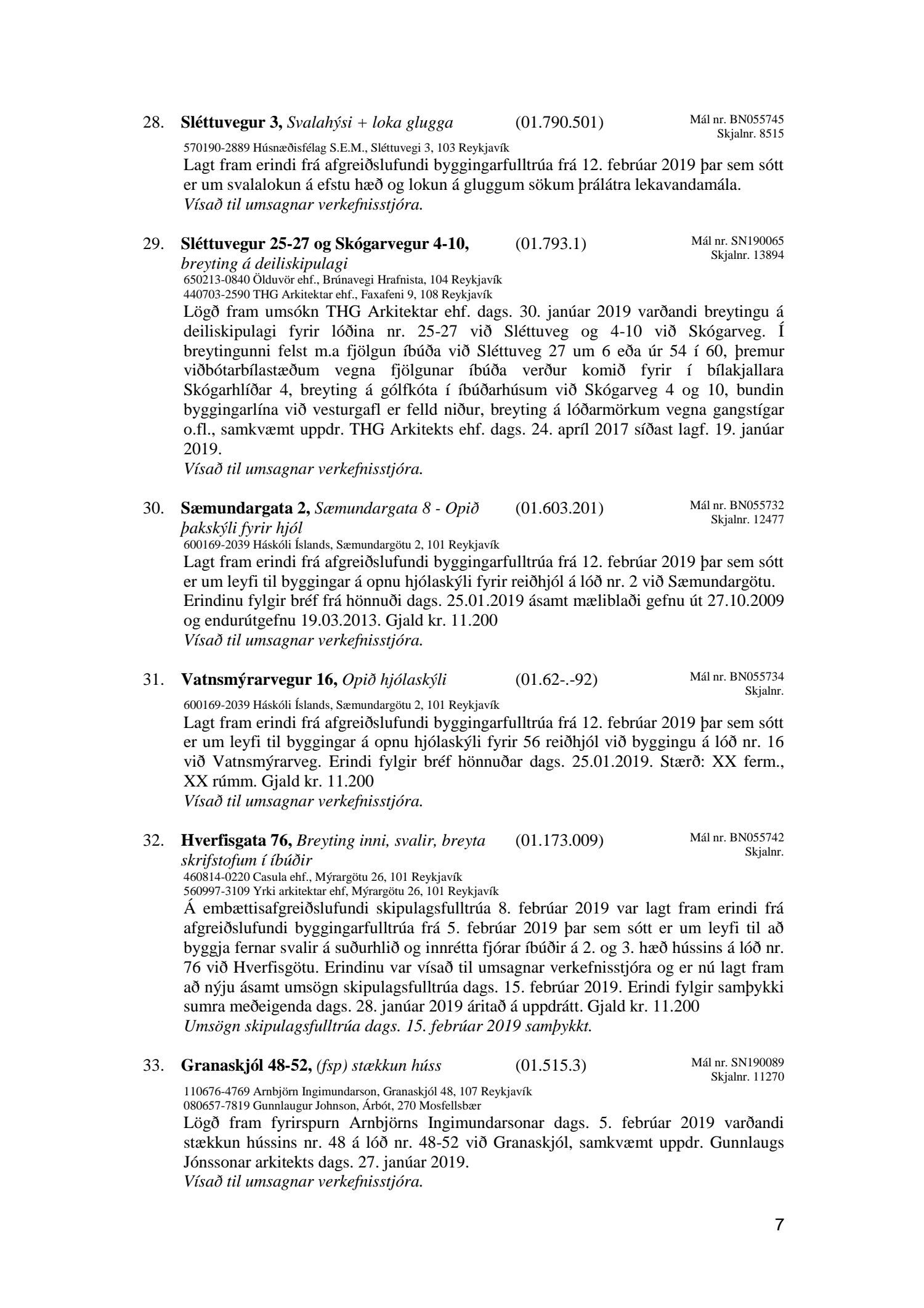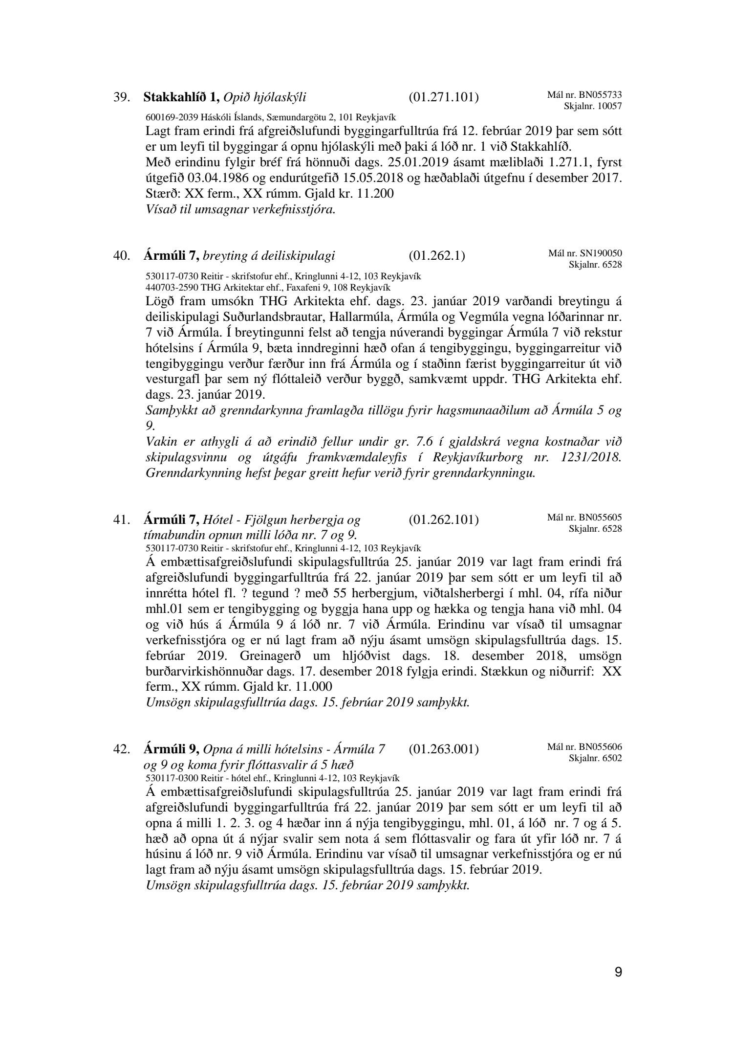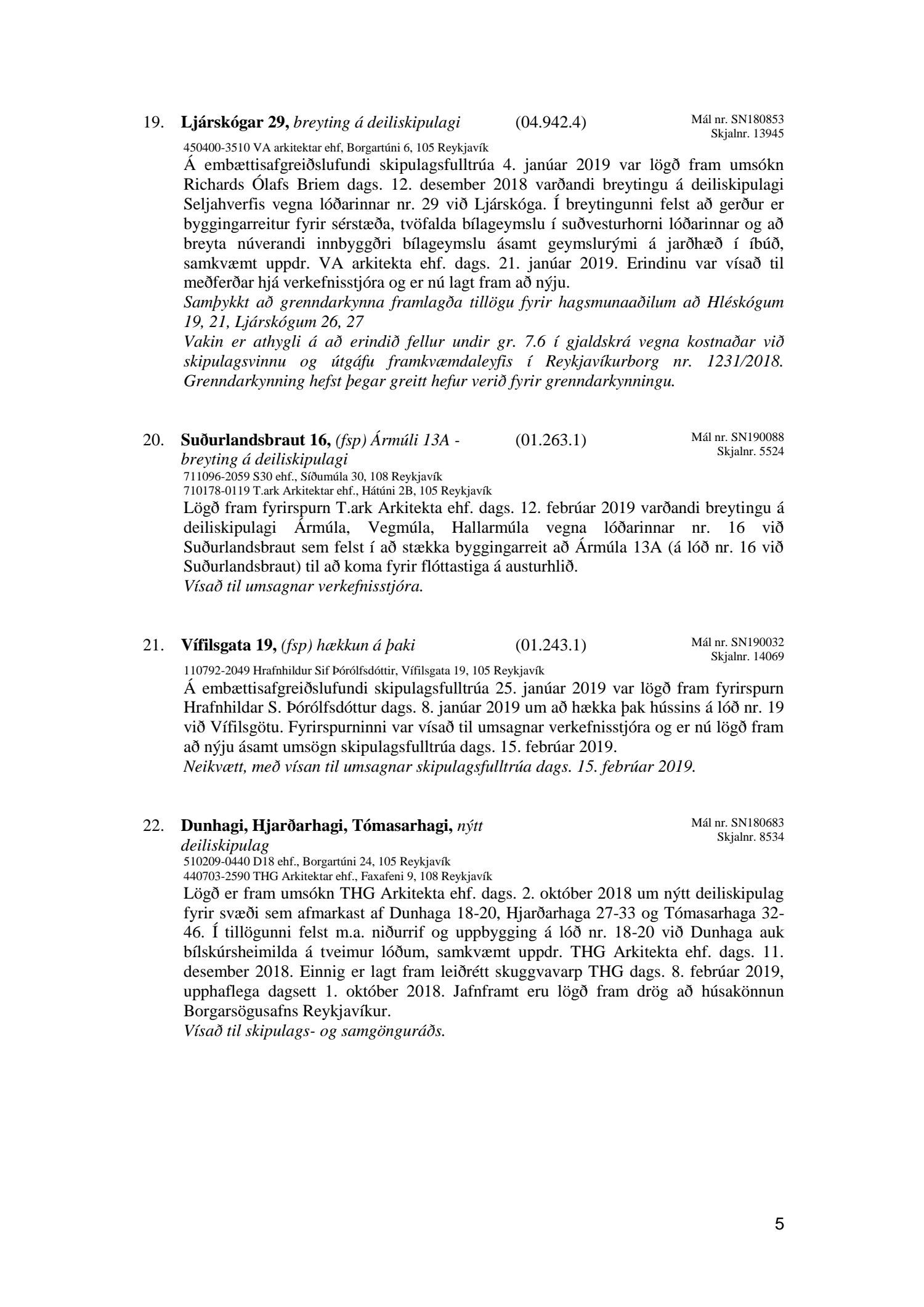 Afgreiðslufundur skipulagsfulltrúa 15. febrúar 2019