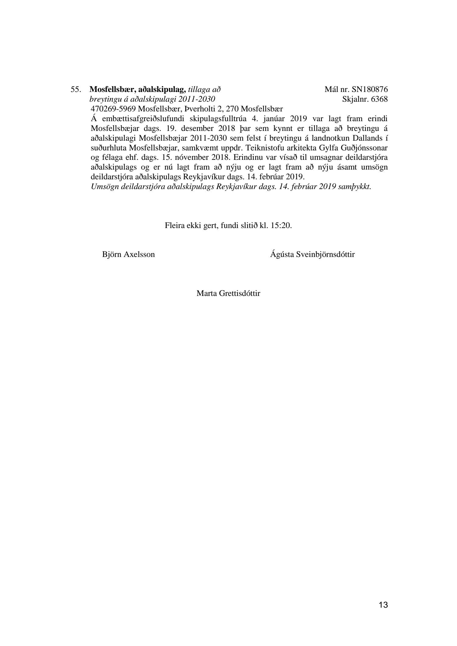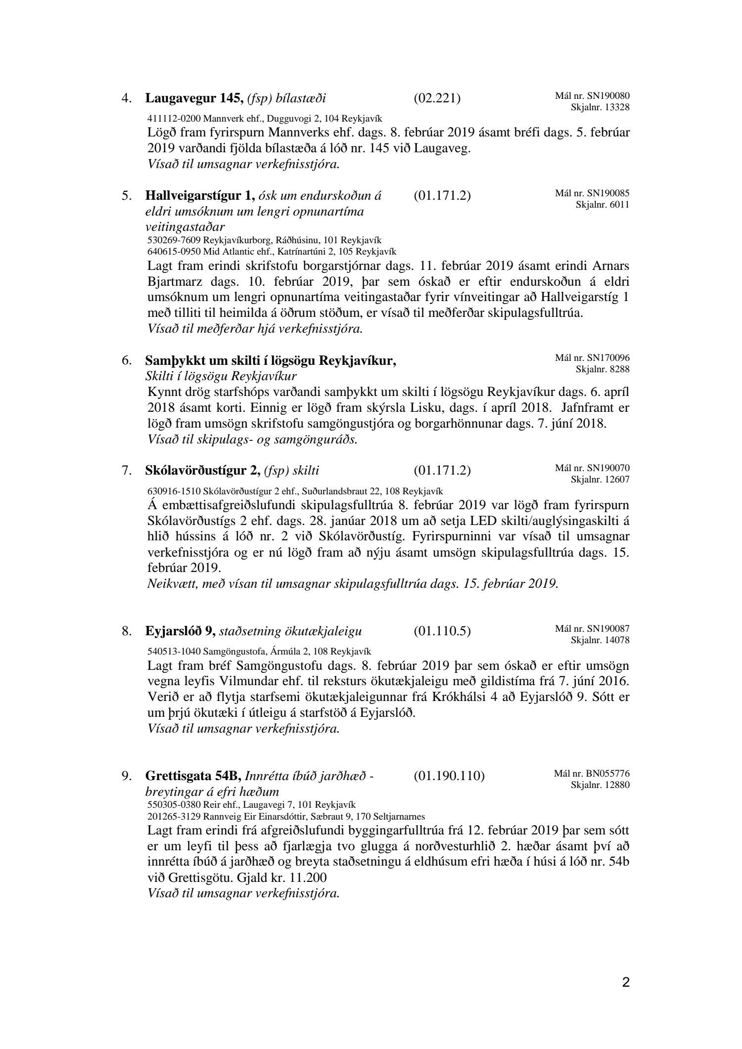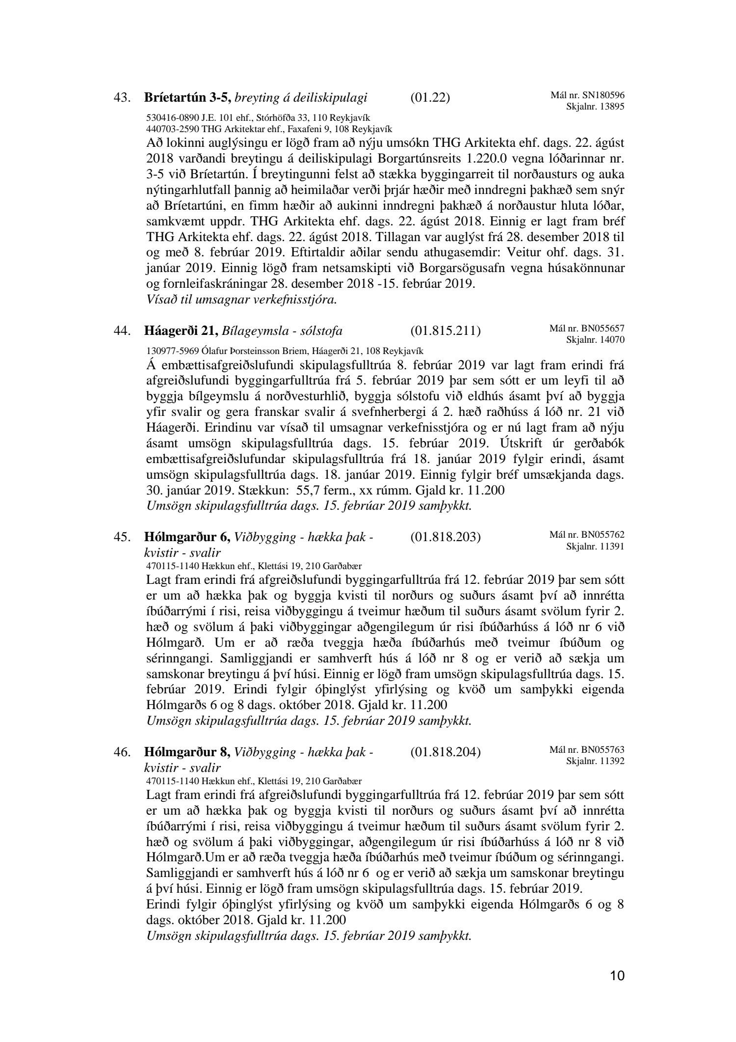 Afgreiðslufundur skipulagsfulltrúa 15. febrúar 2019