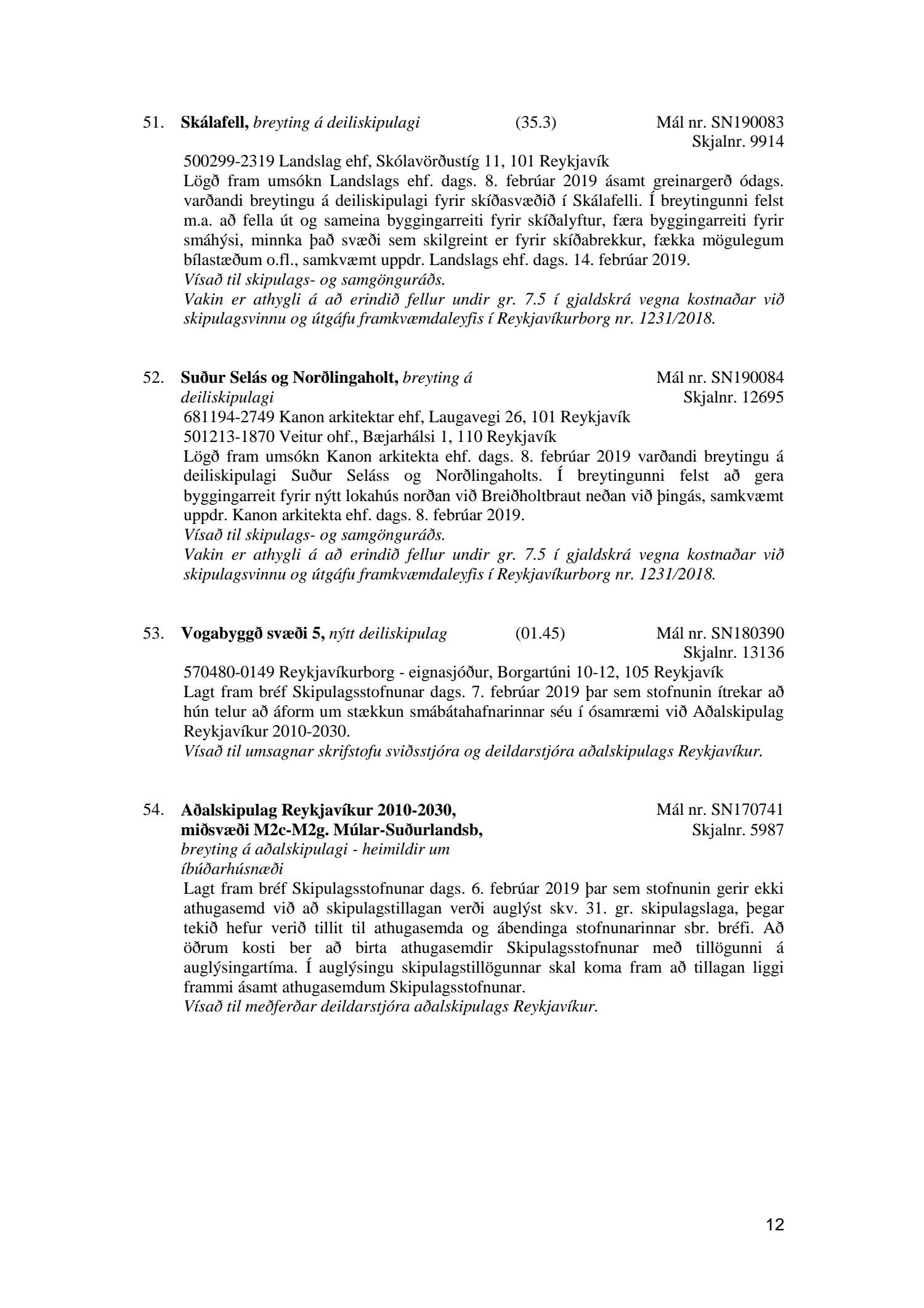 Umhverfis- og skipulagsráð nr. 54