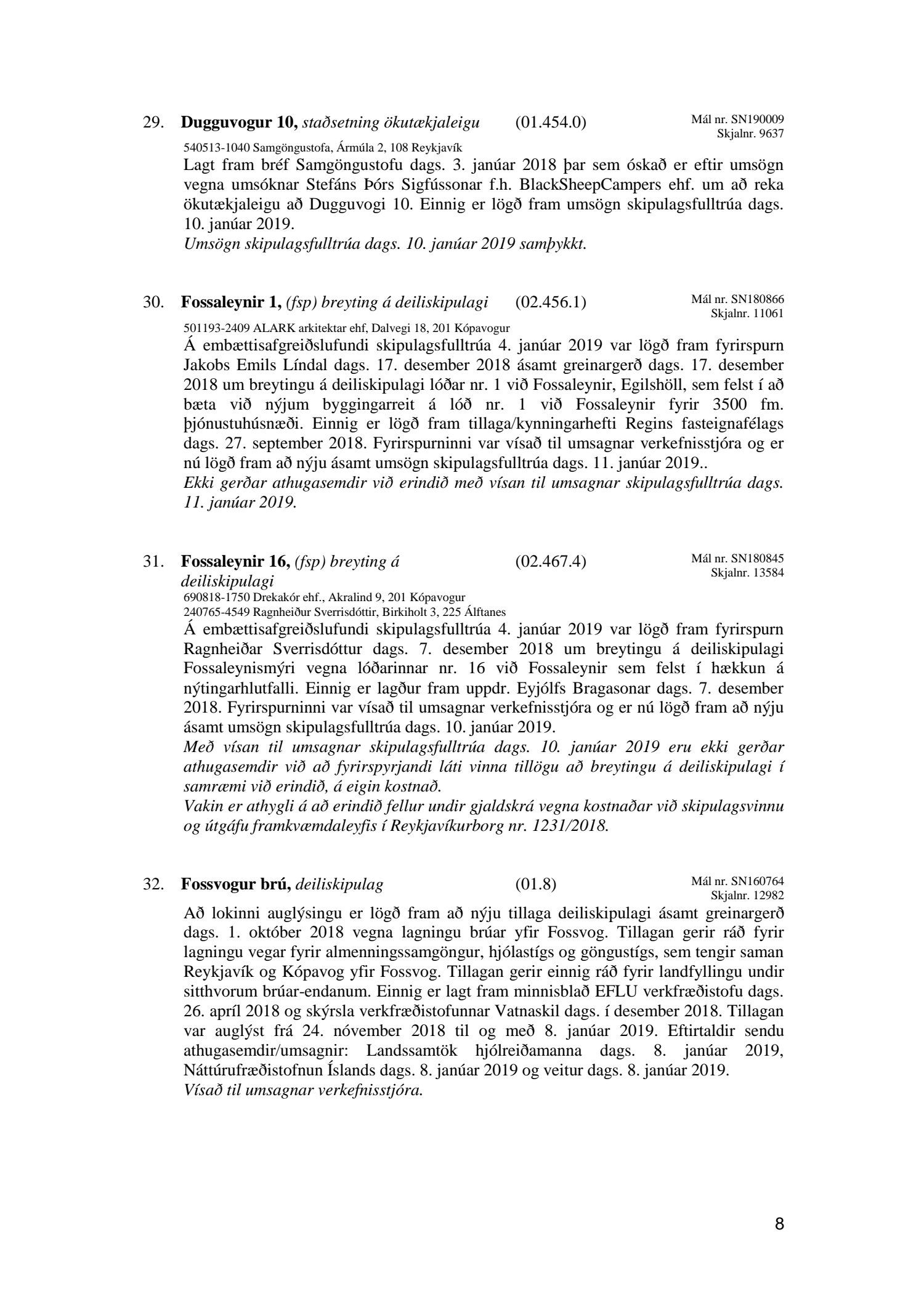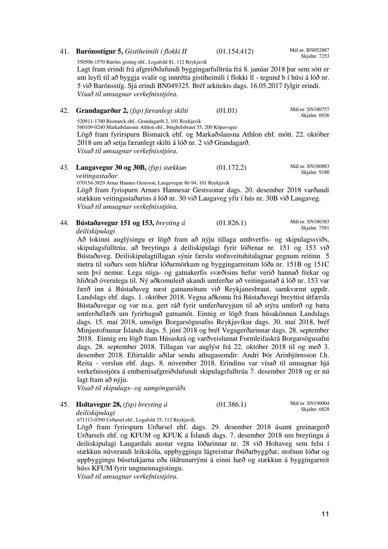 Fundargerð skipulagsfulltrúa 11. janúar 2019
