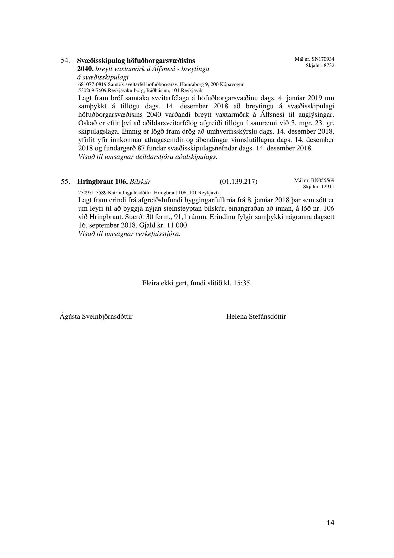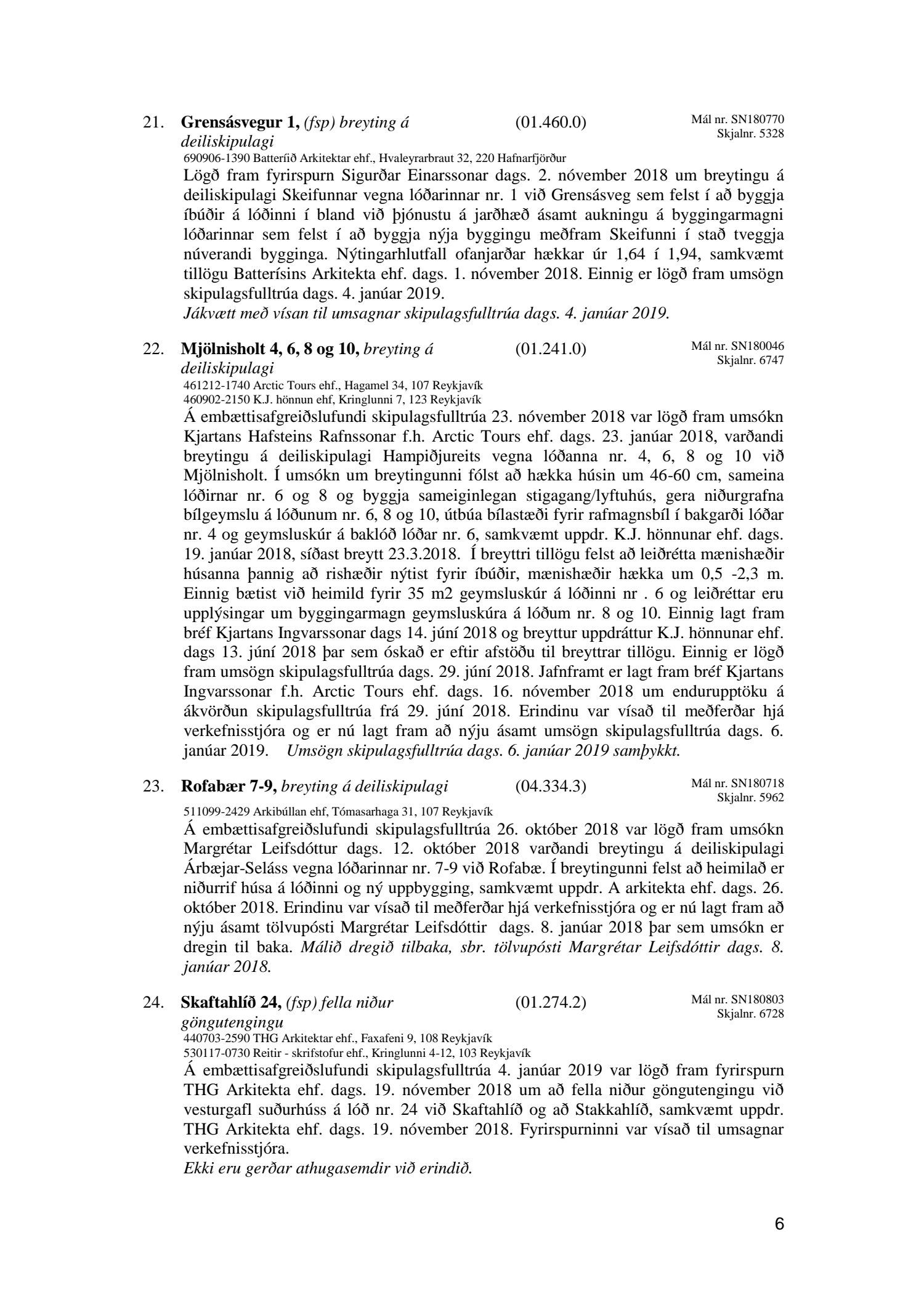 Afgreiðslufundir skipulagsfulltrúa Reykjavíkur, fundargerð