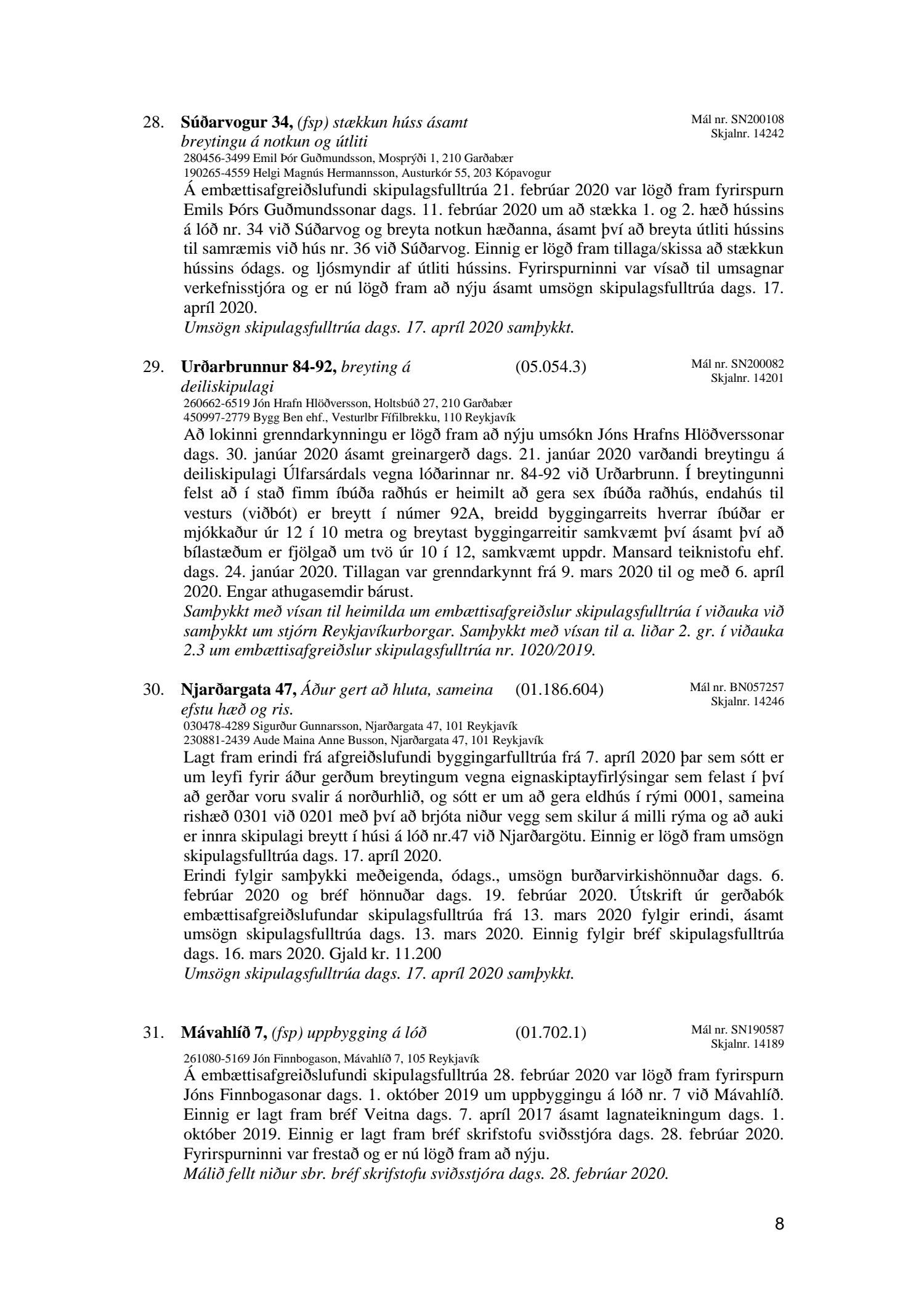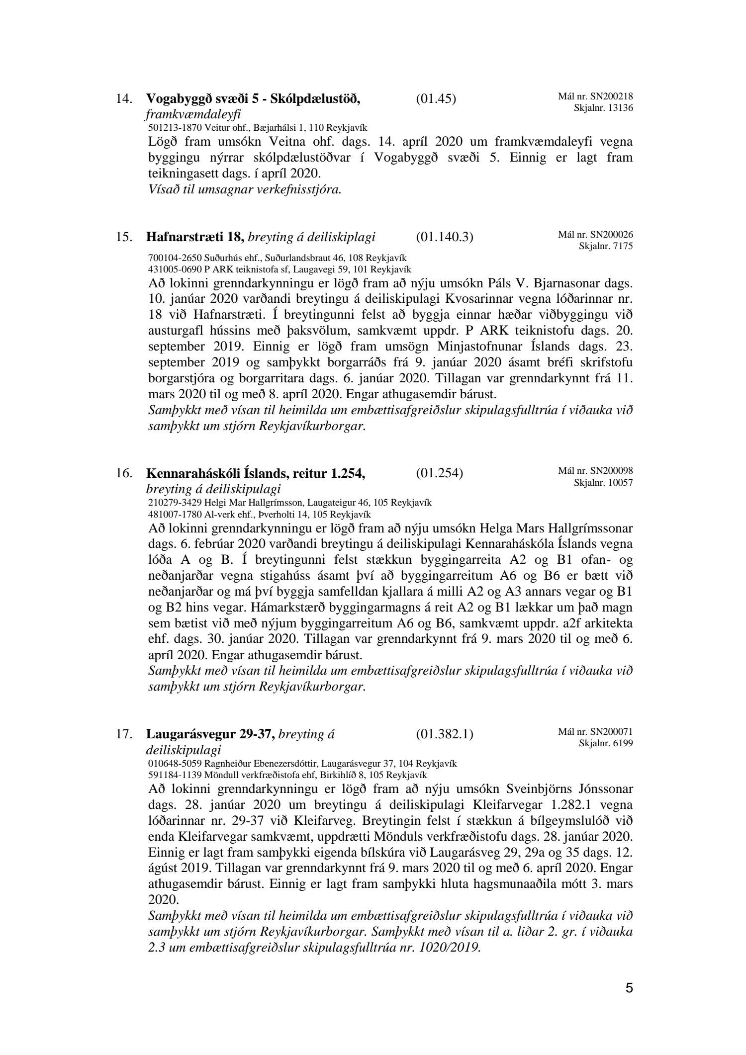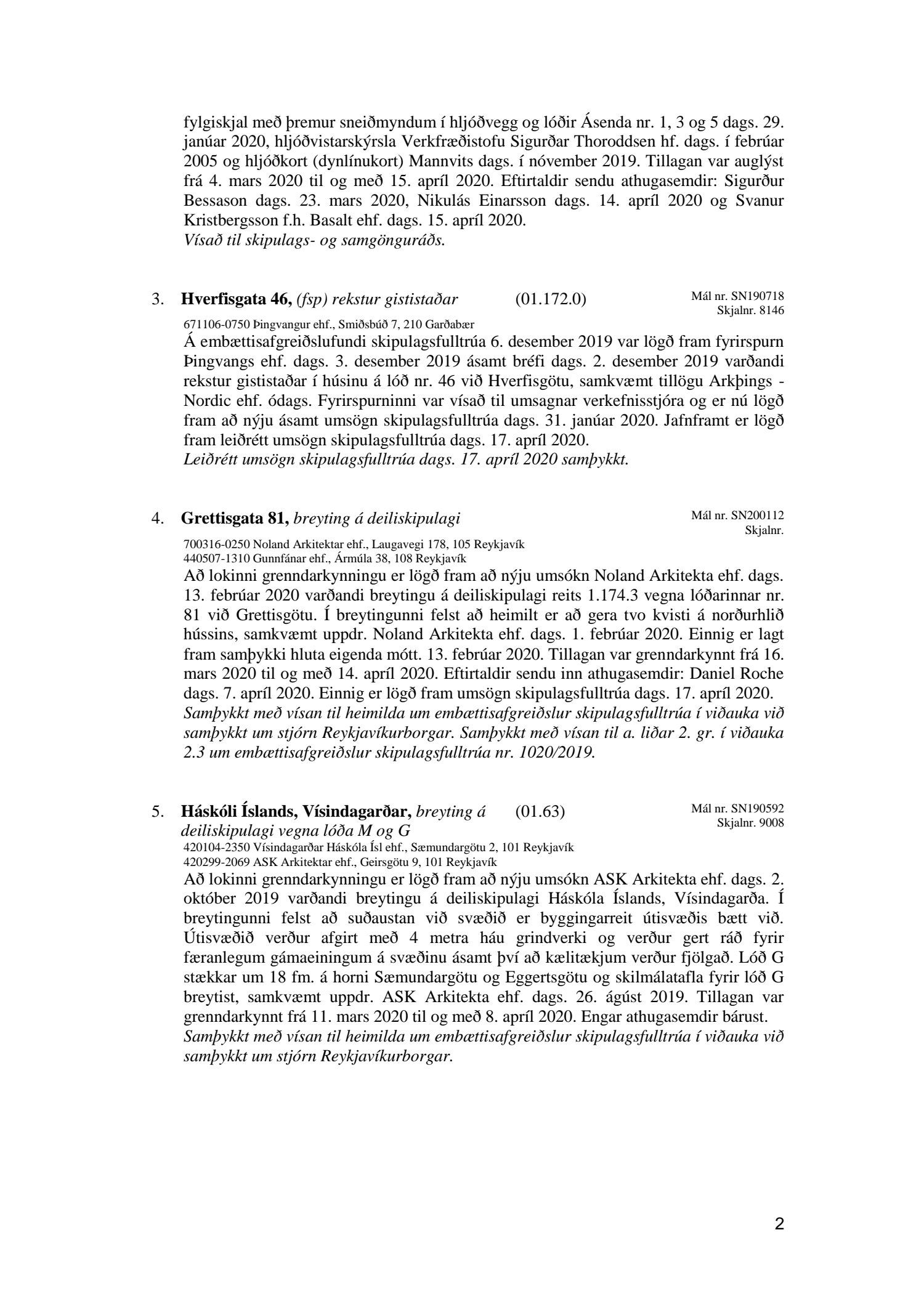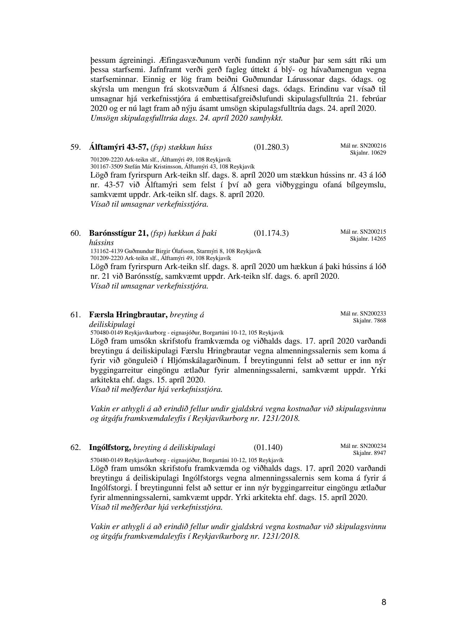 Afgreiðslufundur skipulagsfulltrúa dags 17. apríl 2020